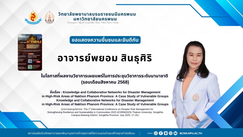 Congratulations and sincere appreciation to Lecturer Phayom Sinthusirion the occasion of her academic work being presented at an international academic conference (August 2025).