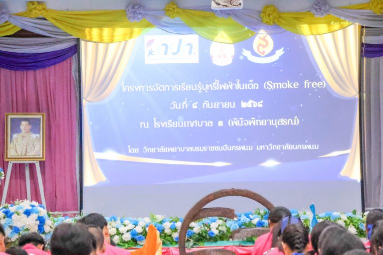 The project aims to raise awareness and understanding of the harms and dangers of e-cigarettes, while enhancing refusal skills, decision-making abilities, and mental resilience, enabling students to protect themselves from risky behaviors. It also provides knowledge of relevant laws and essential issues on sex education in an appropriate manner. The initiative is financially supported by the Nakhon Phanom Municipality Health Security Fund.