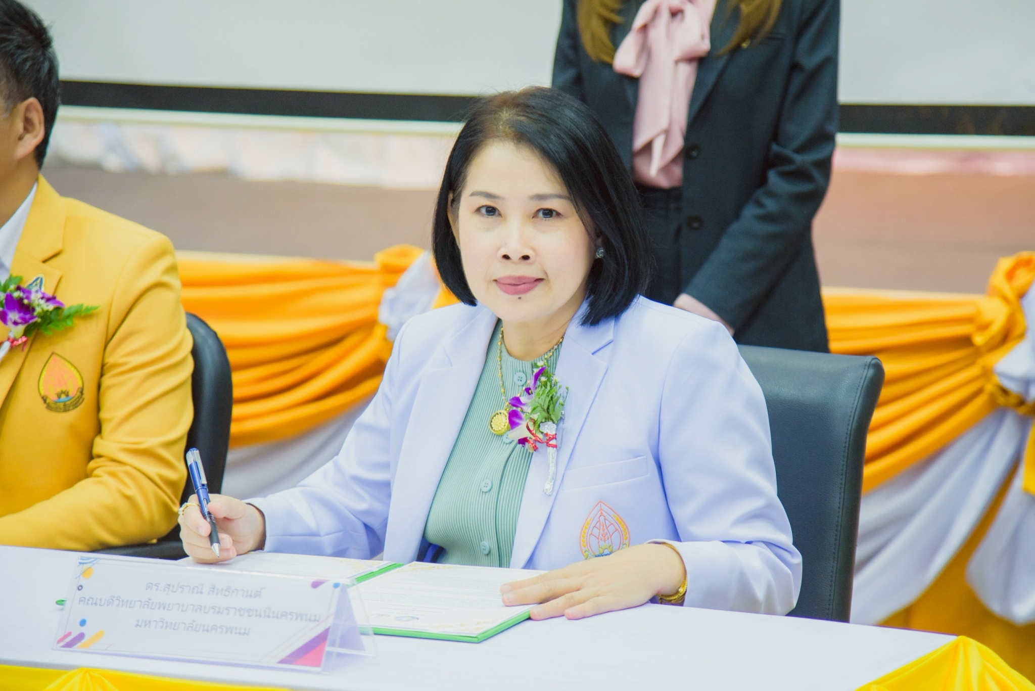 On September 4, 2025, Dr. Supranee Sittikan, Dean of Boromarajonani College of Nursing Nakhon Phanom, Nakhon Phanom University, attended the signing ceremony of a Memorandum of Understanding (MOU) between Nakhon Phanom Municipality and Nakhon Phanom University. The ceremony was presided over by Mr. Niwat Jiawiriyaboonya, Mayor of Nakhon Phanom Municipality, and Professor Emeritus Dr. Thawatchai Supadis, President of Nakhon Phanom University.