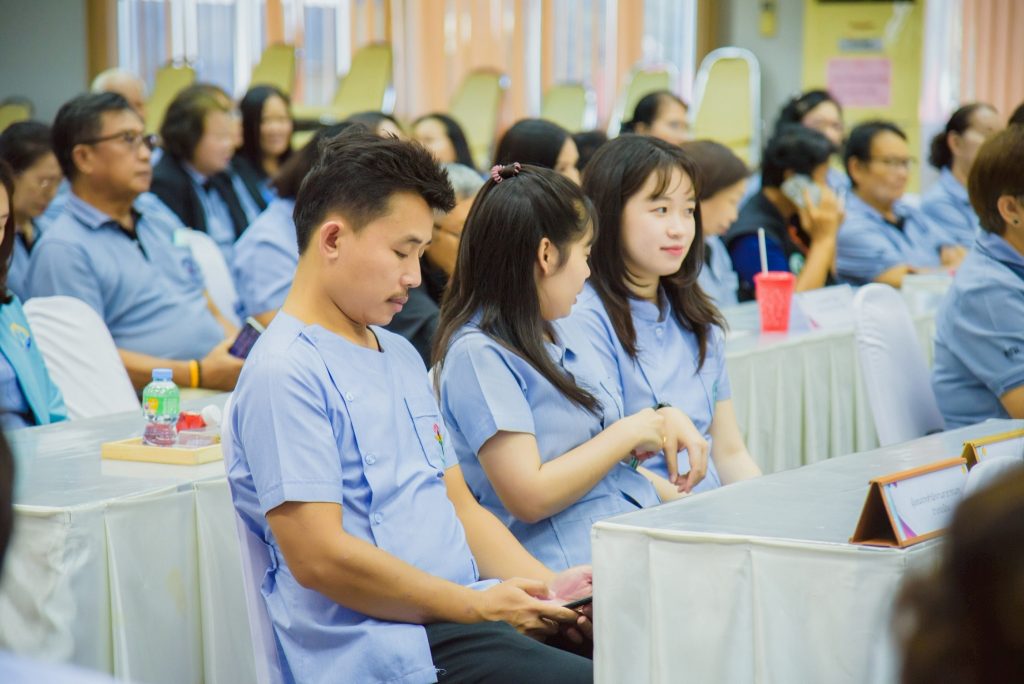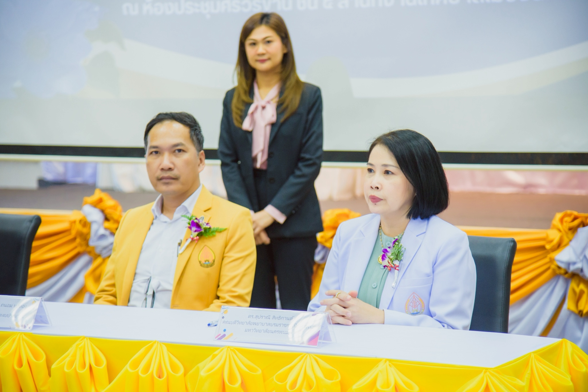 The opening ceremony was presided over by Dr. Supranee Sithikan, Dean of BCNNKP, Nakhon Phanom University. Assoc. Prof. Dr. Surachai Cheniang, Associate Dean for Student Development and International Affairs, delivered the event report, while Ms. Rungnapa Udhanon, President of the BCNNKP Nursing Alumni Association, extended a warm welcome to all participants.