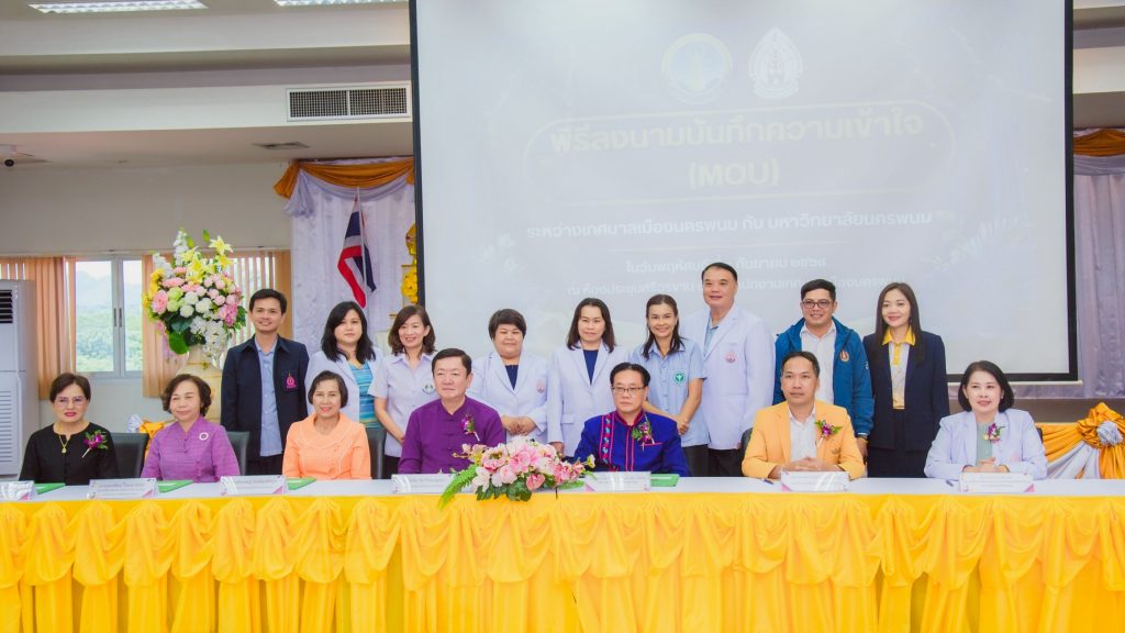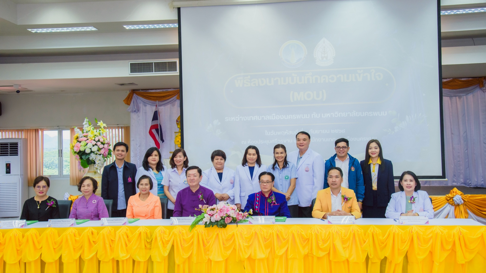 The MOU aims to strengthen academic, research, and public health collaborations within Nakhon Phanom Municipality. The cooperation focuses on knowledge exchange, professional training, and the development of public health competencies through academic and practical experiences. Joint initiatives include training programs, capacity building for personnel, and the application of research and academic services to enhance the quality of healthcare services for the local community.