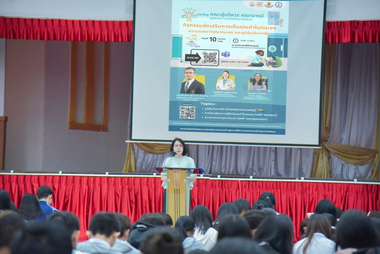 On September 10, 2025, Dr. Supranee Sitthikan, Dean of Boromarajonani College of Nursing Nakhon Phanom, University of Nakhon Phanom, presided over the opening ceremony of the activity “Promoting Self-Esteem, Self-Compassion, and Mental Immunity” under the Student Counseling Development Program. Assoc. Prof. Dr. Surachai Chaniang, Associate Dean for Student Development and International Relations, delivered the report.
