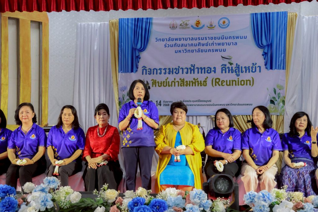 On September 13, 2025, the Nakhon Phanom University Nursing Alumni Association, in collaboration with Boromarajonani College of Nursing Nakhon Phanom (BCNNKP), Nakhon Phanom University, organized the “Fah Thong Homecoming: Alumni Reunion 2025” at Srikhotraboon Auditorium, BCNNKP. The event aimed to strengthen relationships, reconnect alumni across generations, and build a strong alumni-institution network.