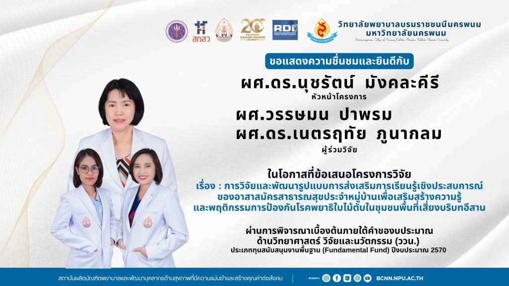 Congratulations and appreciation toLecturer Charin Kotphrom,Asst. Prof. Patchanee Somkamlang,and Lecturer Natnapa Aryasilpathorn
