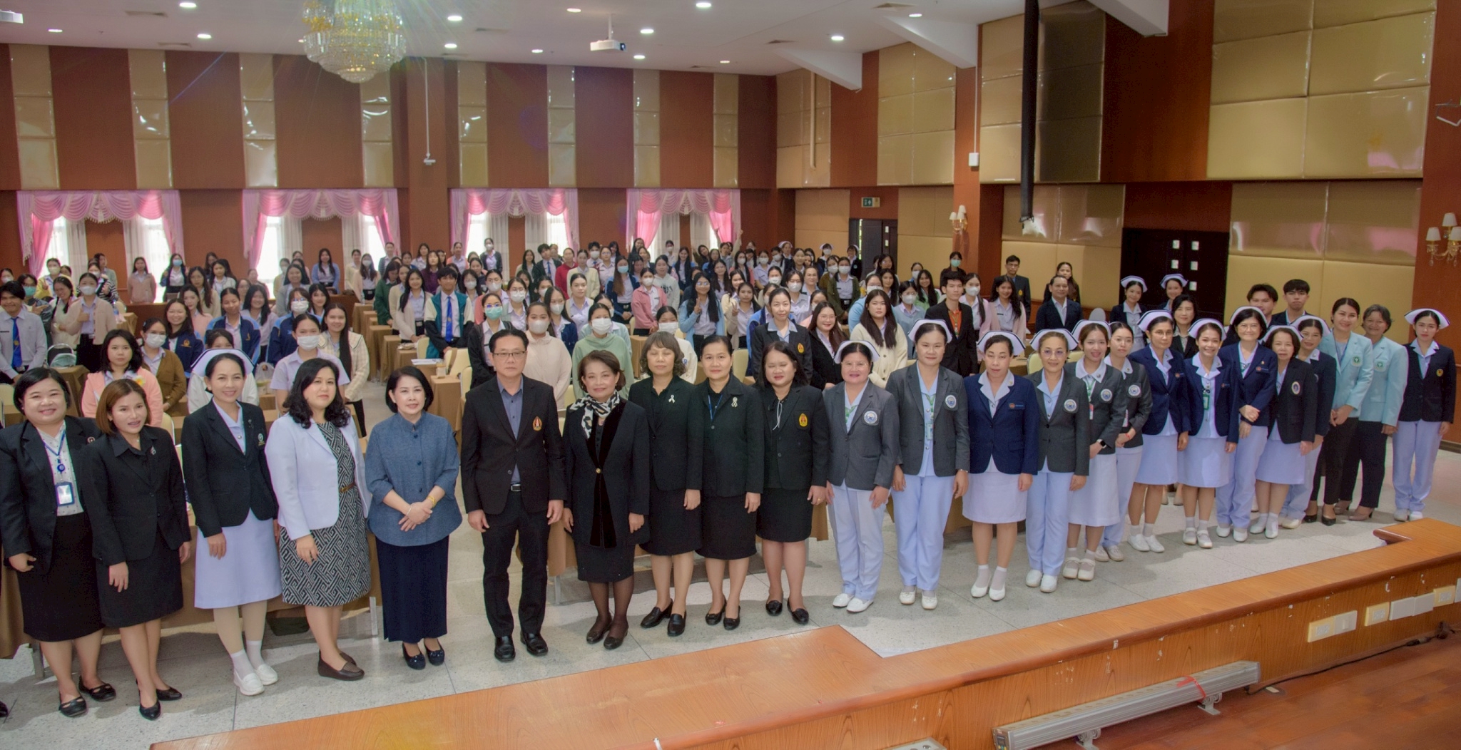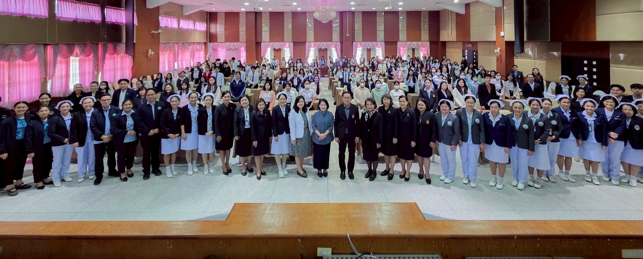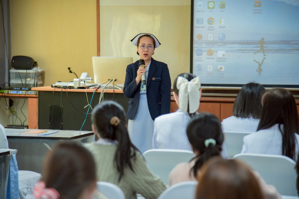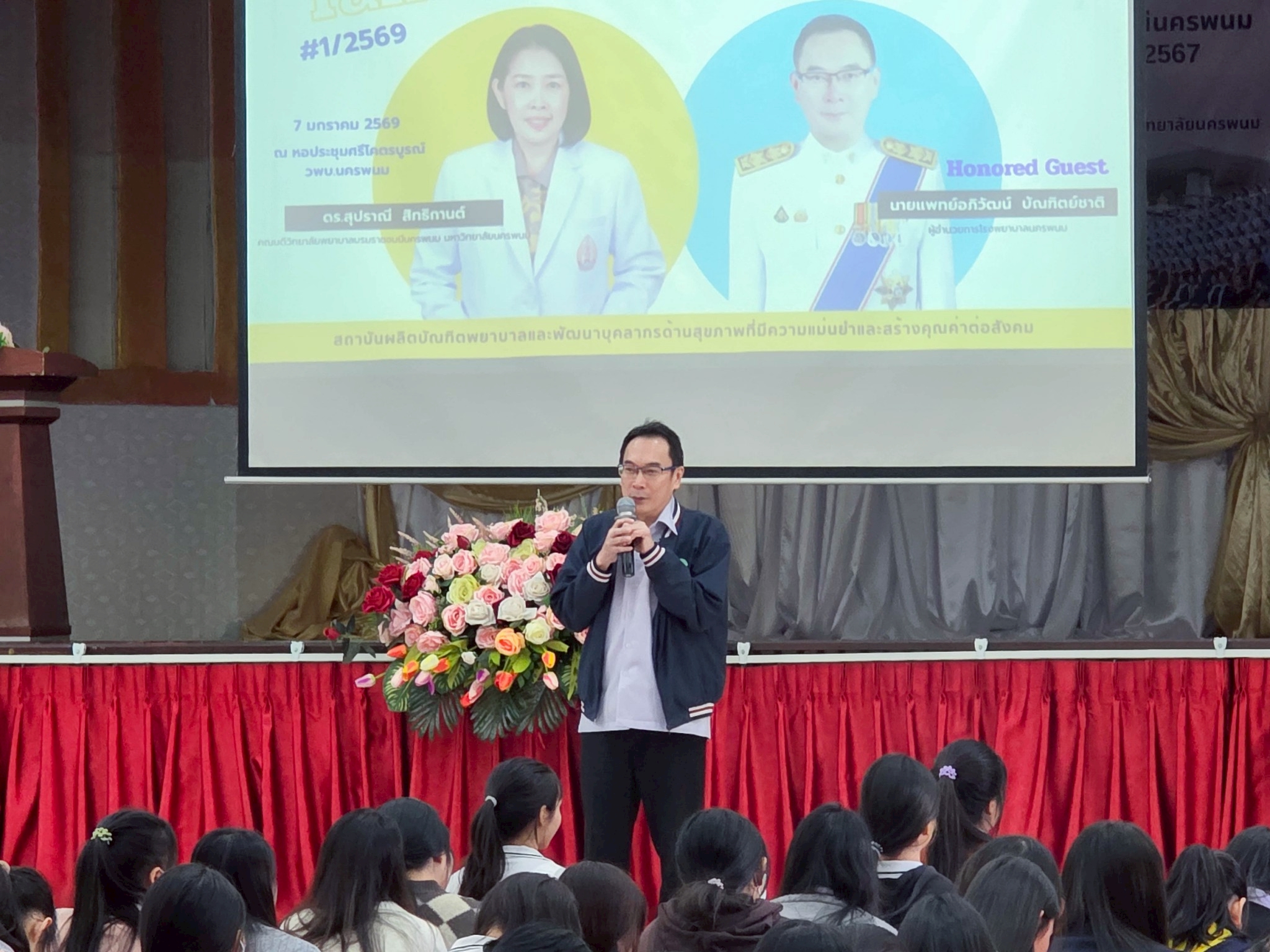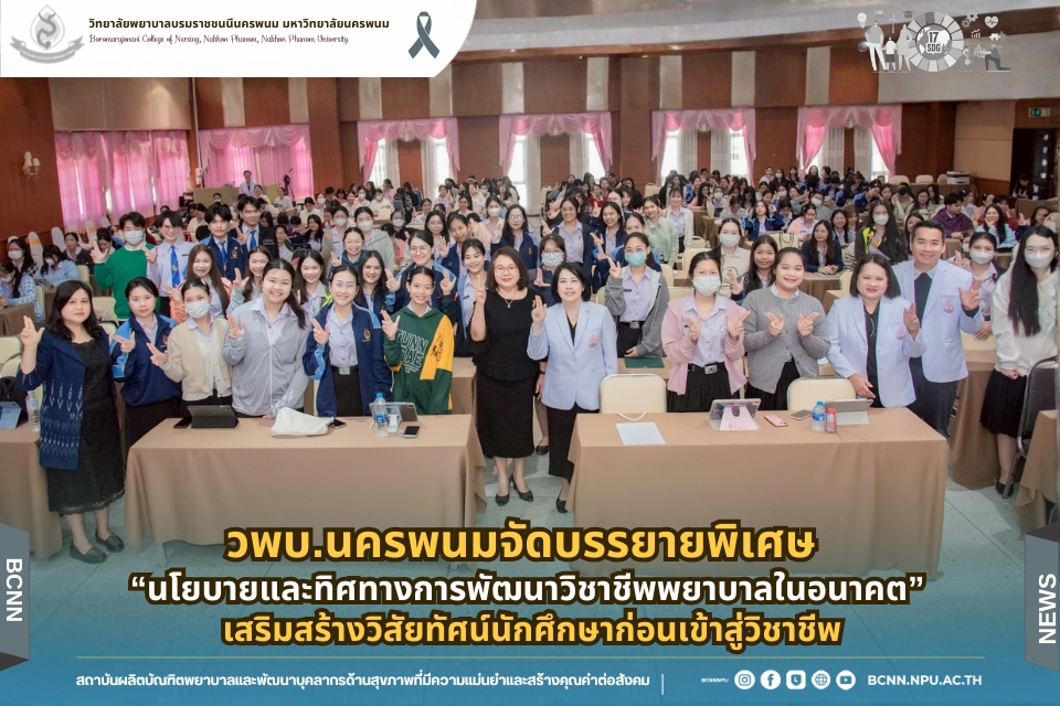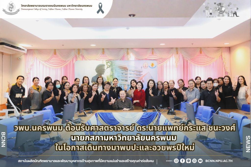ในโอกาสนี้ วิทยาลัยฯ ได้รับเกียรติจากนายแพทย์อภิวัฒน์ บัณฑิตย์ชาติ ผู้อำนวยการโรงพยาบาลนครพนม พร้อมคณะผู้ติดตามเข้าร่วมบรรยายพิเศษและแลกเปลี่ยนมุมมองด้านการพัฒนาวิชาชีพพยาบาลและด้านสุขภาพพร้อมทั้งกล่าวอวยพรเนื่องในโอกาสขึ้นปีใหม่ พุทธศักราช 2569 เพื่อเป็นขวัญกำลังใจและแรงบันดาลใจแก่นักศึกษาพยาบาล
