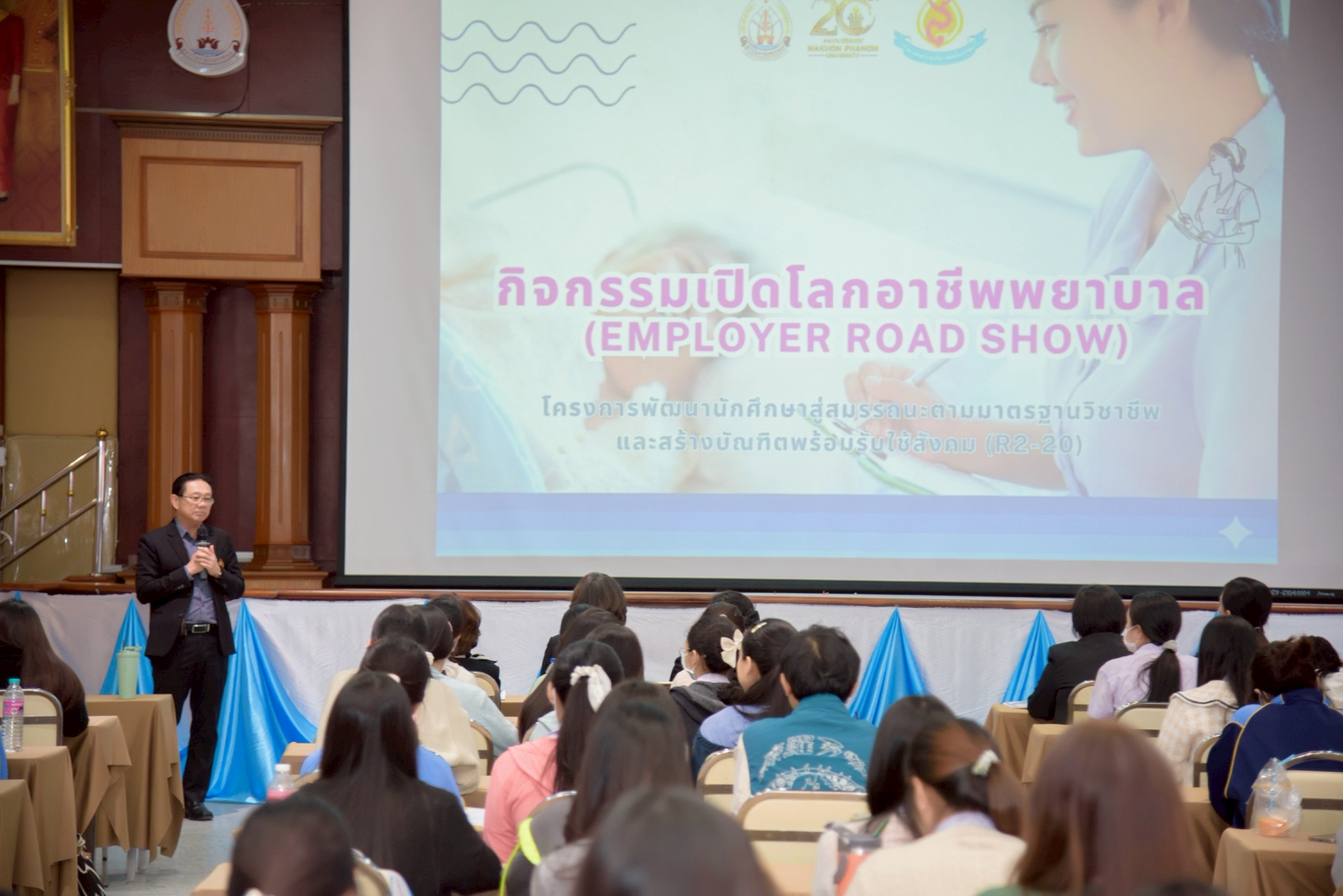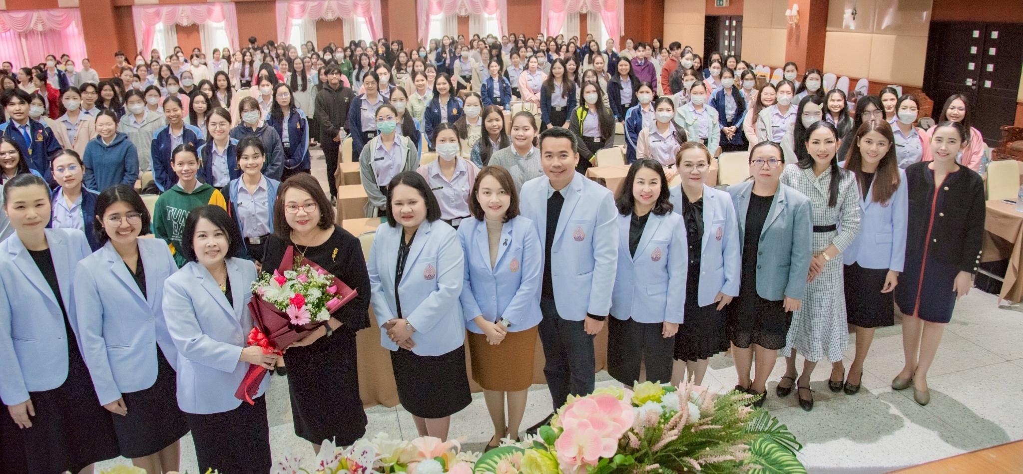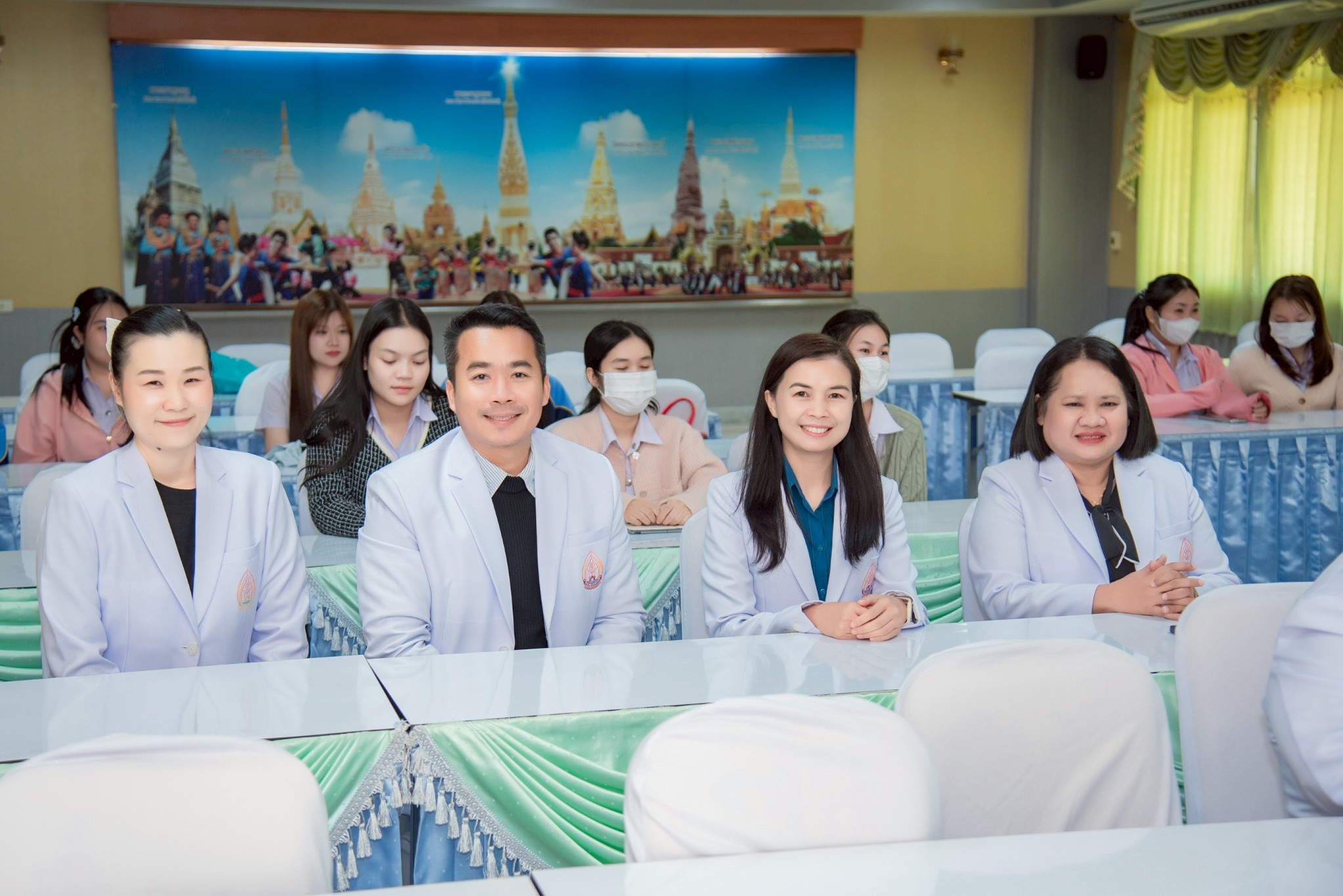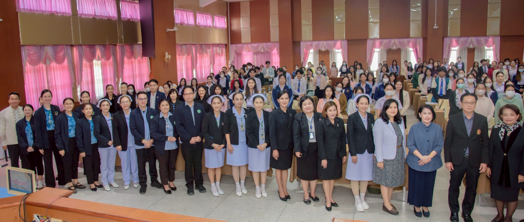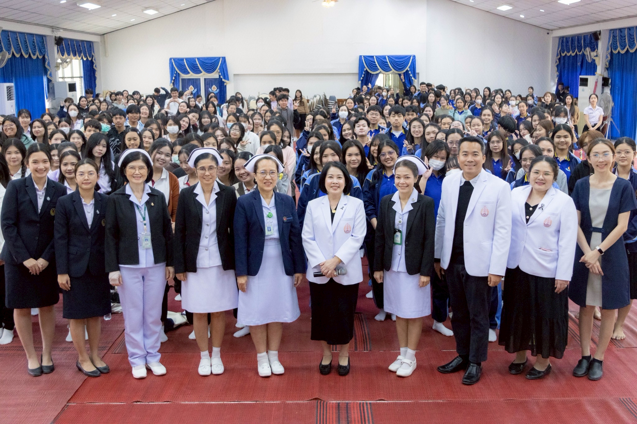 ในโอกาสนี้ วิทยาลัยฯ ได้รับเกียรติจากนายแพทย์อภิวัฒน์ บัณฑิตย์ชาติ ผู้อำนวยการโรงพยาบาลนครพนม พร้อมคณะผู้ติดตามเข้าร่วมบรรยายพิเศษและแลกเปลี่ยนมุมมองด้านการพัฒนาวิชาชีพพยาบาลและด้านสุขภาพพร้อมทั้งกล่าวอวยพรเนื่องในโอกาสขึ้นปีใหม่ พุทธศักราช 2569 เพื่อเป็นขวัญกำลังใจและแรงบันดาลใจแก่นักศึกษาพยาบาล