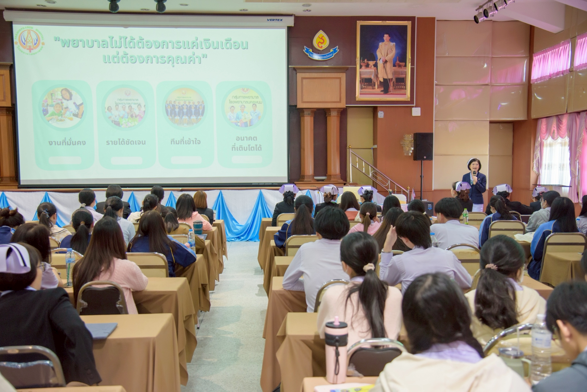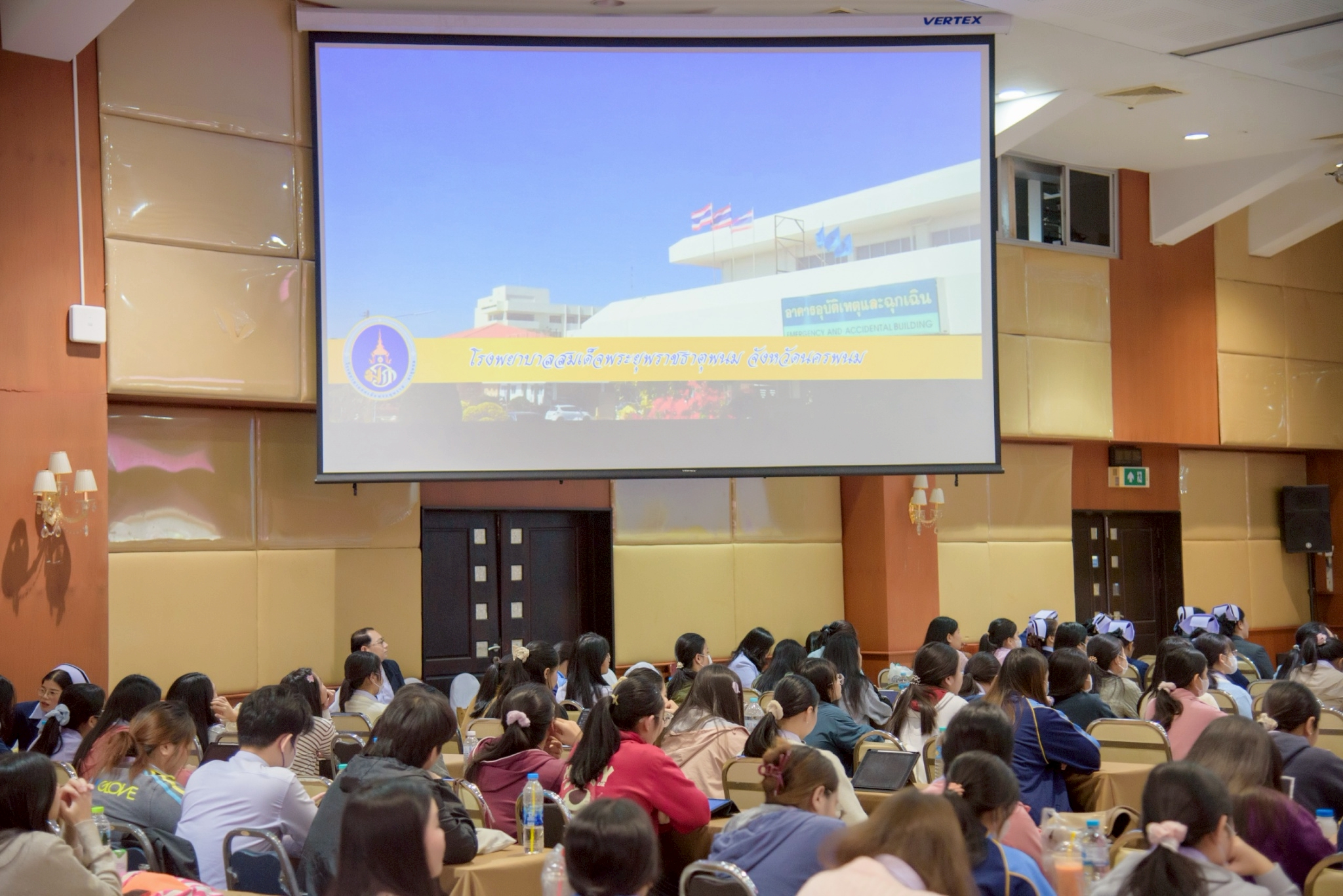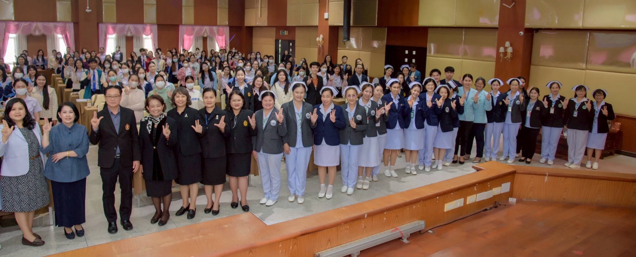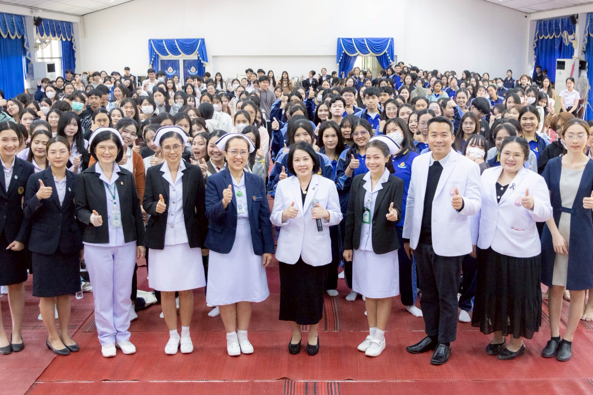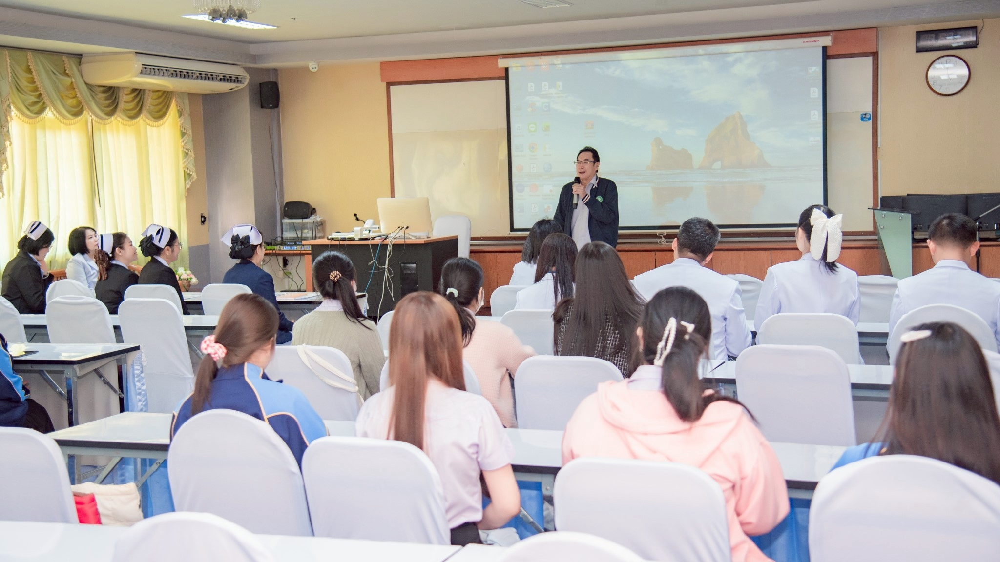 ในโอกาสนี้ วิทยาลัยฯ ได้รับเกียรติจากนายแพทย์อภิวัฒน์ บัณฑิตย์ชาติ ผู้อำนวยการโรงพยาบาลนครพนม พร้อมคณะผู้ติดตามเข้าร่วมบรรยายพิเศษและแลกเปลี่ยนมุมมองด้านการพัฒนาวิชาชีพพยาบาลและด้านสุขภาพพร้อมทั้งกล่าวอวยพรเนื่องในโอกาสขึ้นปีใหม่ พุทธศักราช 2569 เพื่อเป็นขวัญกำลังใจและแรงบันดาลใจแก่นักศึกษาพยาบาล