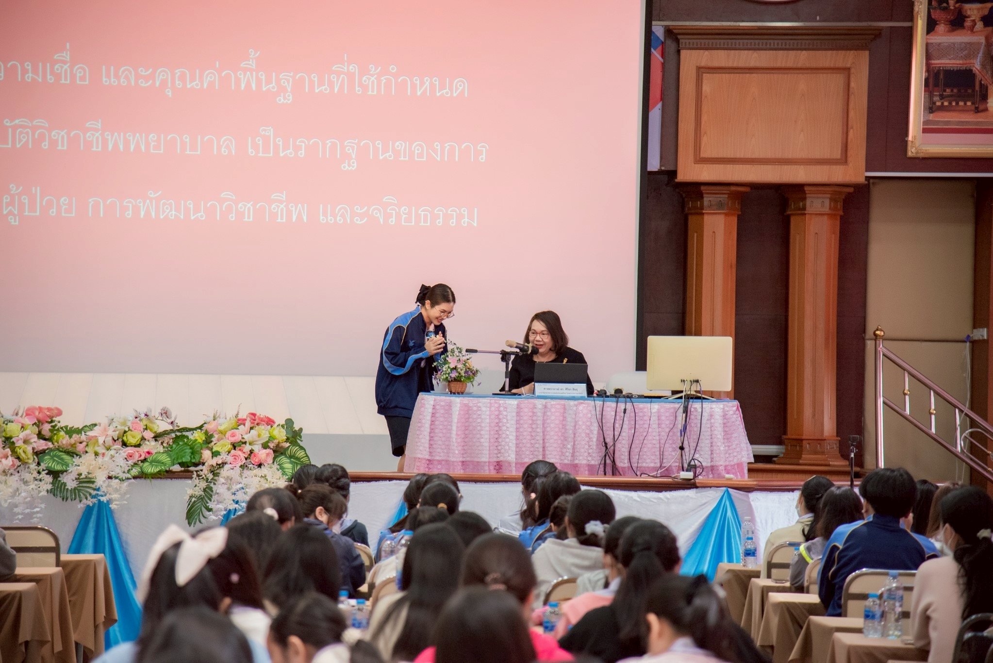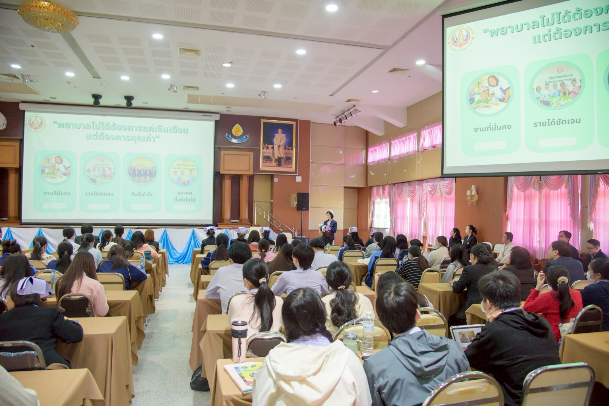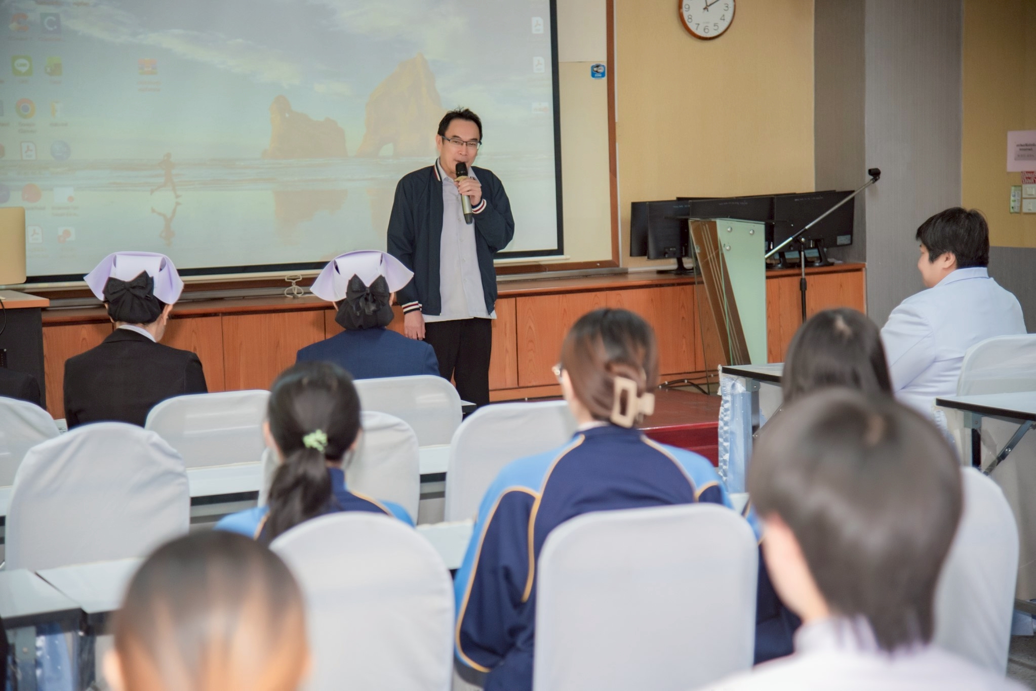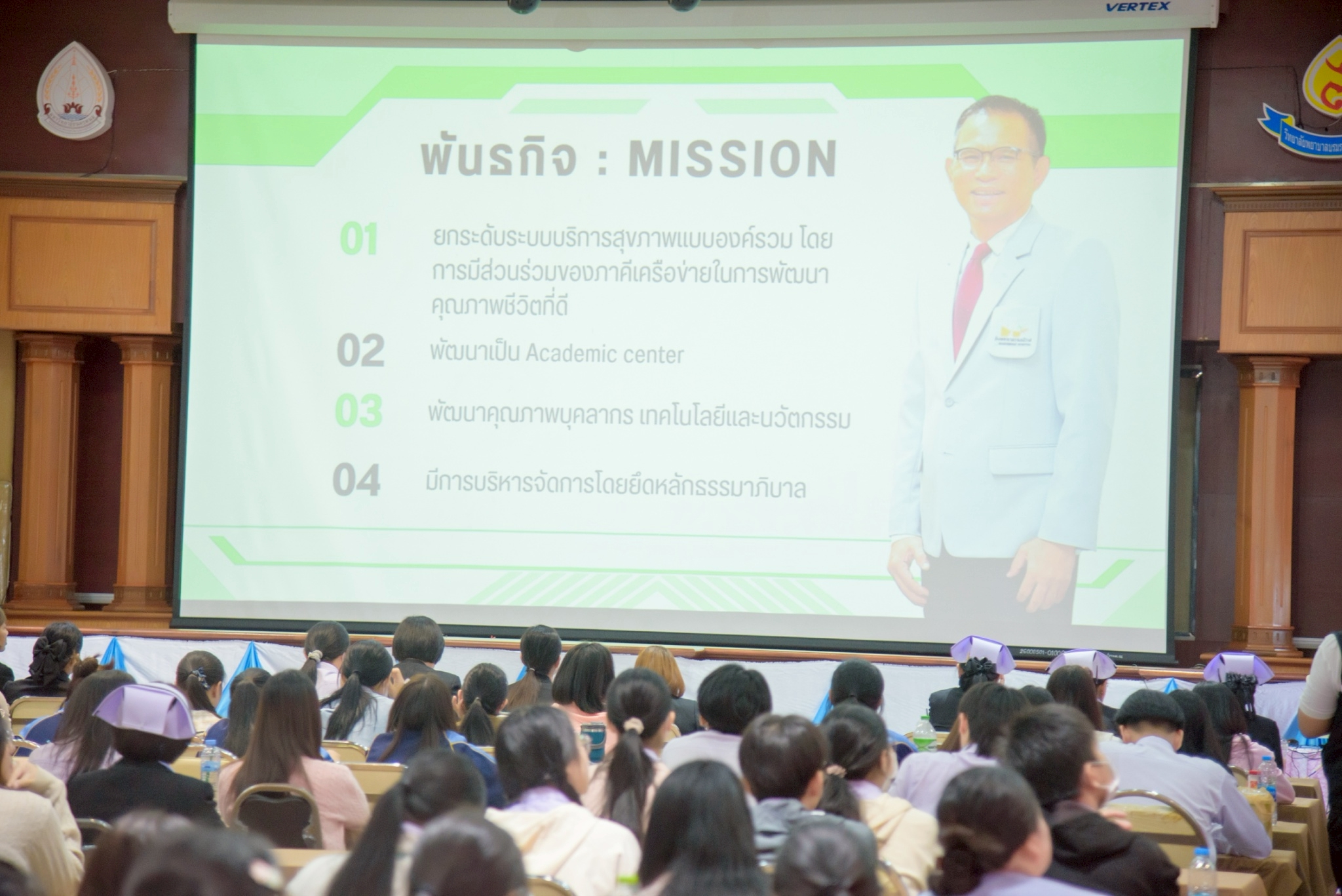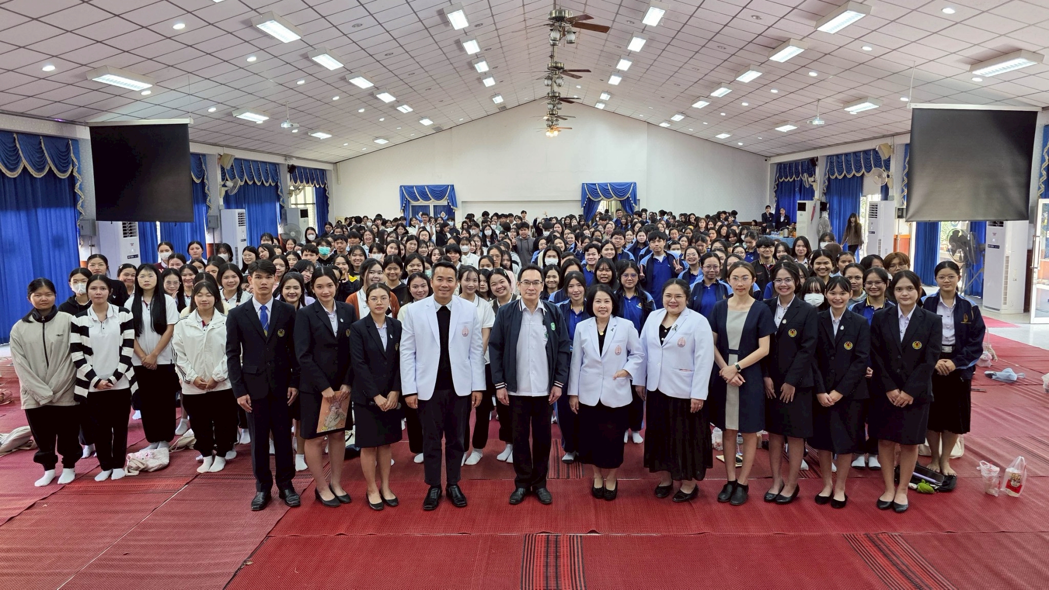 ในโอกาสนี้ วิทยาลัยฯ ได้รับเกียรติจากนายแพทย์อภิวัฒน์ บัณฑิตย์ชาติ ผู้อำนวยการโรงพยาบาลนครพนม พร้อมคณะผู้ติดตามเข้าร่วมบรรยายพิเศษและแลกเปลี่ยนมุมมองด้านการพัฒนาวิชาชีพพยาบาลและด้านสุขภาพพร้อมทั้งกล่าวอวยพรเนื่องในโอกาสขึ้นปีใหม่ พุทธศักราช 2569 เพื่อเป็นขวัญกำลังใจและแรงบันดาลใจแก่นักศึกษาพยาบาล