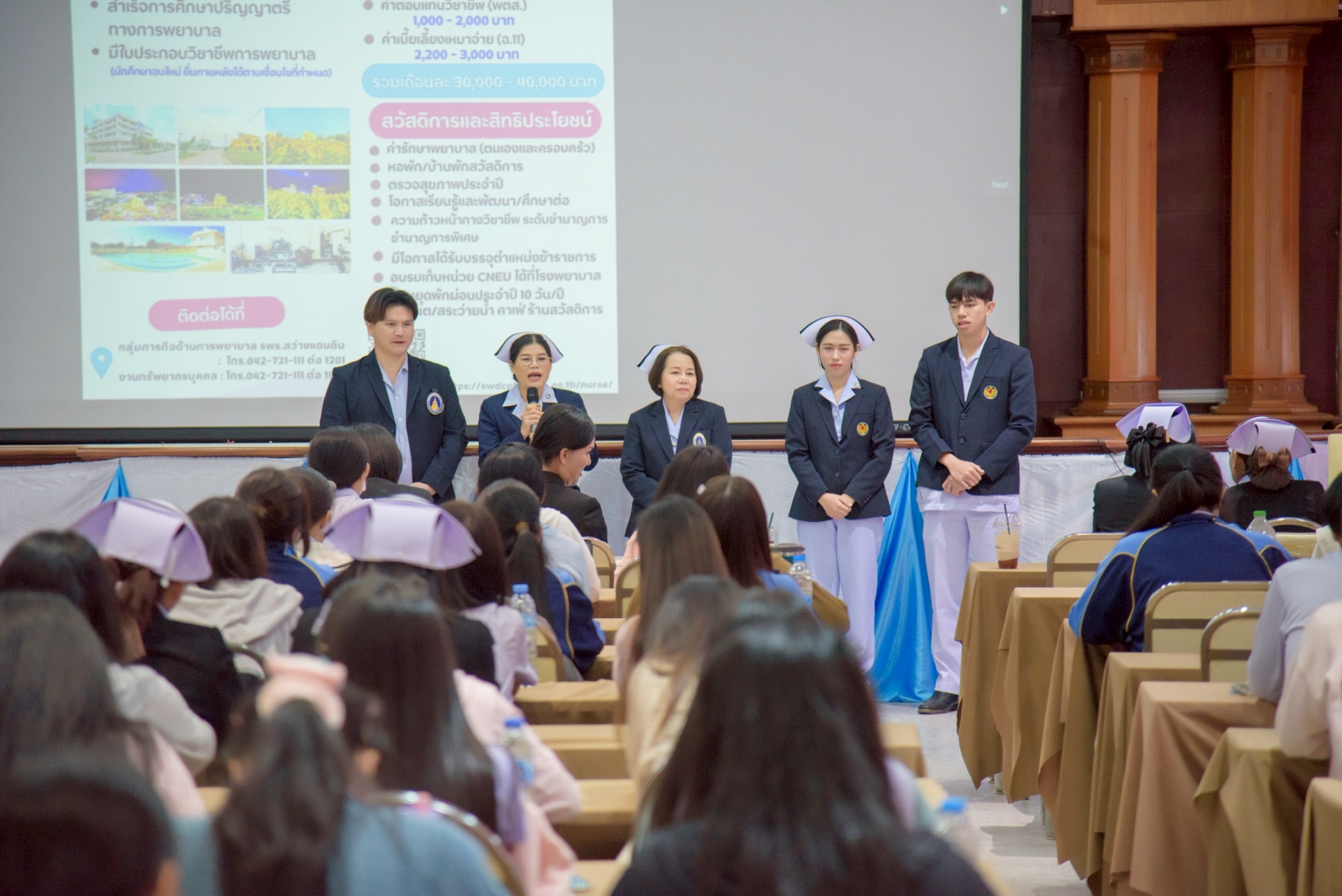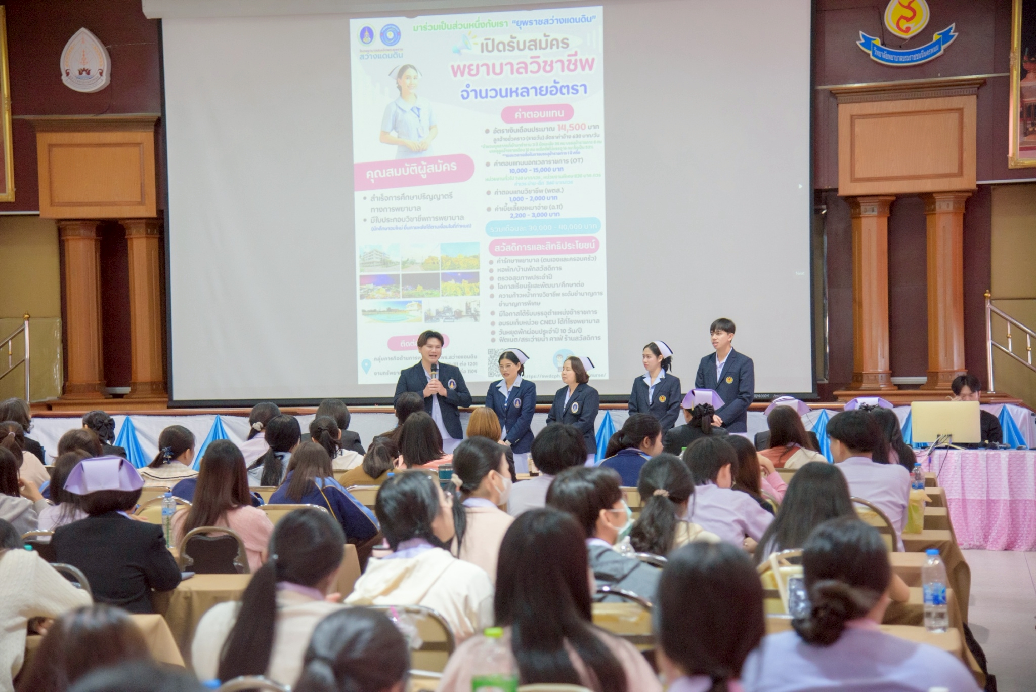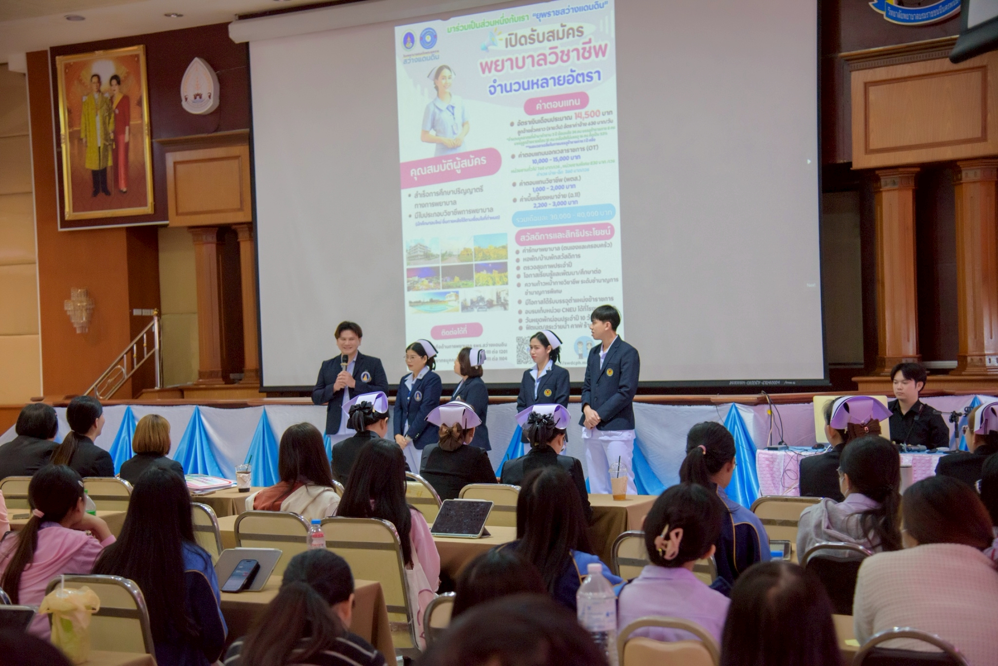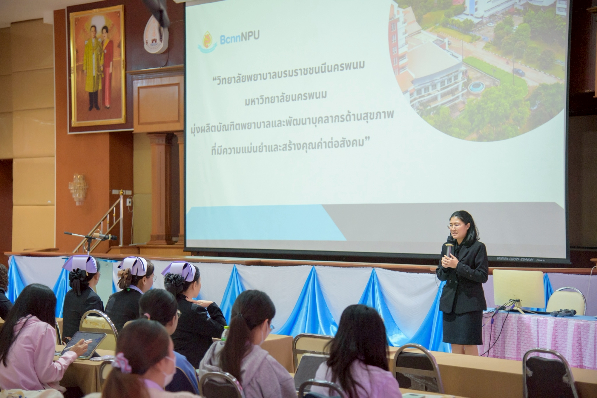 ในโอกาสนี้ วิทยาลัยฯ ได้รับเกียรติจากนายแพทย์อภิวัฒน์ บัณฑิตย์ชาติ ผู้อำนวยการโรงพยาบาลนครพนม พร้อมคณะผู้ติดตามเข้าร่วมบรรยายพิเศษและแลกเปลี่ยนมุมมองด้านการพัฒนาวิชาชีพพยาบาลและด้านสุขภาพพร้อมทั้งกล่าวอวยพรเนื่องในโอกาสขึ้นปีใหม่ พุทธศักราช 2569 เพื่อเป็นขวัญกำลังใจและแรงบันดาลใจแก่นักศึกษาพยาบาล