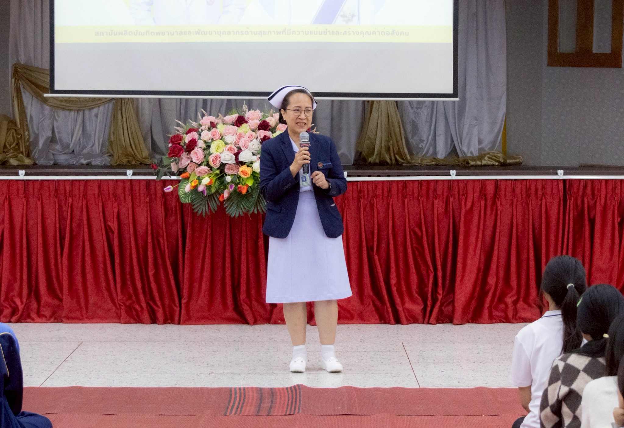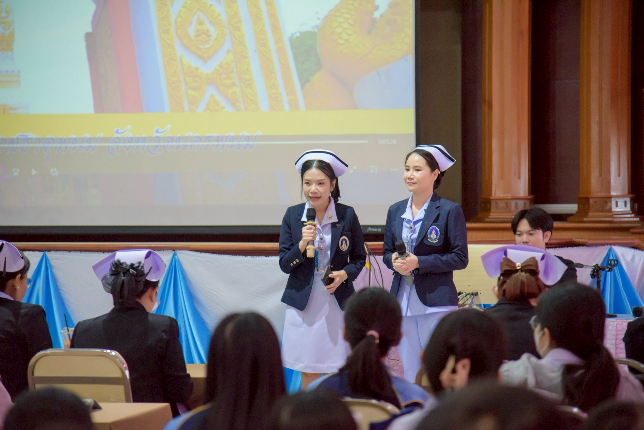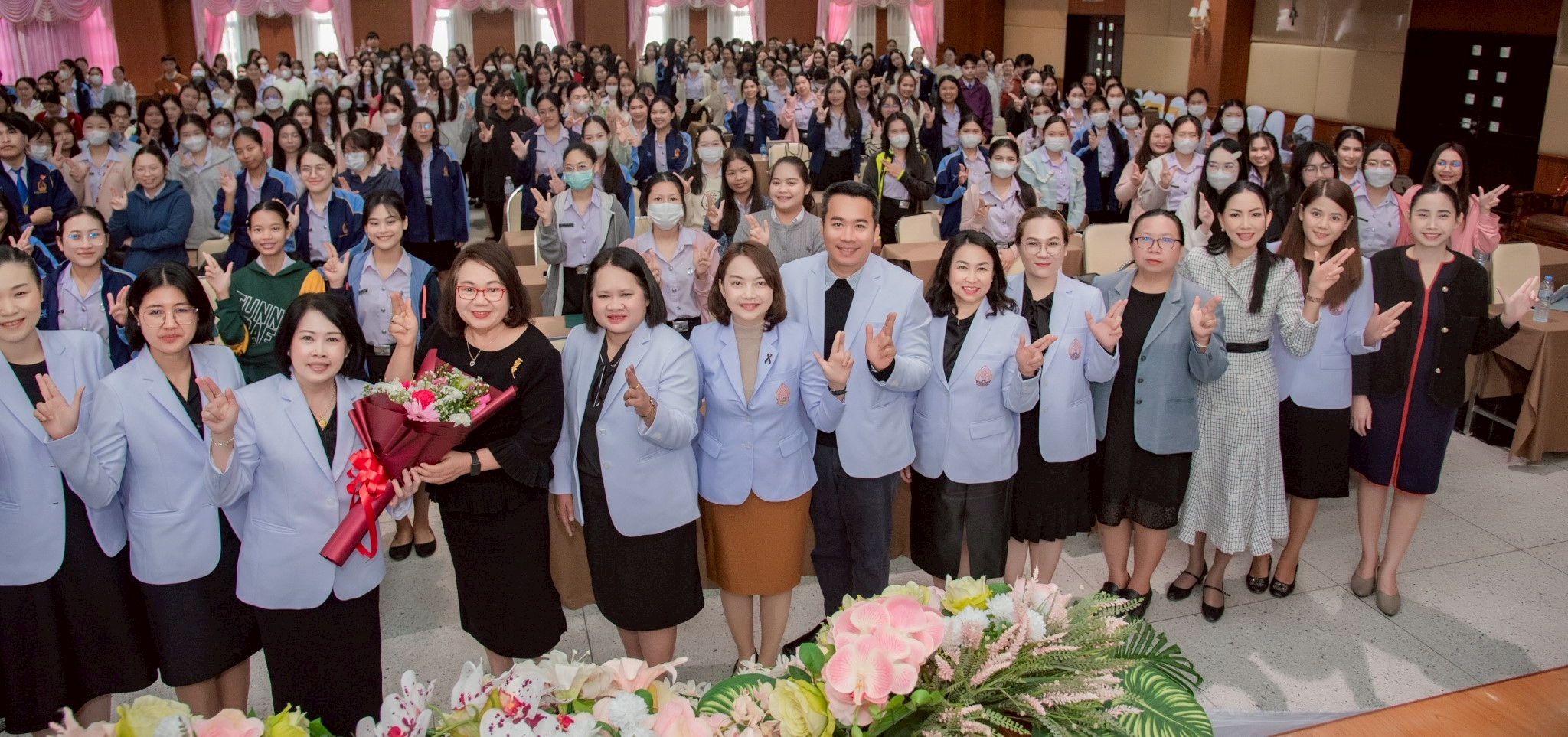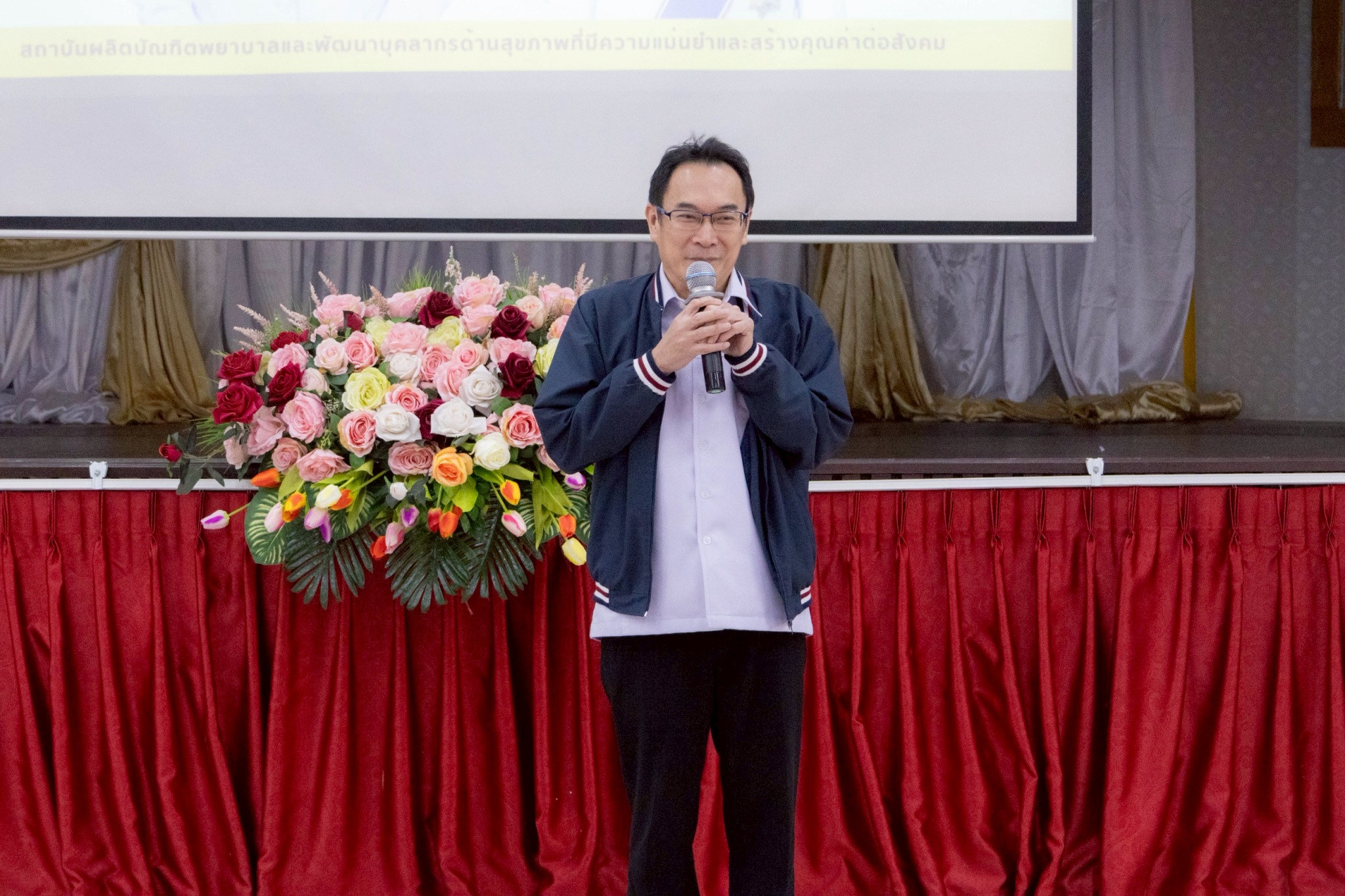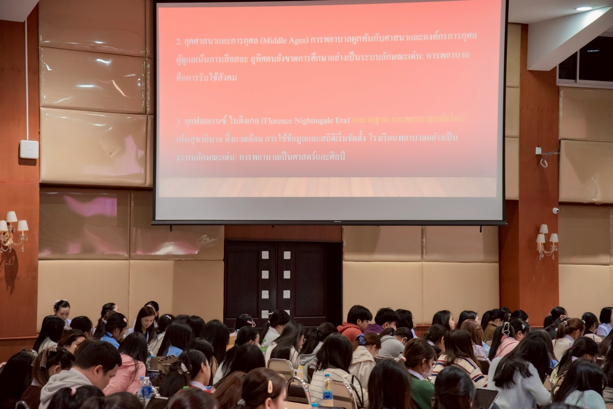 ในโอกาสนี้ วิทยาลัยฯ ได้รับเกียรติจากนายแพทย์อภิวัฒน์ บัณฑิตย์ชาติ ผู้อำนวยการโรงพยาบาลนครพนม พร้อมคณะผู้ติดตามเข้าร่วมบรรยายพิเศษและแลกเปลี่ยนมุมมองด้านการพัฒนาวิชาชีพพยาบาลและด้านสุขภาพพร้อมทั้งกล่าวอวยพรเนื่องในโอกาสขึ้นปีใหม่ พุทธศักราช 2569 เพื่อเป็นขวัญกำลังใจและแรงบันดาลใจแก่นักศึกษาพยาบาล