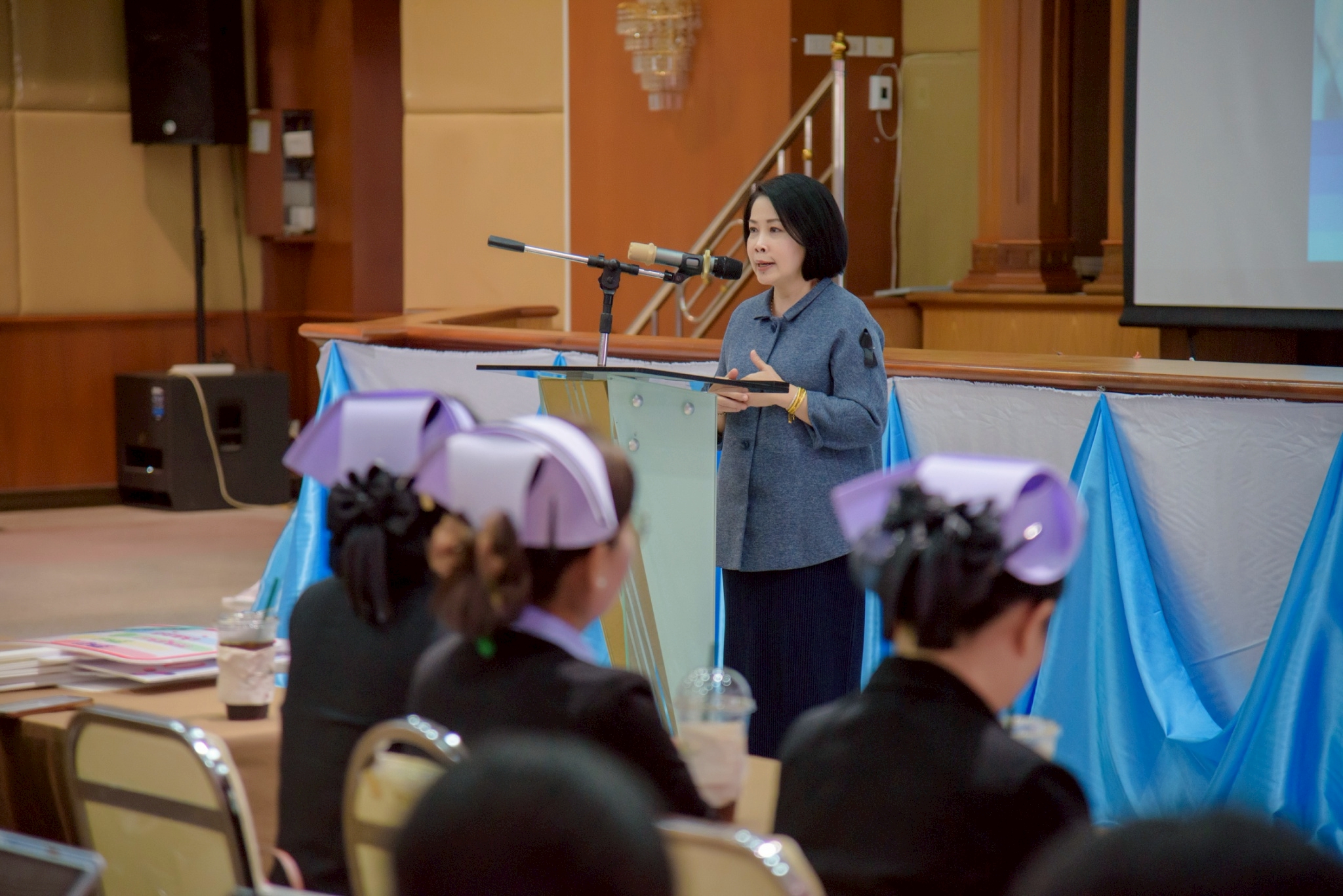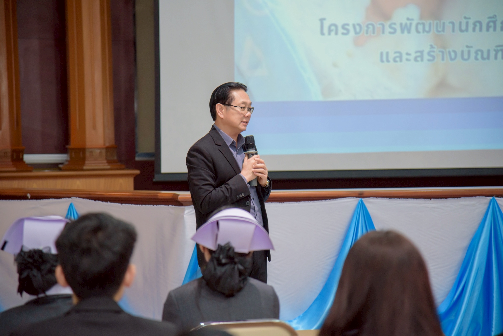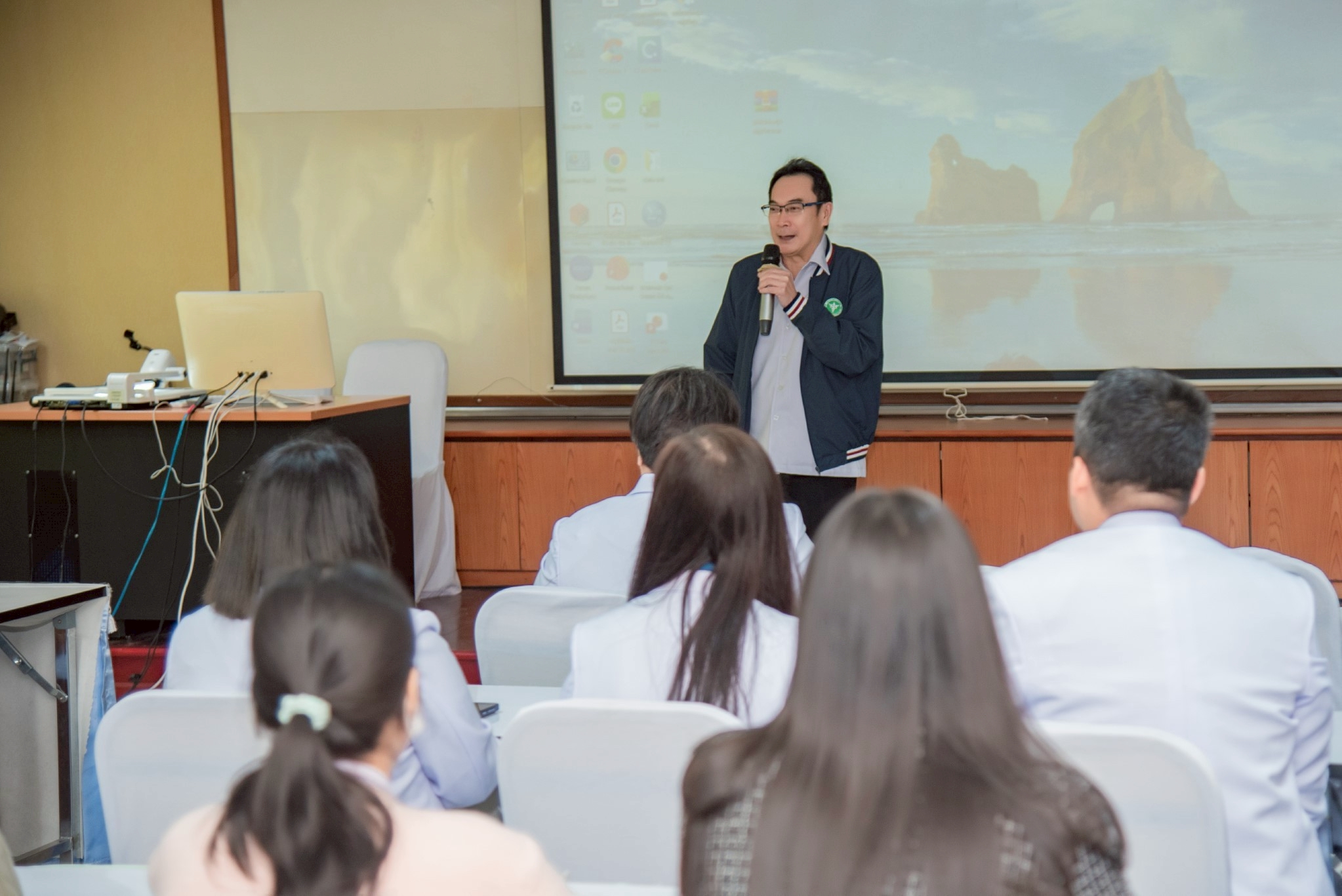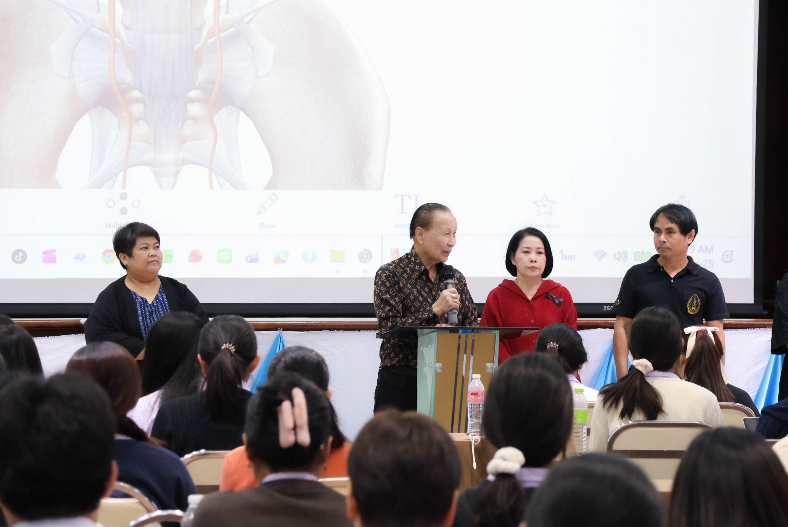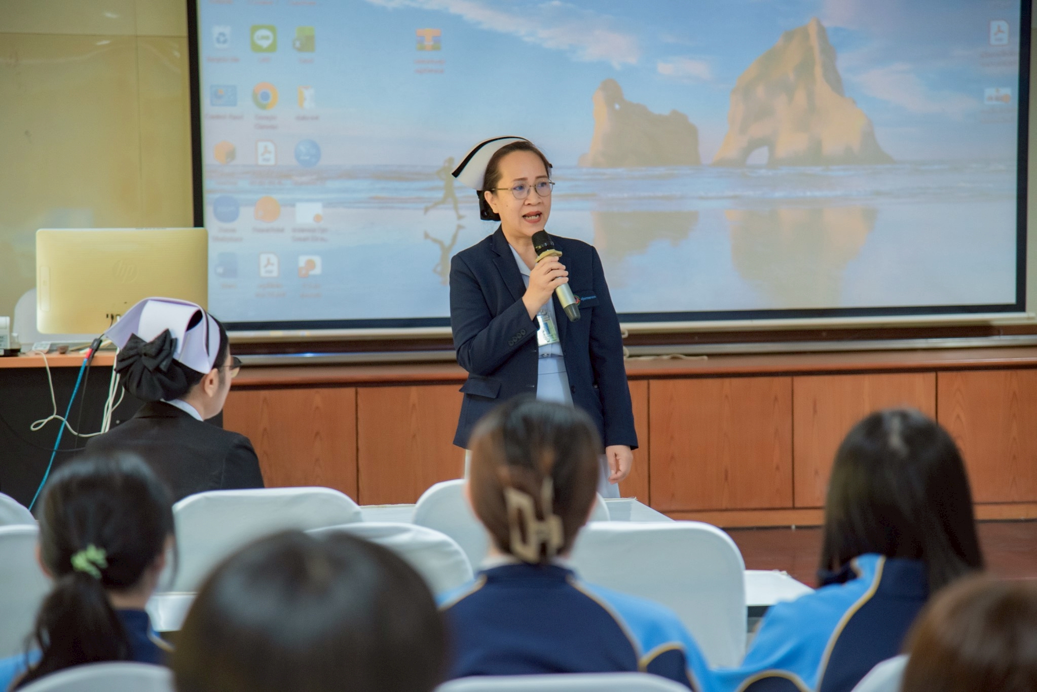 ในโอกาสนี้ วิทยาลัยฯ ได้รับเกียรติจากนายแพทย์อภิวัฒน์ บัณฑิตย์ชาติ ผู้อำนวยการโรงพยาบาลนครพนม พร้อมคณะผู้ติดตามเข้าร่วมบรรยายพิเศษและแลกเปลี่ยนมุมมองด้านการพัฒนาวิชาชีพพยาบาลและด้านสุขภาพพร้อมทั้งกล่าวอวยพรเนื่องในโอกาสขึ้นปีใหม่ พุทธศักราช 2569 เพื่อเป็นขวัญกำลังใจและแรงบันดาลใจแก่นักศึกษาพยาบาล
