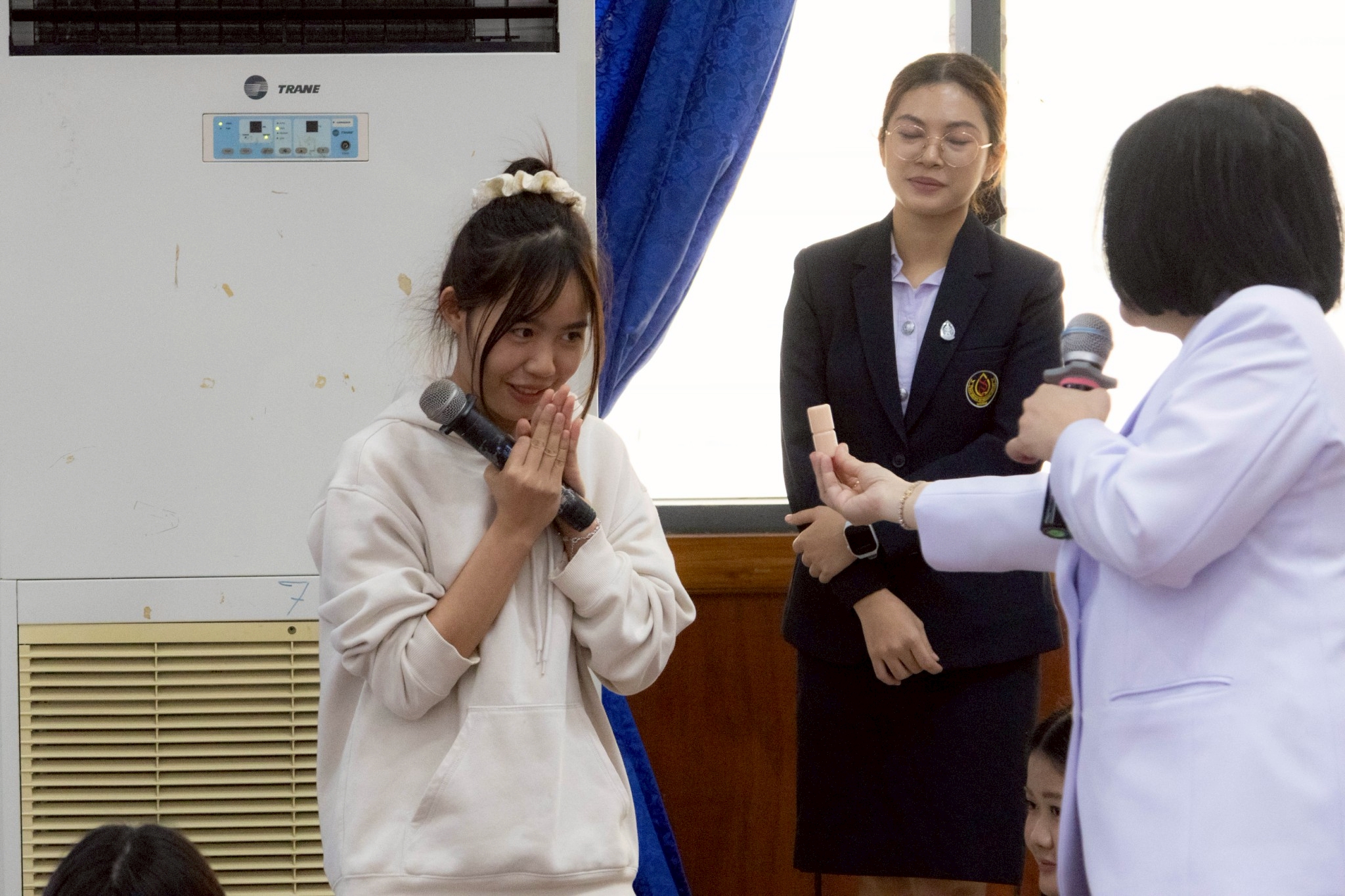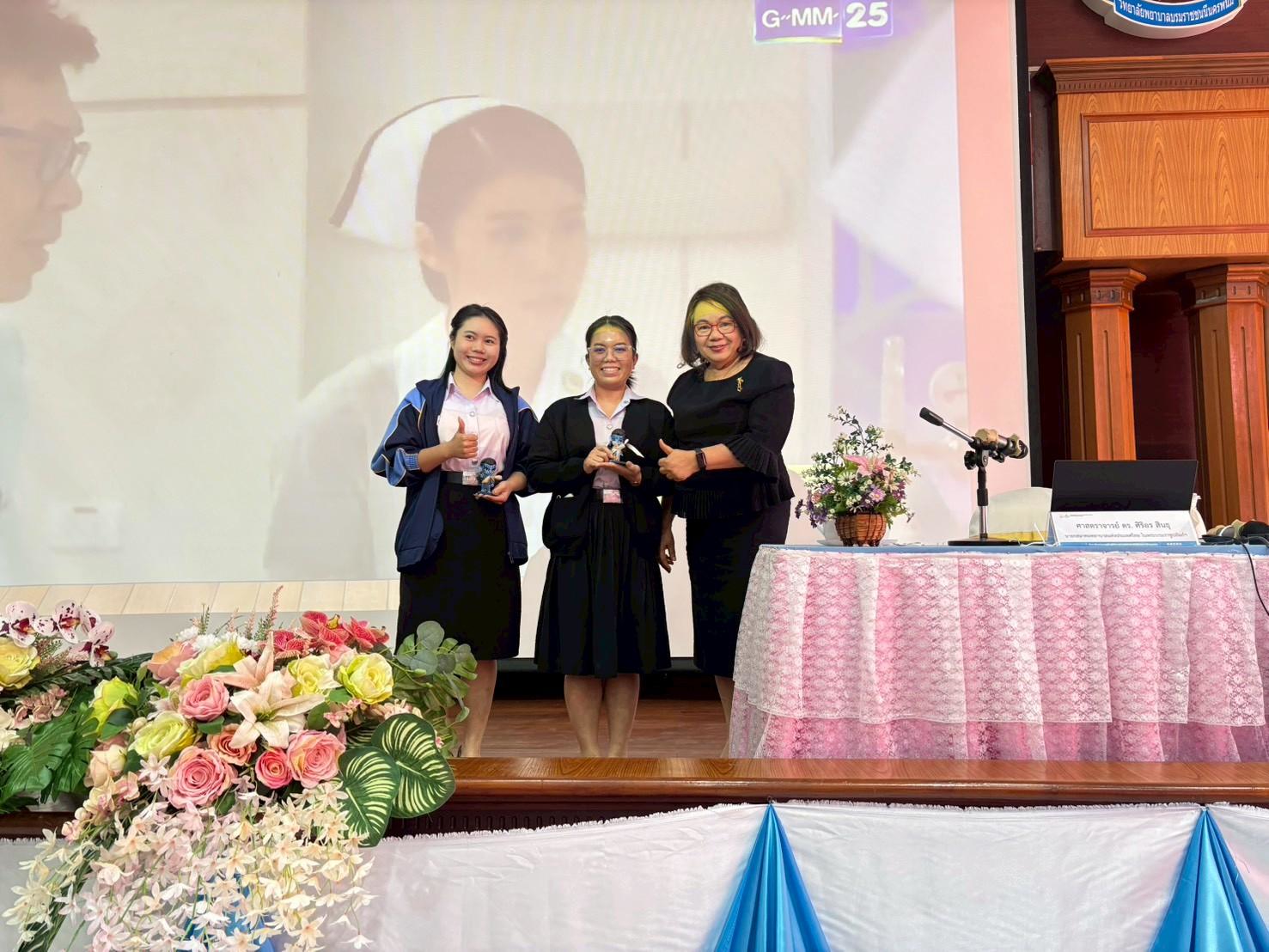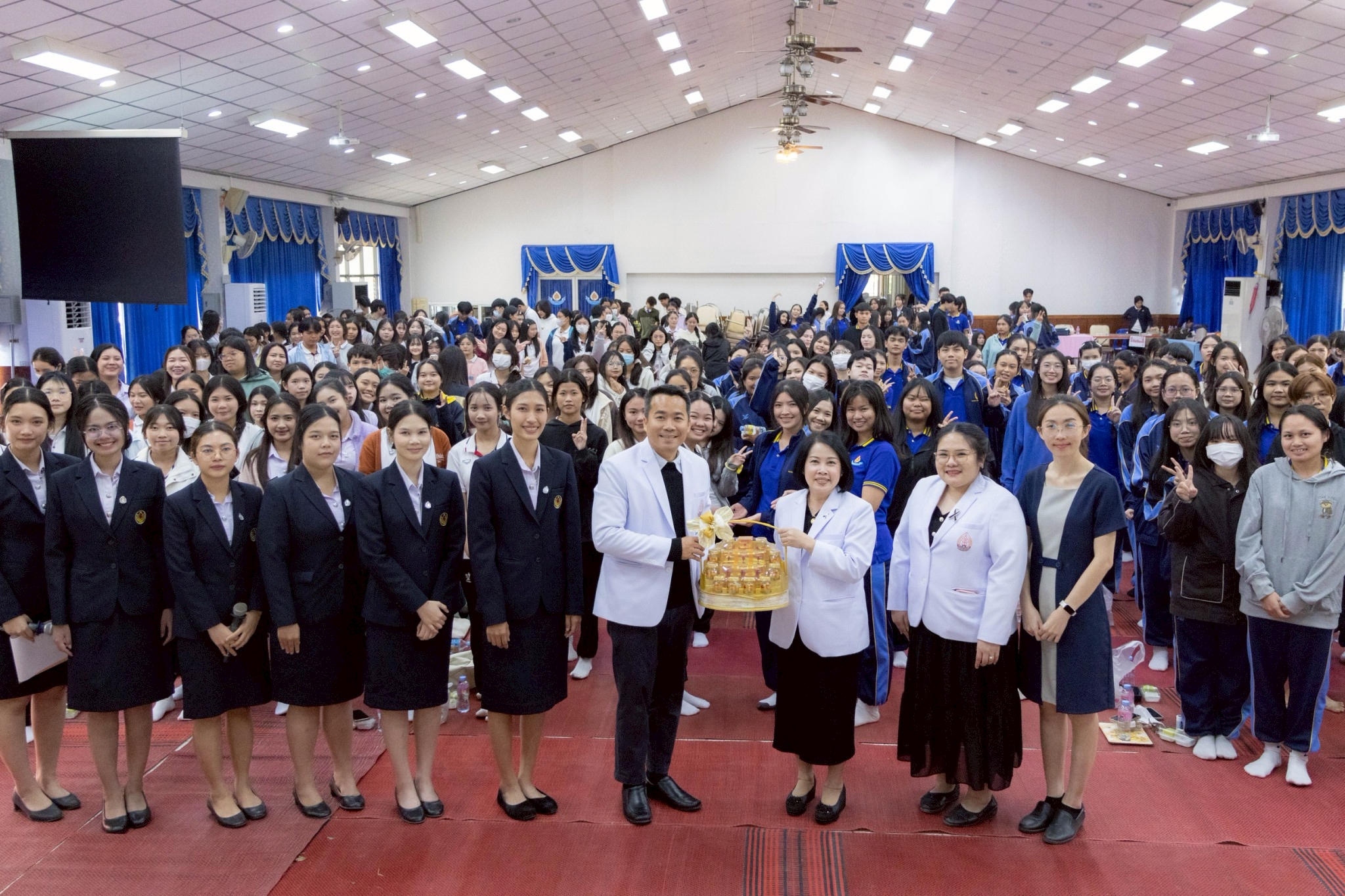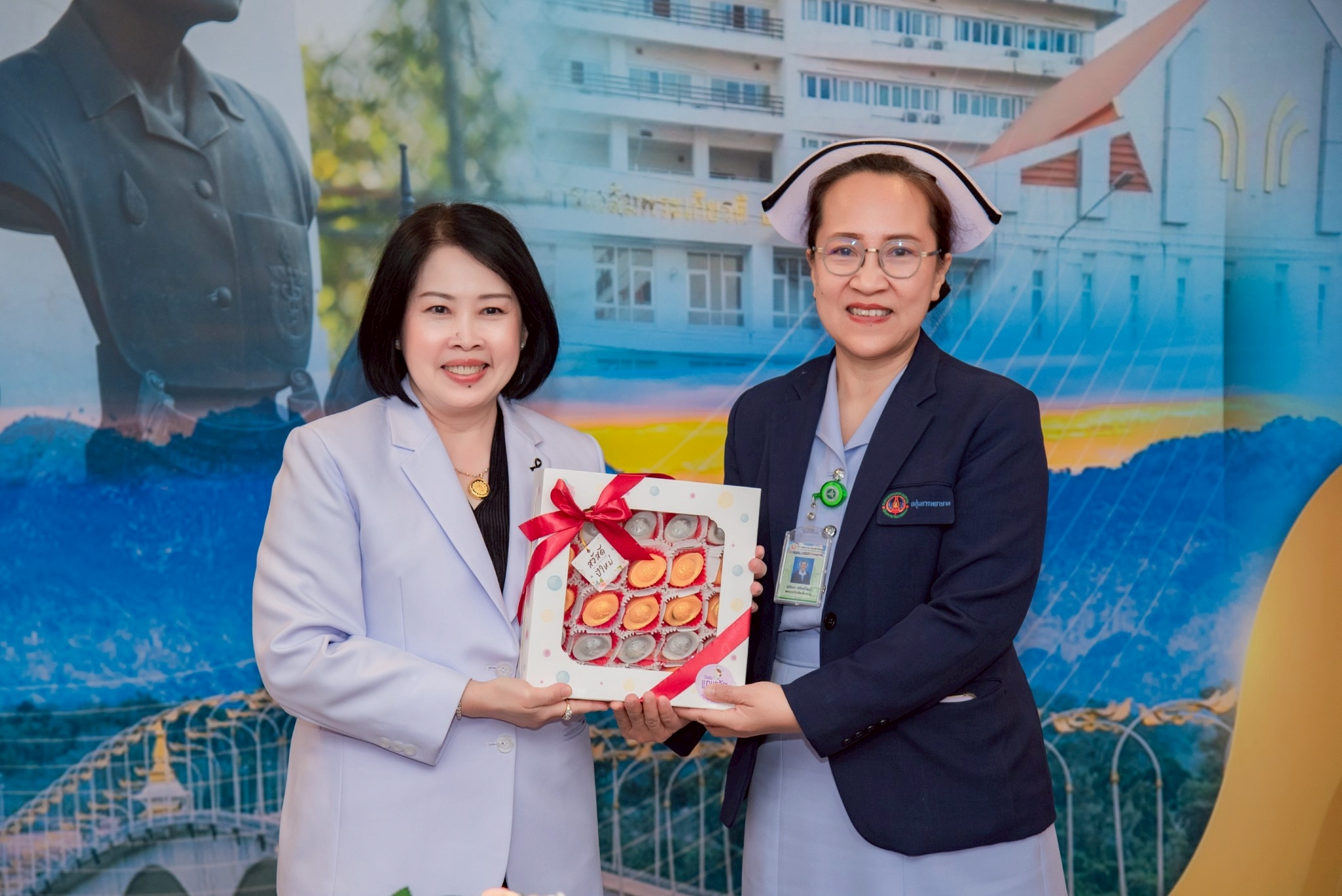 นอกจากนี้ ดร.สุปราณี สิทธิกานต์ คณบดีวิทยาลัยพยาบาลบรมราชชนนีนครพนมยังได้กล่าวอวยพรปีใหม่ และมอบ ของขวัญปีใหม่แก่นักศึกษาชั้นปีที่ 1–3 เพื่อสร้างขวัญและกำลังใจ เสริมสร้างความผูกพัน และสะท้อนถึงความห่วงใยของผู้บริหารที่มีต่อนักศึกษาก่อให้เกิดบรรยากาศแห่งความอบอุ่น และความประทับใจภายในรั้ววิทยาลัย