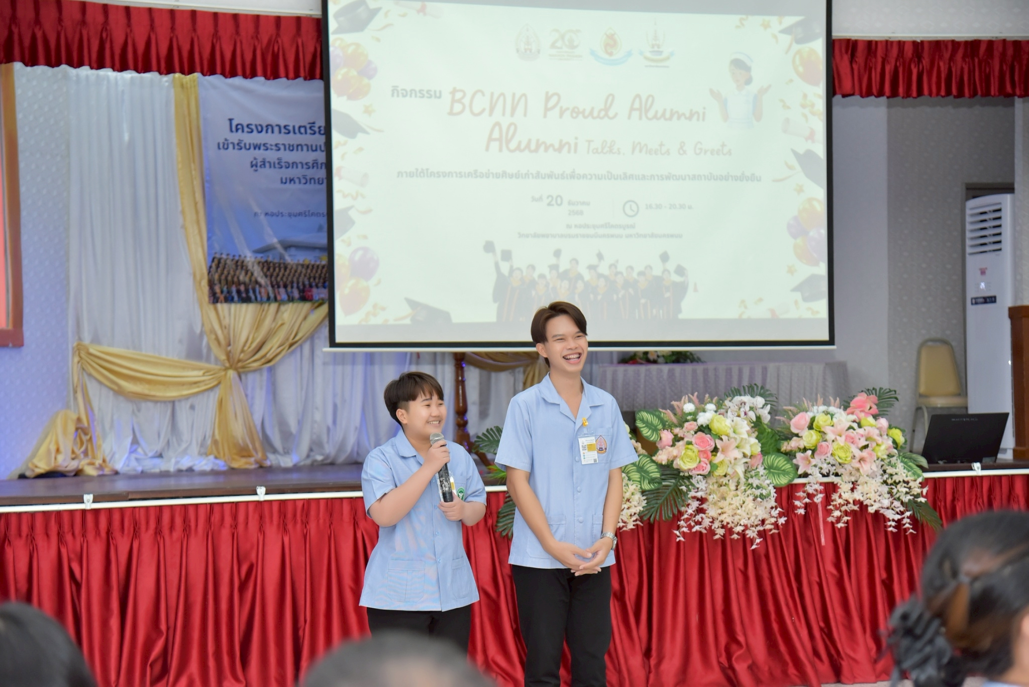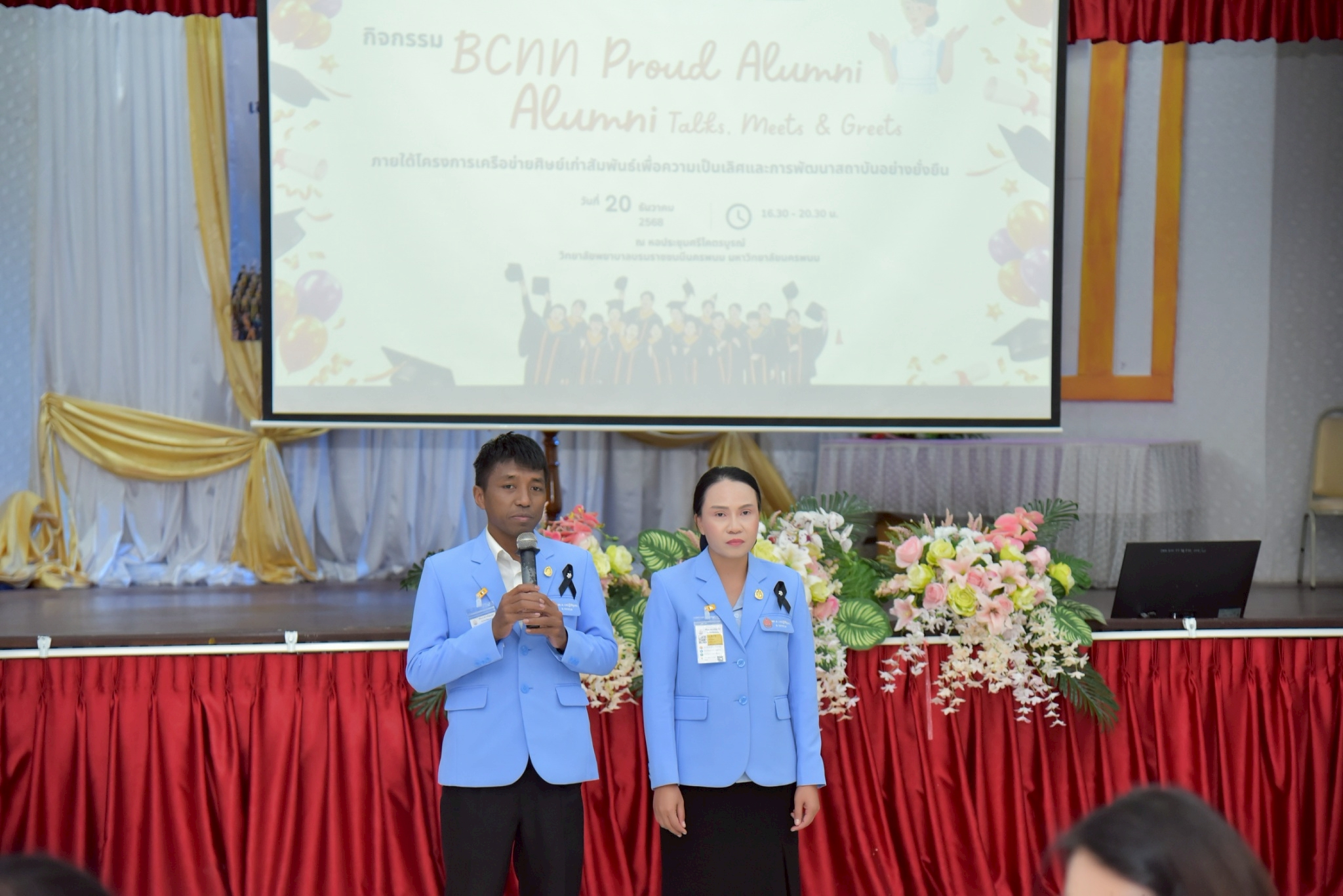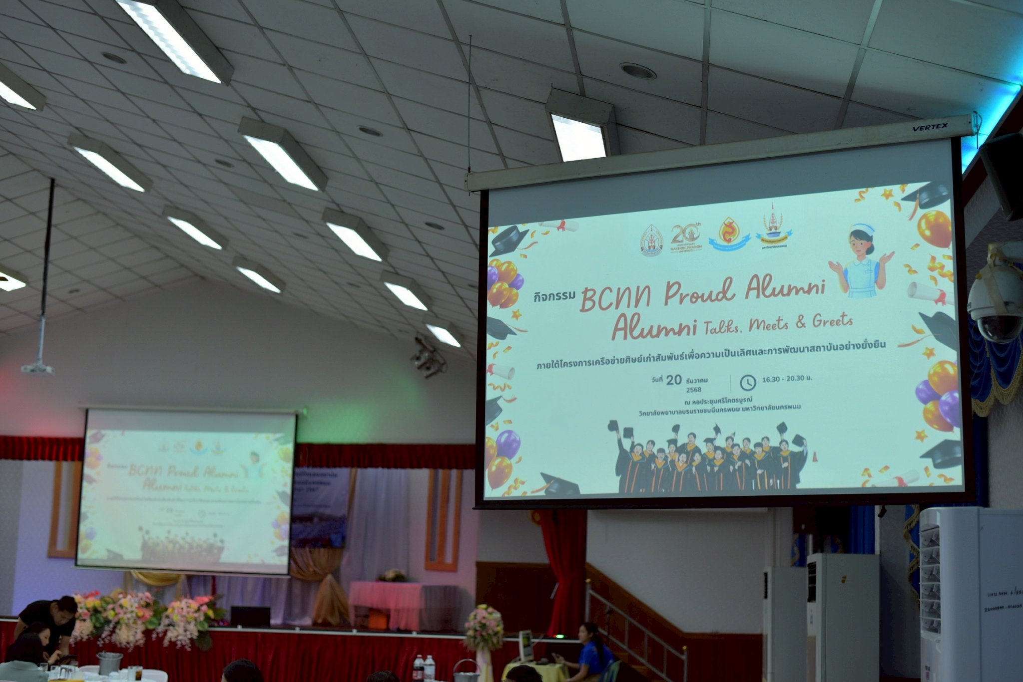 วันที่ 20 ธันวาคม 2568 ฝ่ายพัฒนานักศึกษาและวิเทศสัมพันธ์ ร่วมกับคณะกรรมการสโมสรนักศึกษาวิทยาลัยพยาบาลบรมราชชนนีนครพนม มหาวิทยาลัยนครพนม จัดกิจกรรม BCNN Proud Alumni: Alumni Talks, Meets & Greets ภายใต้โครงการเครือข่ายศิษย์เก่าสัมพันธ์เพื่อความเป็นเลิศและการพัฒนาสถาบันอย่างยั่งยืน ณ หอประชุมศรีโคตรบูรณ์ วิทยาลัยพยาบาลบรมราชชนนีนครพนม มหาวิทยาลัยนครพนม