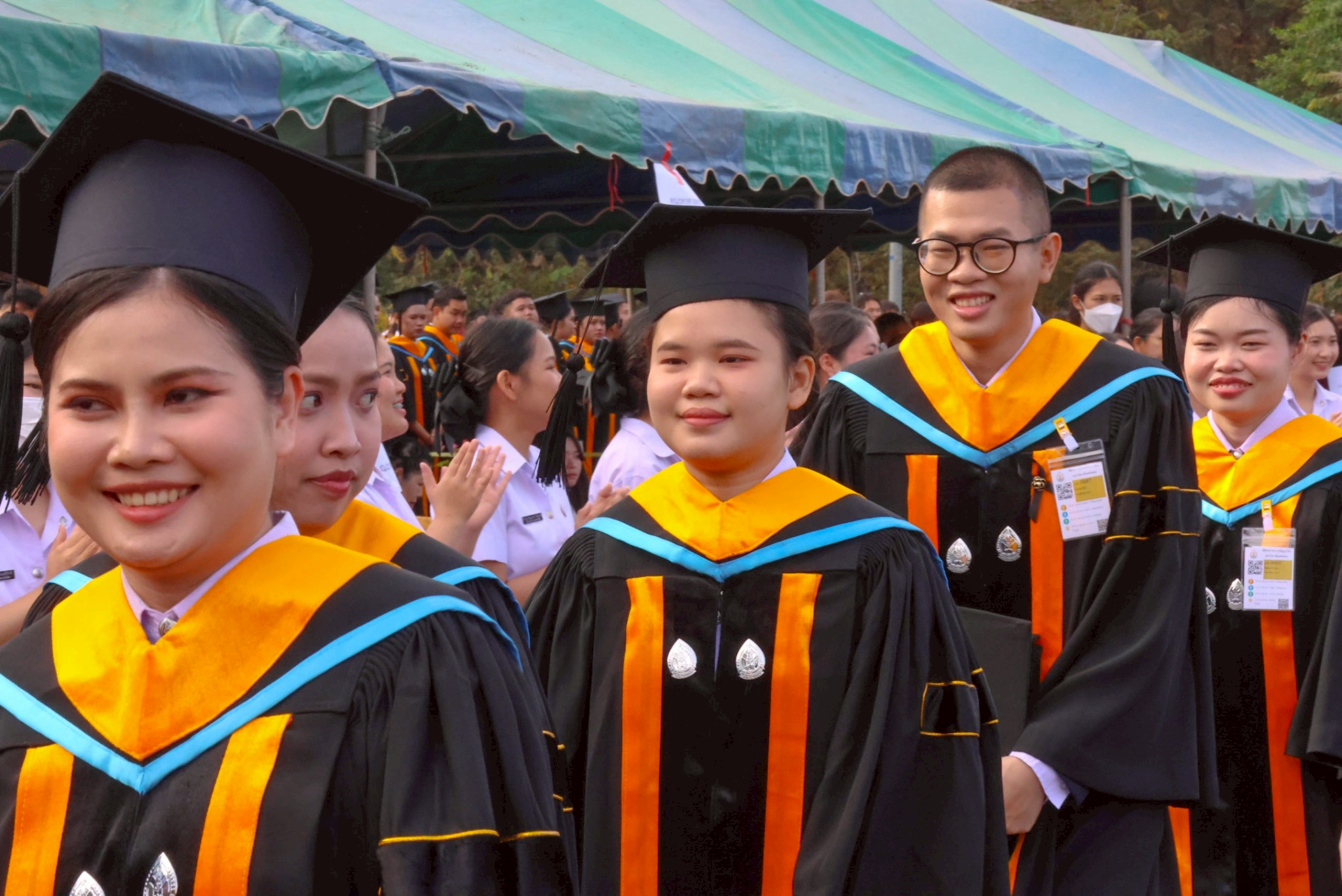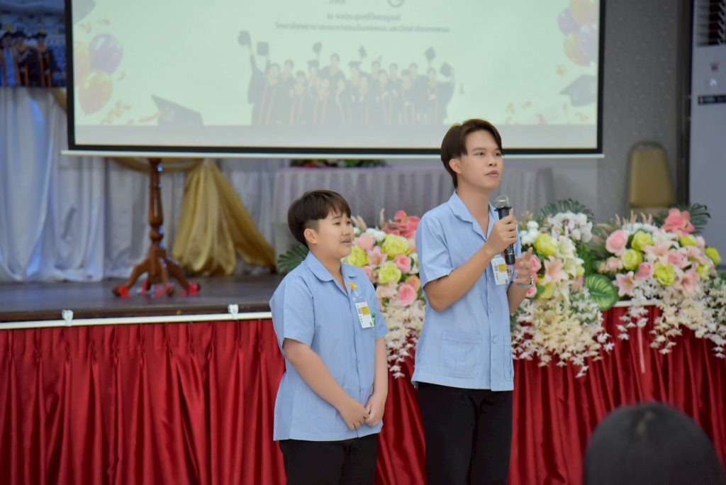 โอกาสนี้ ดร.สุปราณี สิทธิกานต์ คณบดีวิทยาลัยพยาบาลบรมราชชนนีนครพนม มหาวิทยาลัยนครพนม ให้เกียรติกล่าวต้อนรับและแสดงความยินดีแก่มหาบัณฑิตและบัณฑิตที่เข้ารับพระราชทานปริญญาบัตรฯ ขณะที่ ผู้ช่วยศาสตราจารย์ ดร.สุรชัย เฉนียง รองคณบดีฝ่ายพัฒนานักศึกษาและวิเทศสัมพันธ์ กล่าวรายงานวัตถุประสงค์การจัดกิจกรรม พร้อมด้วย พว.รุ่งนภา อุดานนท์ นายกสมาคมศิษย์เก่าพยาบาล มหาวิทยาลัยนครพนม กล่าวแสดงความยินดีแก่บัณฑิตและมหาบัณฑิต นอกจากนี้ ยังมีตัวแทนบัณฑิตและมหาบัณฑิตร่วมกล่าวแสดงความรู้สึก ถ่ายทอดประสบการณ์ ความภาคภูมิใจ และแรงบันดาลใจในการก้าวสู่เส้นทางวิชาชีพ