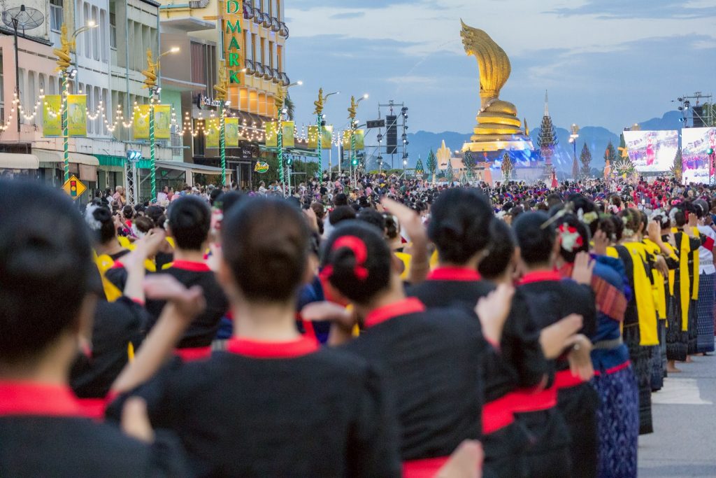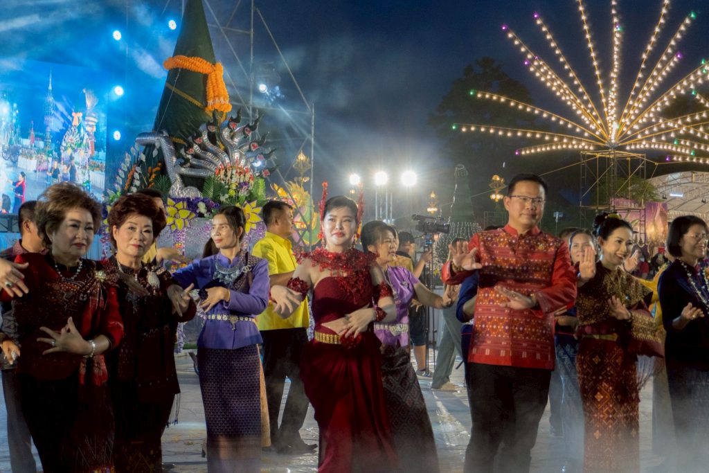 การแสดงรำในครั้งนี้นำโดย มหาวิทยาลัยนครพนม ทุกคณะ/วิทยาลัย พร้อมด้วยคณะนางรำจากอำเภอธาตุพนม ชมรมพ่อบารมีศรีโคตรบูรณ์เทศบาลเมืองนครพนม ชมรมผู้สูงอายุบ้านใต้ ชมรมผู้สูงอายุบ้านเหนือ