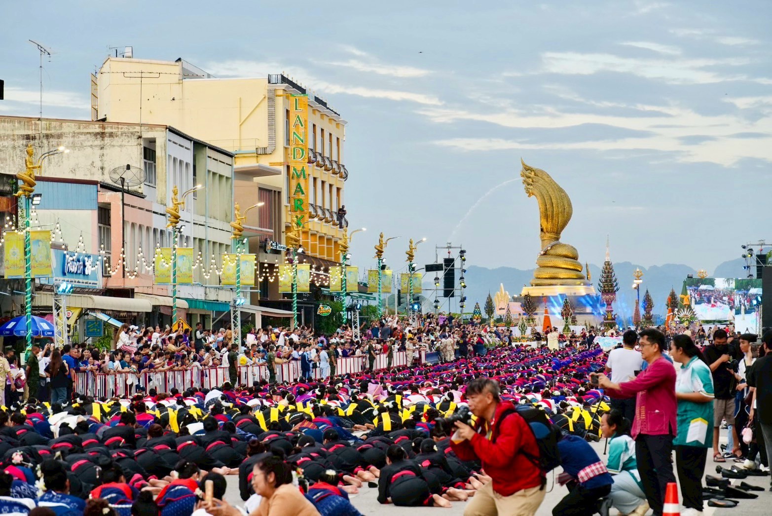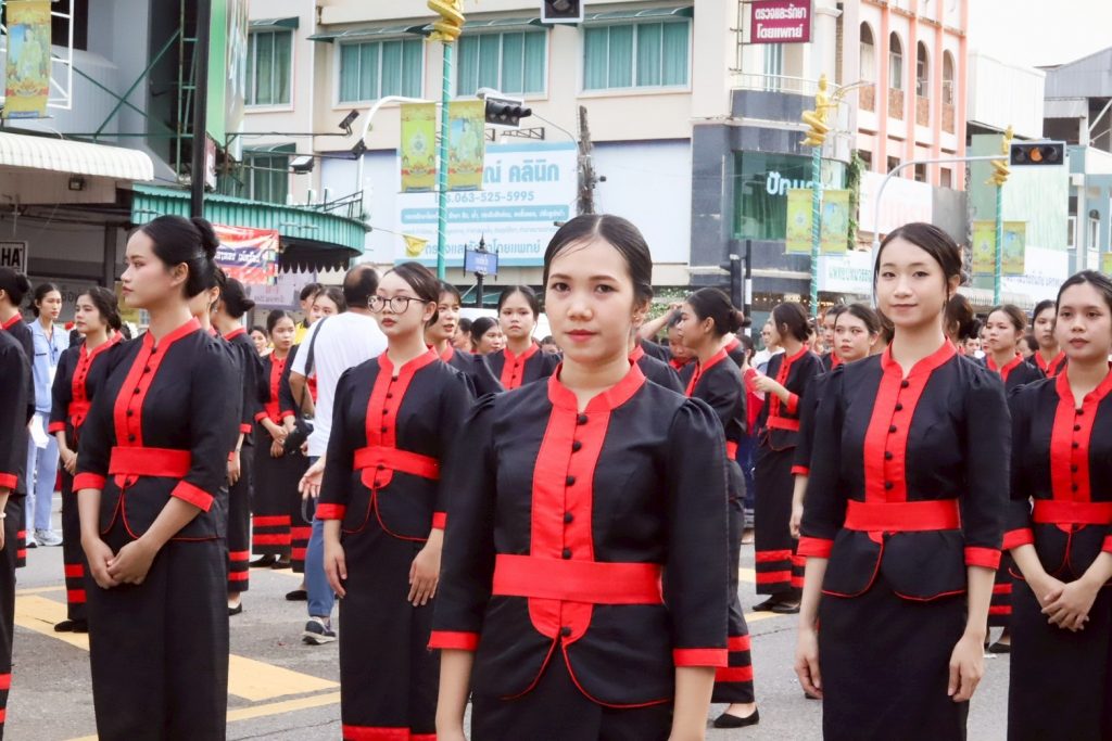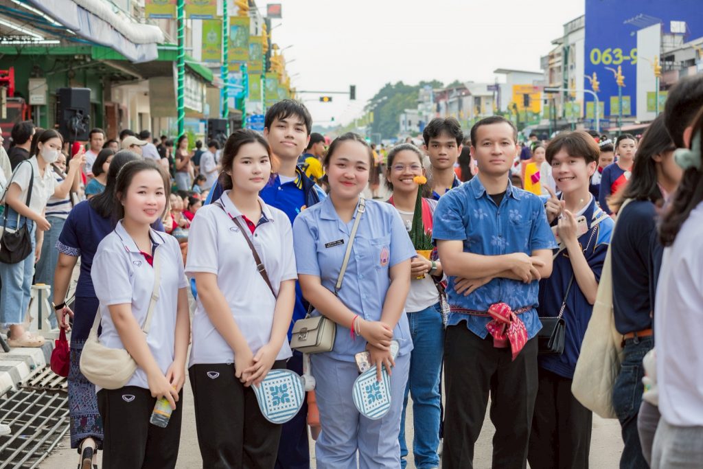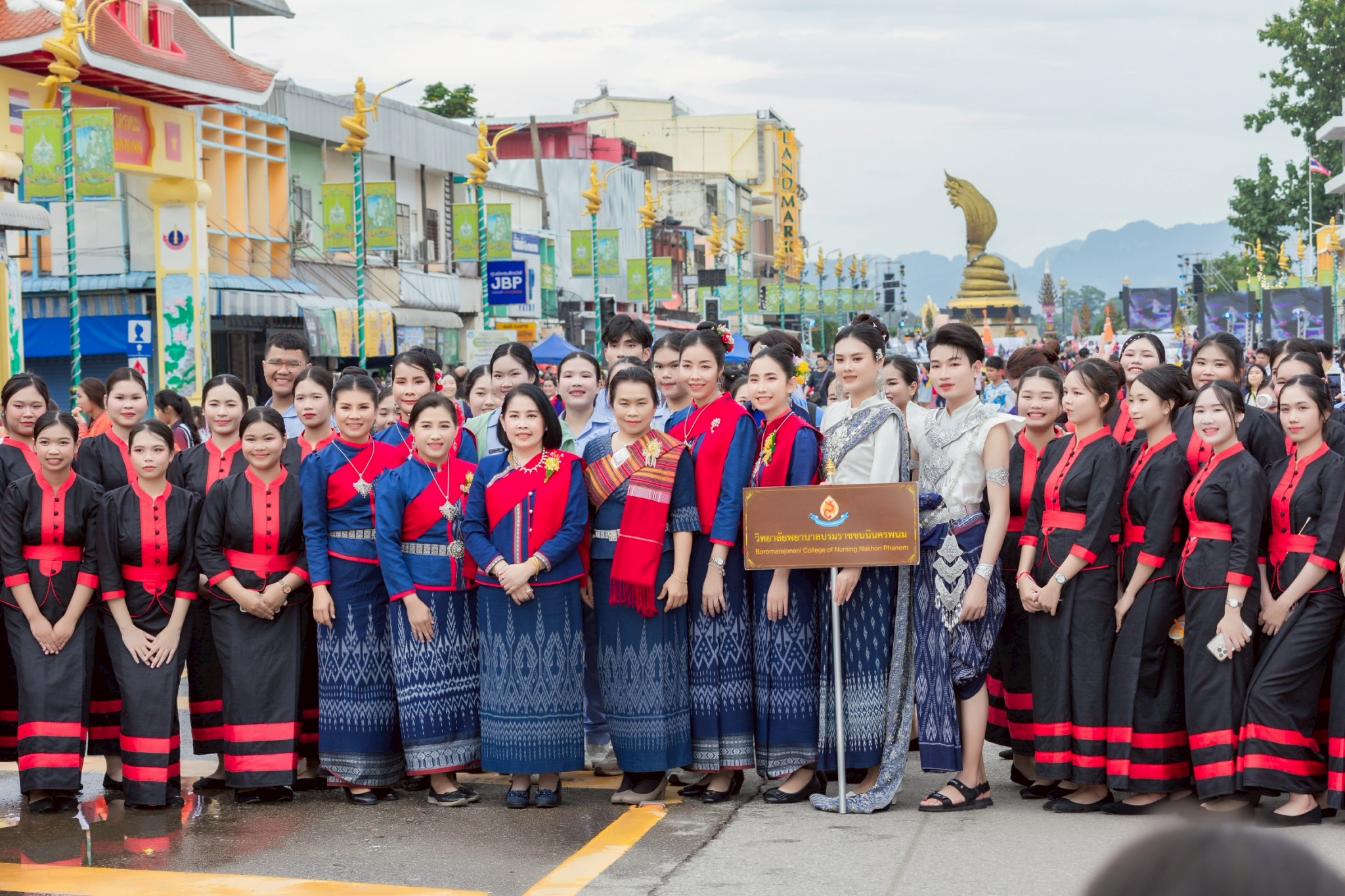 วิทยาลัยพยาบาลบรมราชชนนีนครพนม มหาวิทยาลัยนครพนม นำโดย ดร.สุปราณี สิทธิกานต์ คณบดีวิทยาลัยพยาบาลบรมราชชนนีนครพนม พร้อมด้วยคณะผู้บริหาร นำคณาจารย์ เจ้าหน้าที่ และนักศึกษา ร่วมขบวนแห่เครื่องบูชาพญาศรีสัตตนาคราช และเข้าร่วมพิธีด้วยความตั้งใจและความศรัทธาอันแรงกล้ารวมพลคนเกิดวันอาทิตย์ โดยในวันนี้ มหาวิทยาลัยนครพนม นำโดยศาสตราจารย์เกียรติคุณ ดร.ธวัชชัย ศุภดิษฐ์ อธิการบดี มหาวิทยาลัยนครพนม นำคณะผู้บริหาร คณาจารย์ นักศึกษา ทุกคณะ/วิทยาลัย ร่วมกับอำเภอธาตุพนม เป็นเจ้าภาพในวันนี้ โดยมีหัวหน้าส่วนราชการ หน่วยงานภาครัฐ ภาคเอกชน นักเรียน นักศึกษา และประชาชนทั่วไปเข้าร่วมงานเป็นจำนวนมาก เพื่อร่วมกันสืบสานประเพณีท้องถิ่นและสร้างความสมัครสมานสามัคคีในชุมชน กว่า 2,000