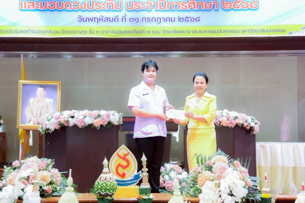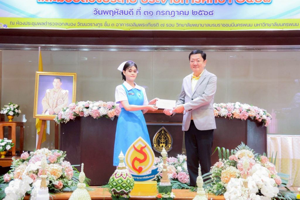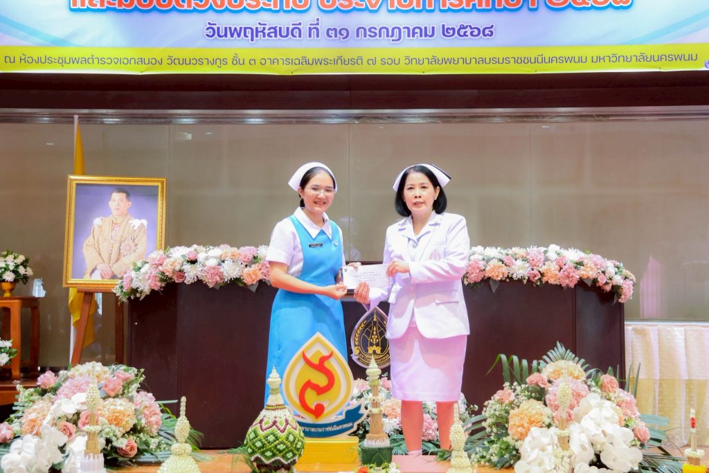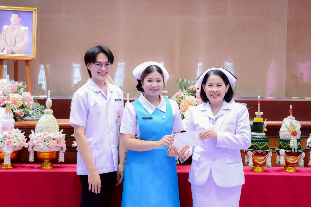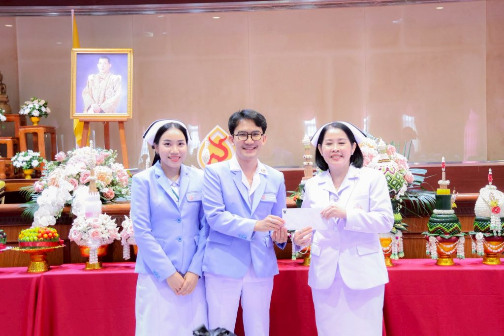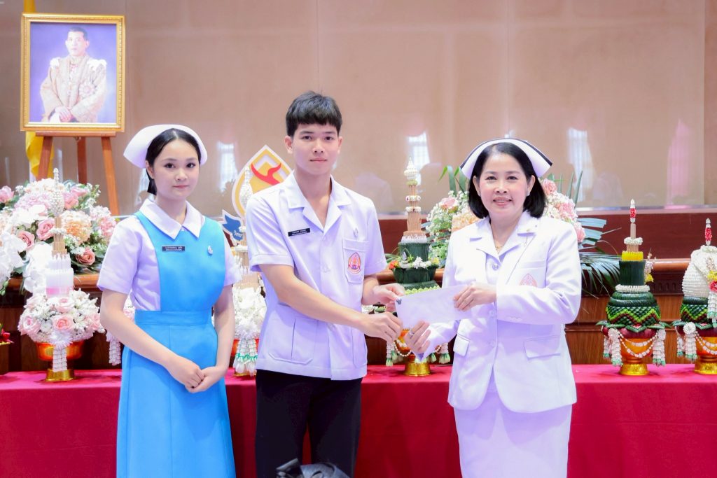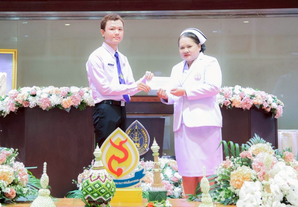 พิธีมอบรางวัลนักศึกษาพยาบาลดีเด่น สมาคมพยาบาลแห่งประเทศไทยฯ สาขาภาคตะวันออกเฉียงเหนือ ประจำปี 2568 ได้แก่ นายสุวัฒน์ชัย หงส์ศรีทอง หลักสูตรพยาบาลศาสตรบัณฑิต ชั้นปีที่ 4 รุ่นที่ 30 ห้อง A