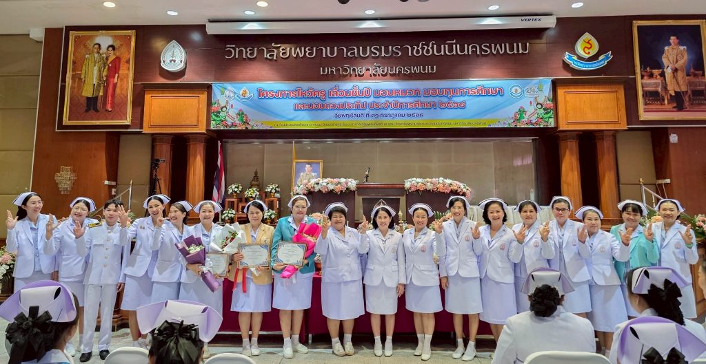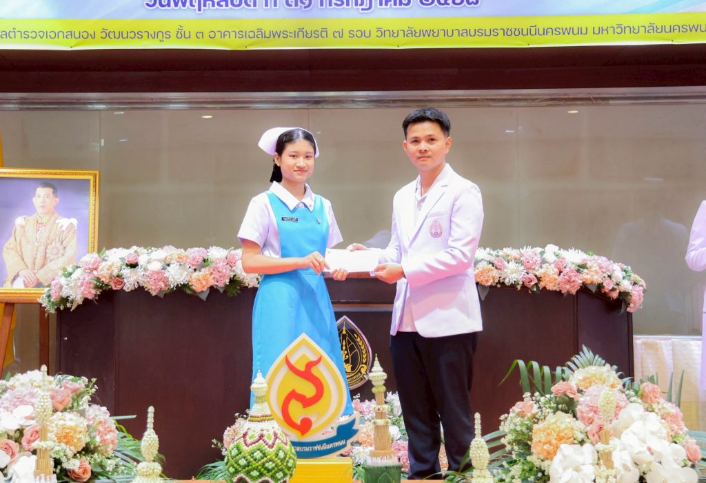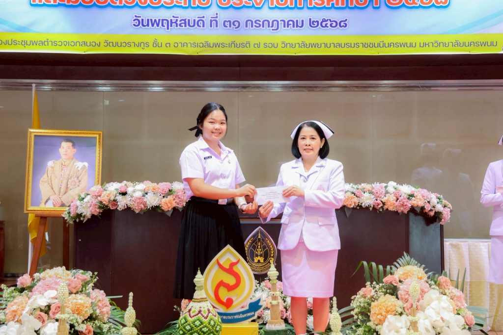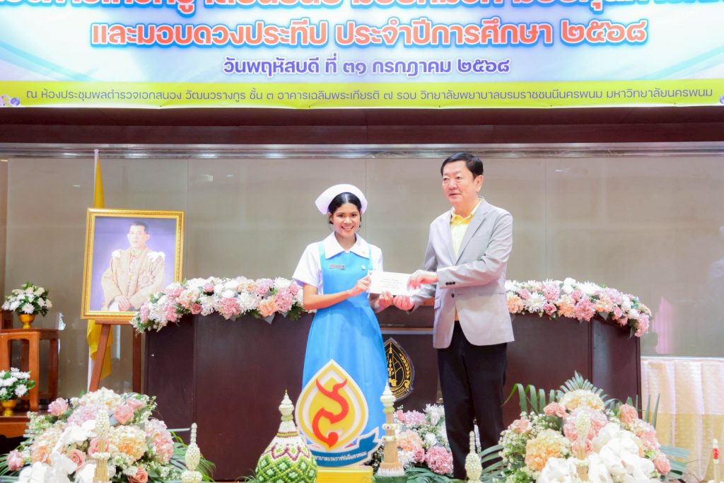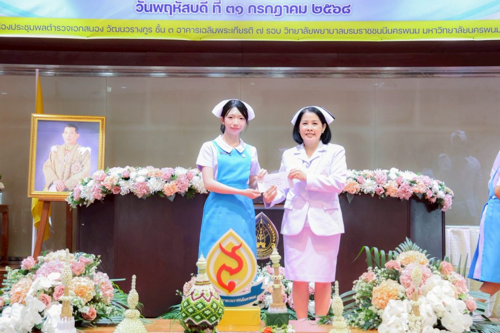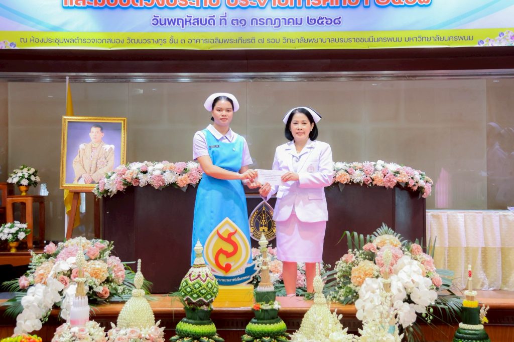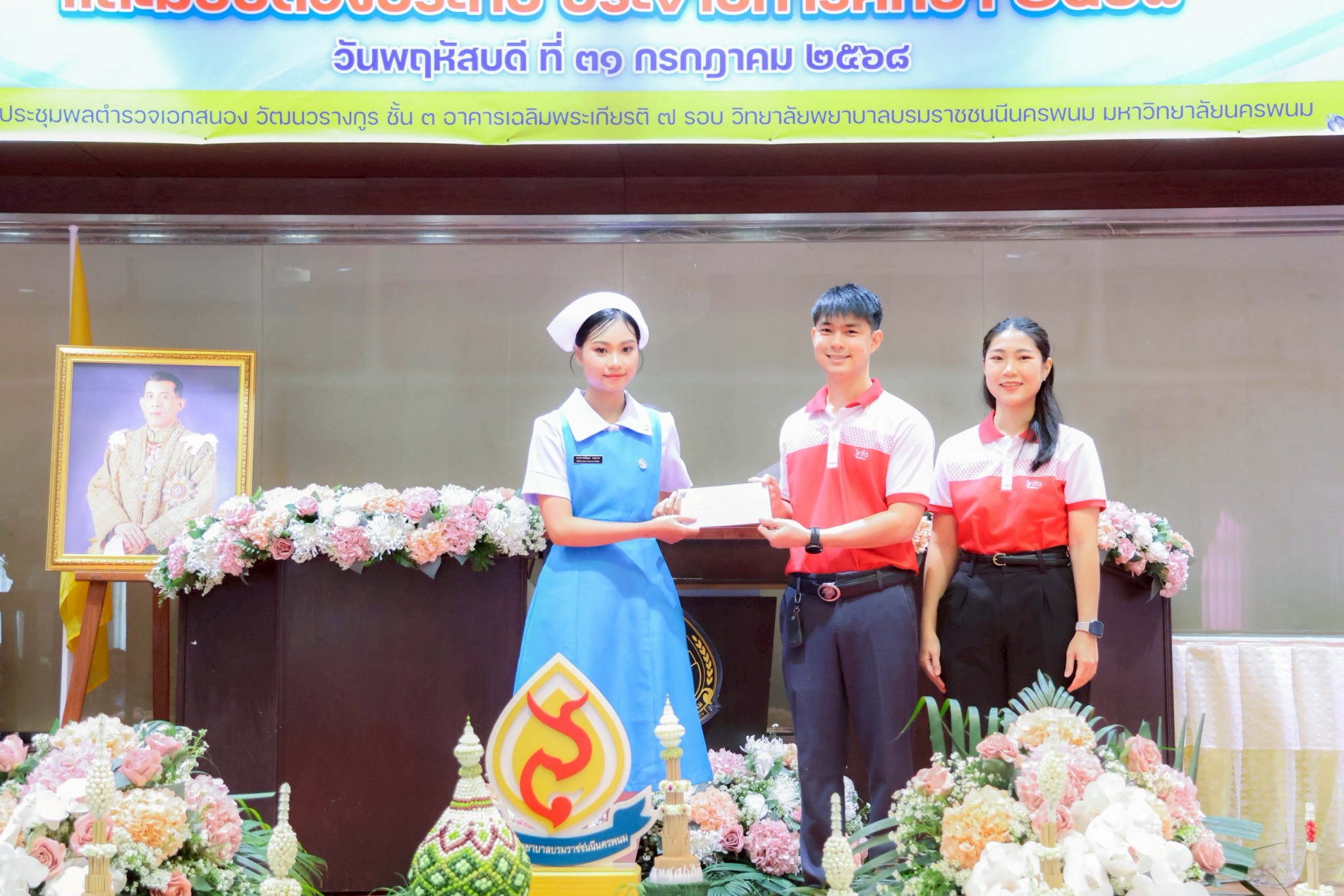 พิธีมอบรางวัลนักศึกษาพยาบาลดีเด่น สมาคมพยาบาลแห่งประเทศไทยฯ สาขาภาคตะวันออกเฉียงเหนือ ประจำปี 2568 ได้แก่ นายสุวัฒน์ชัย หงส์ศรีทอง หลักสูตรพยาบาลศาสตรบัณฑิต ชั้นปีที่ 4 รุ่นที่ 30 ห้อง A