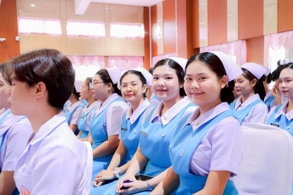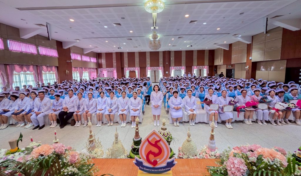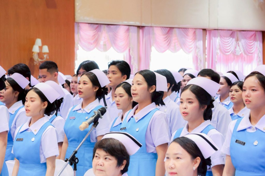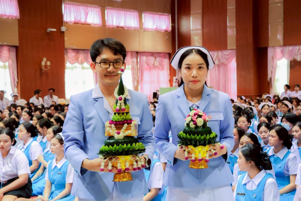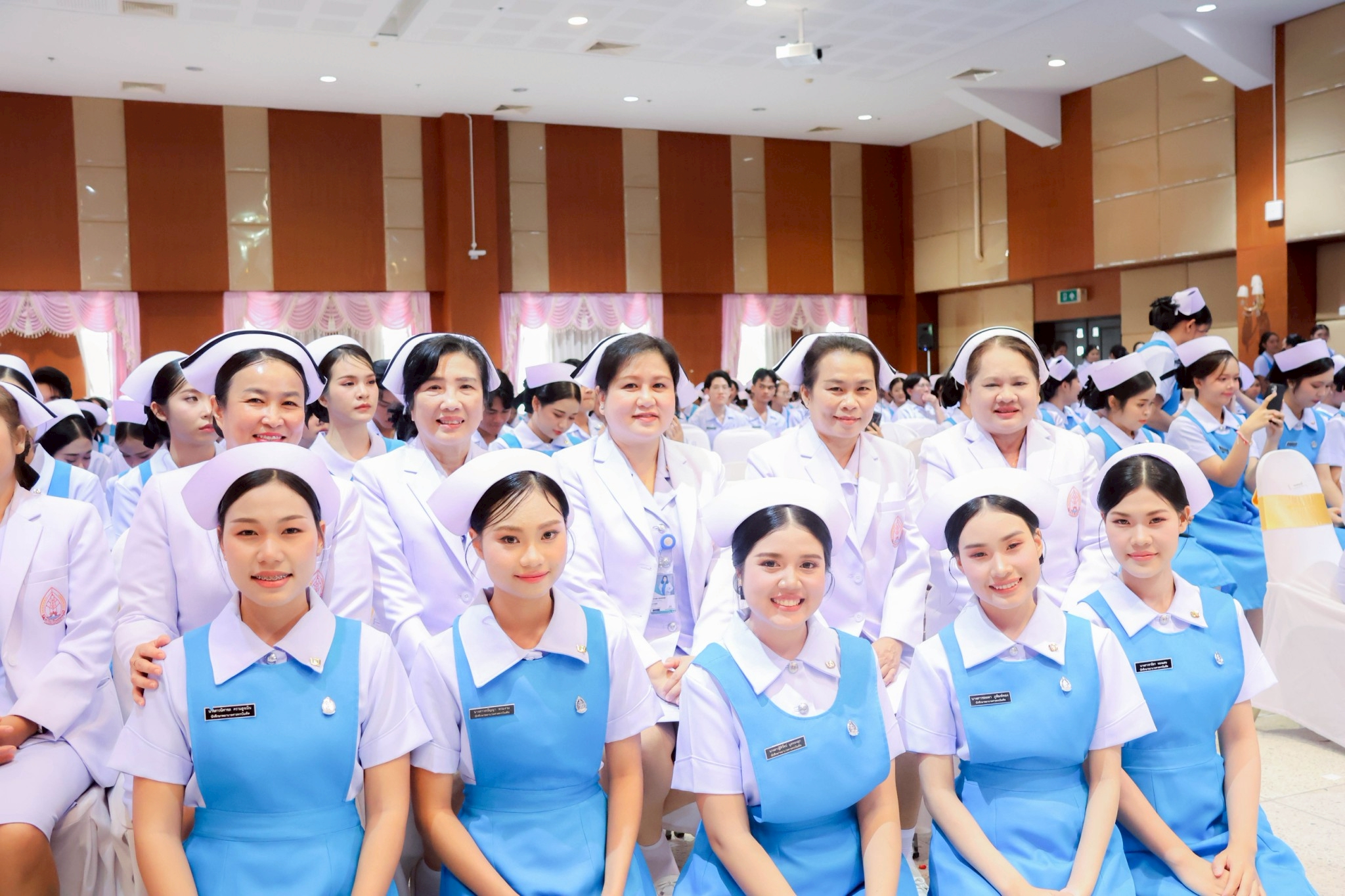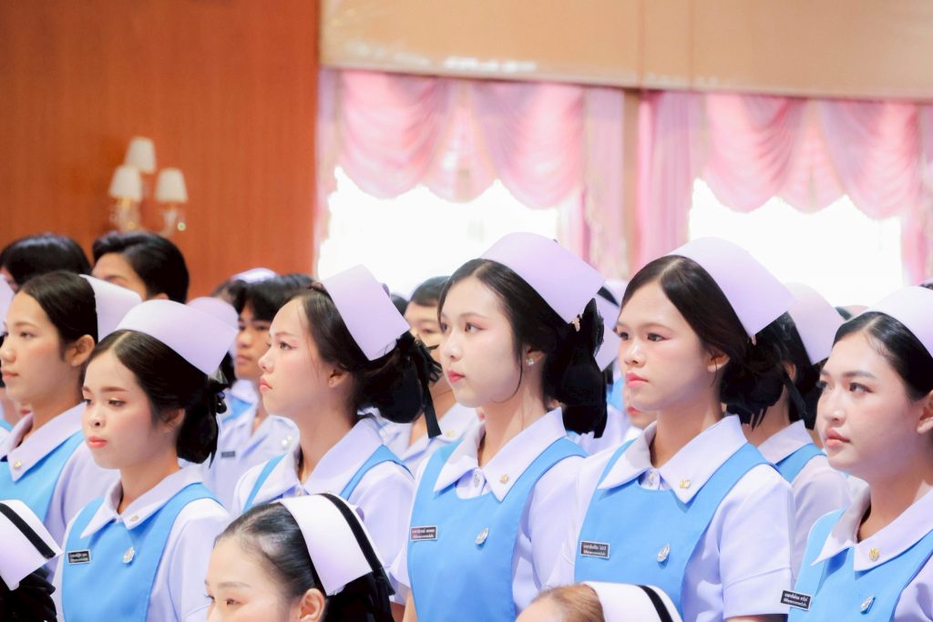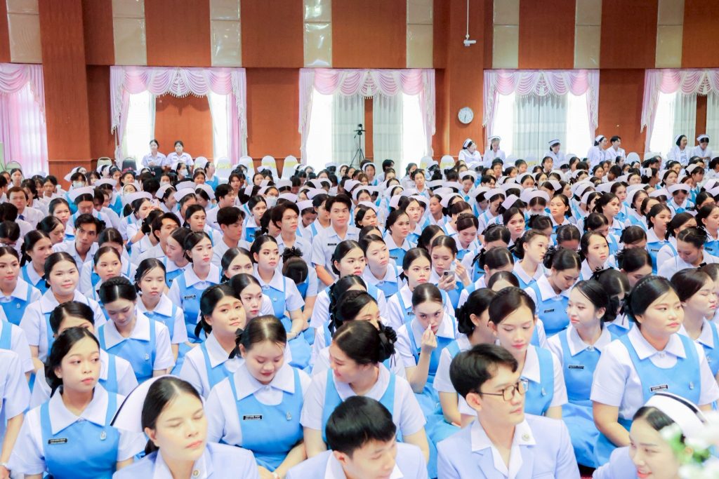 พิธีเลื่อนชั้นมอบหมวกและเข็มชั้นปี เพื่อแสดงการเลื่อนชั้นปีของนักศึกษาหลักสูตรพยาบาลศาสตรบัณฑิต ชั้นปีที่ 2 ถึง 4 จำนวน 352 คน