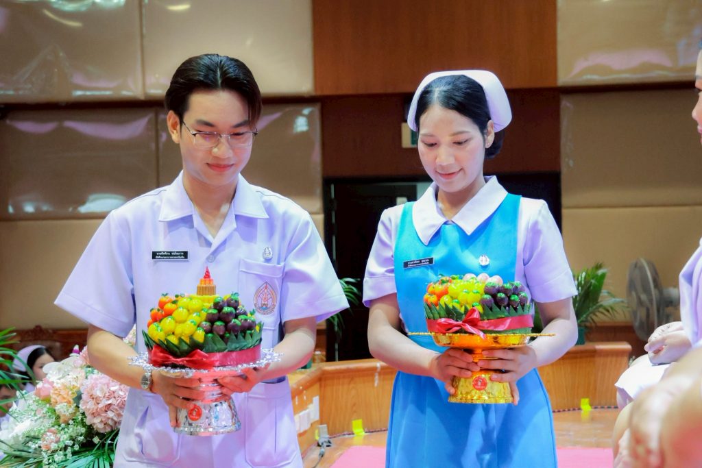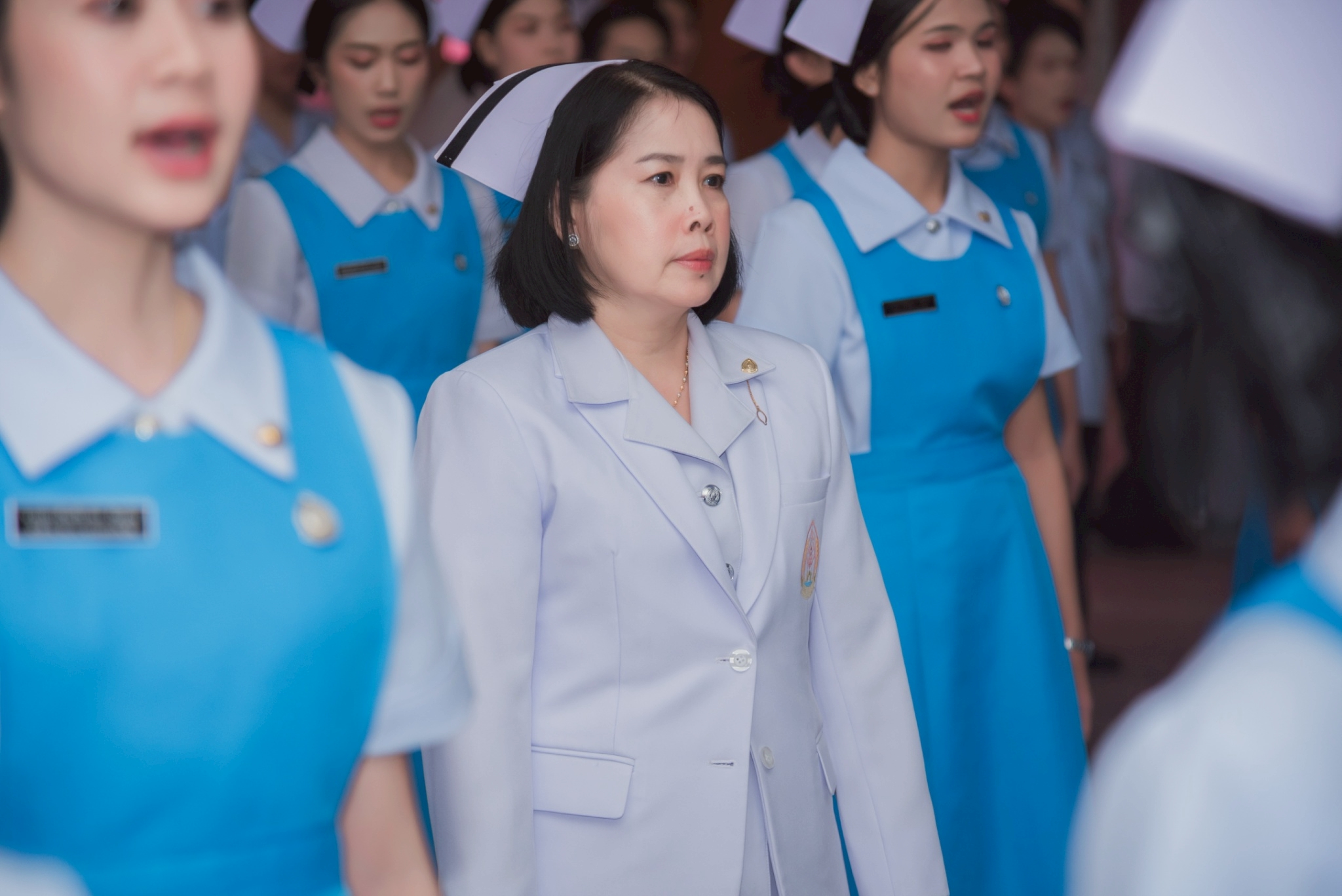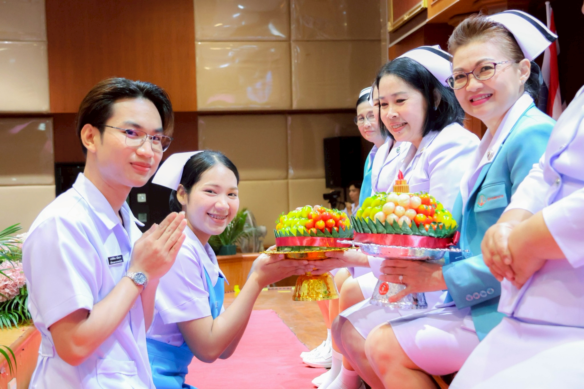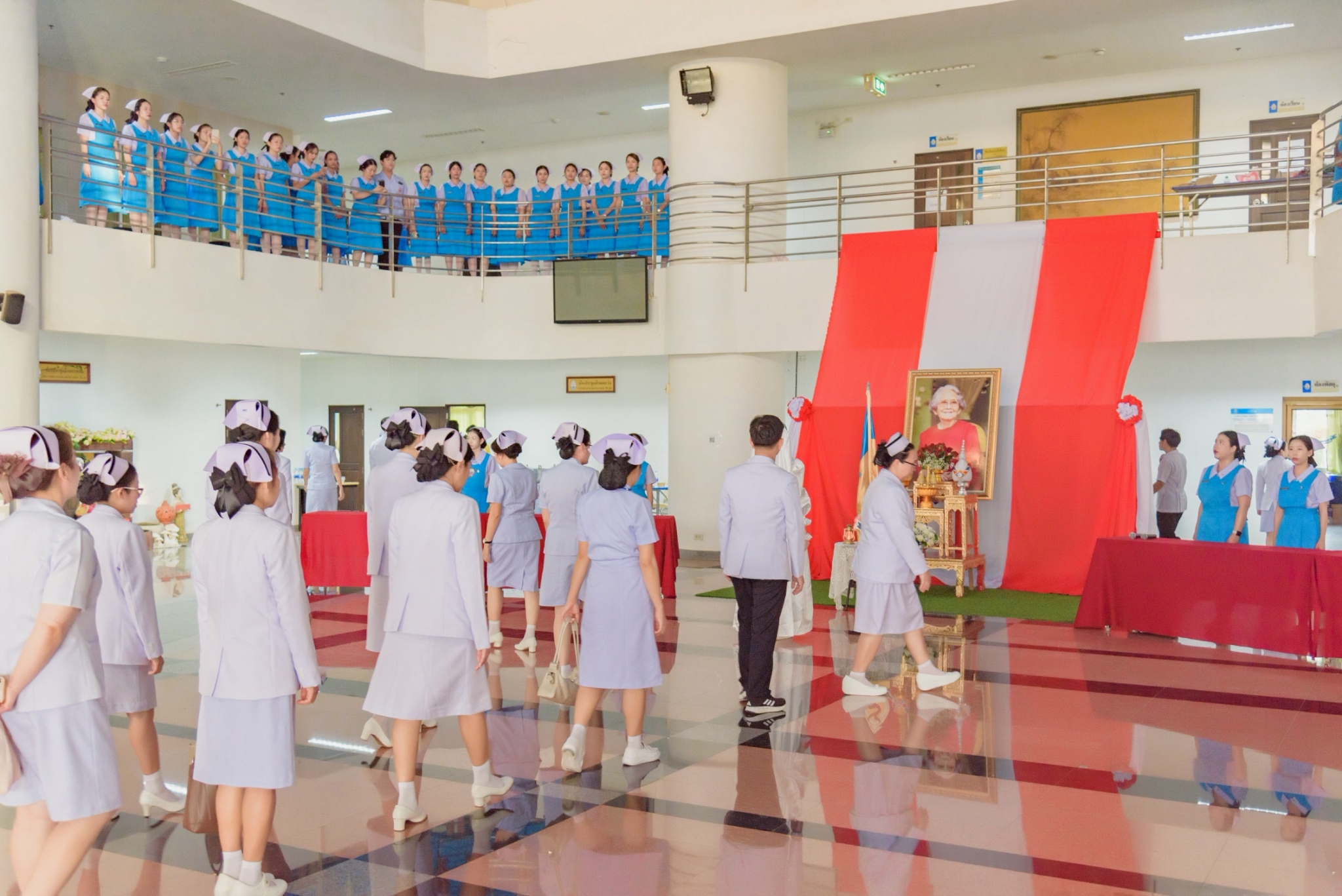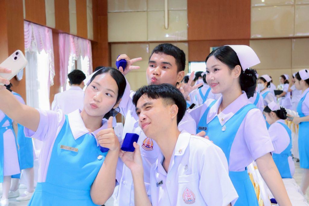 พิธีเลื่อนชั้นมอบหมวกและเข็มชั้นปี เพื่อแสดงการเลื่อนชั้นปีของนักศึกษาหลักสูตรพยาบาลศาสตรบัณฑิต ชั้นปีที่ 2 ถึง 4 จำนวน 352 คน