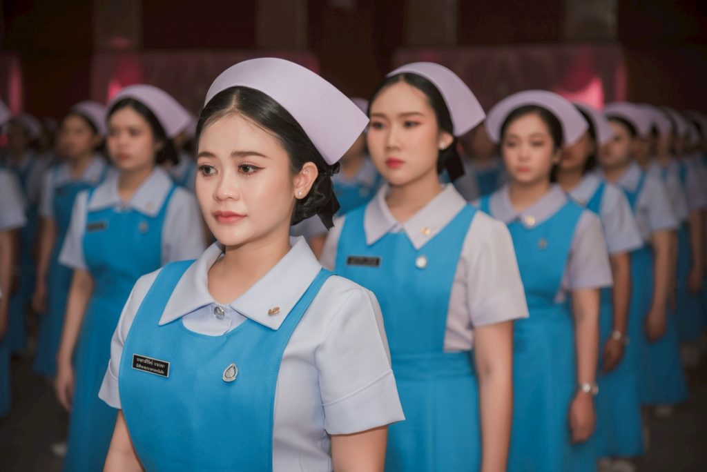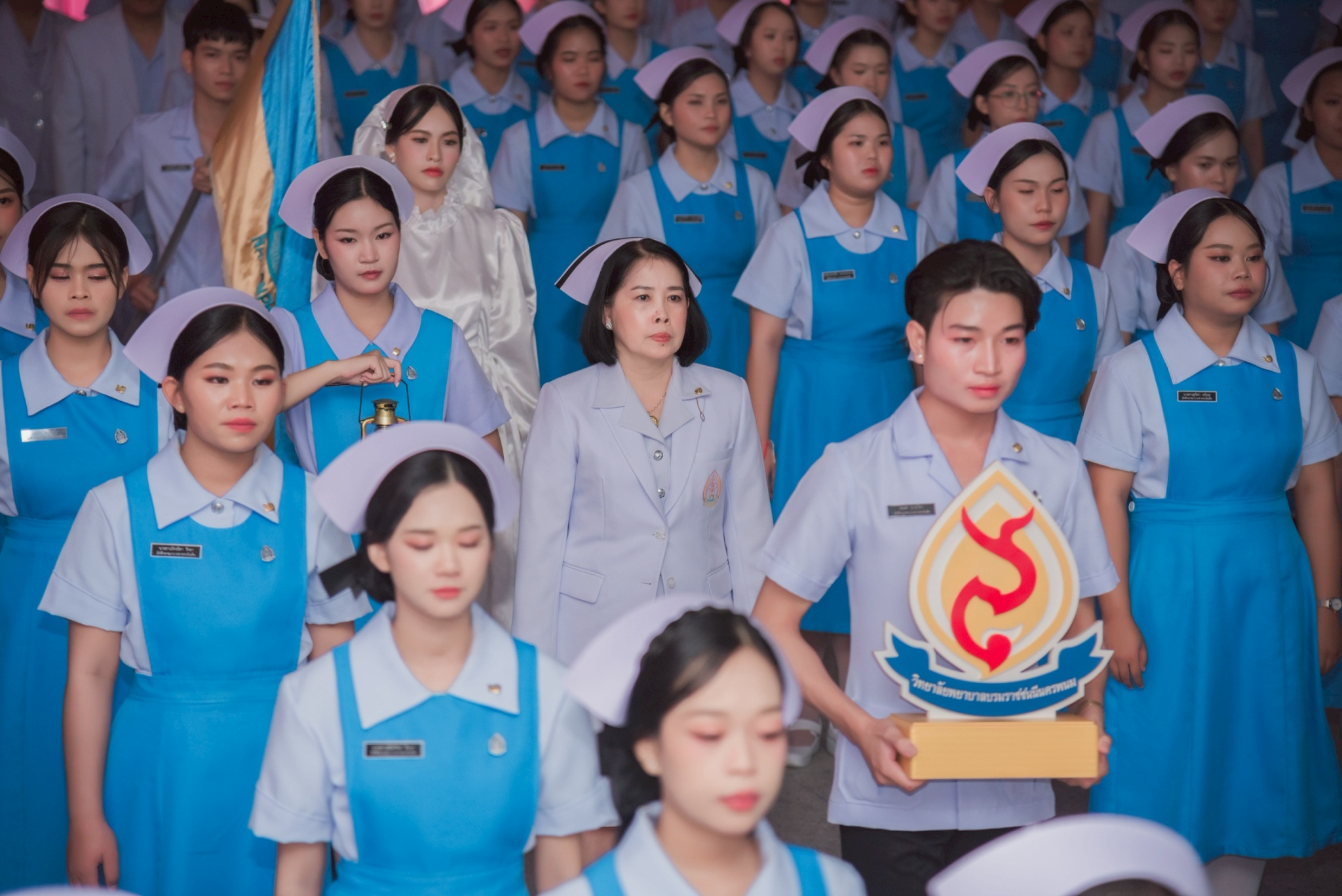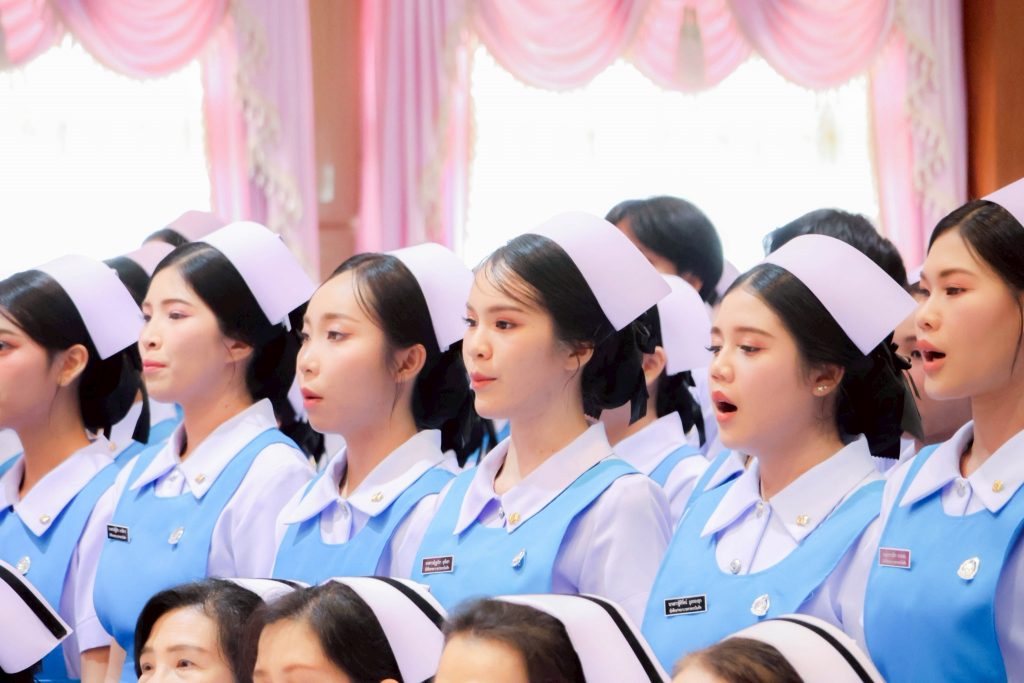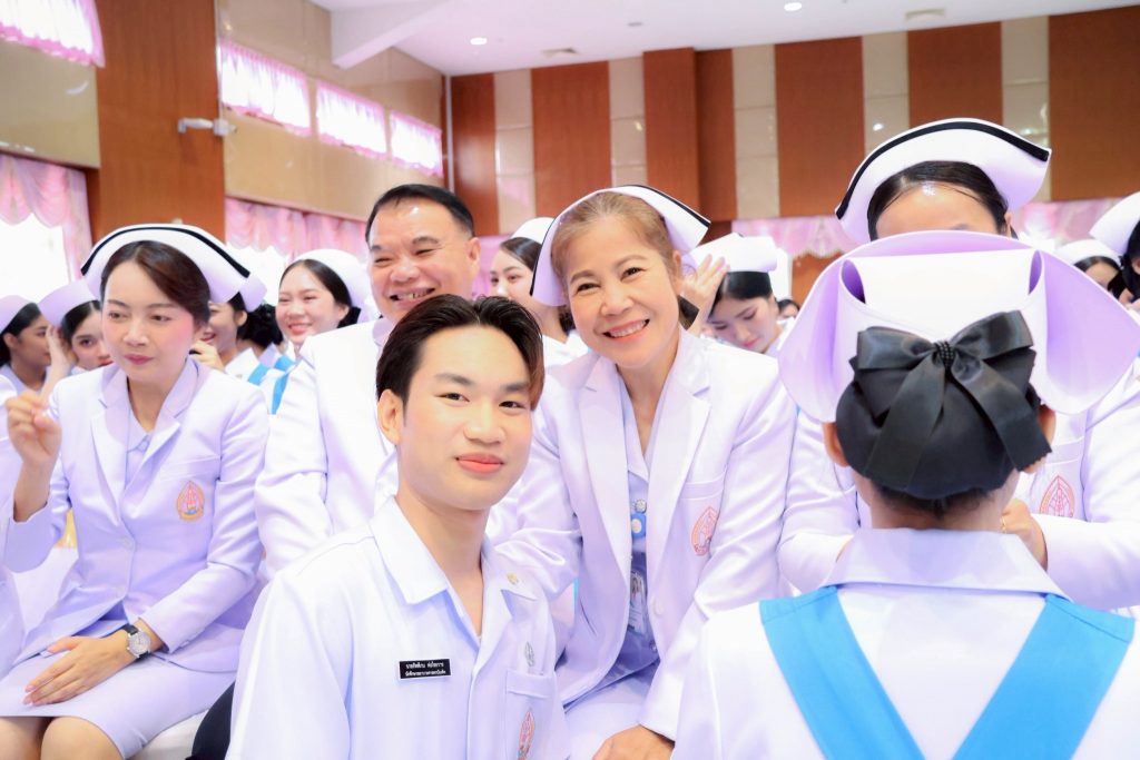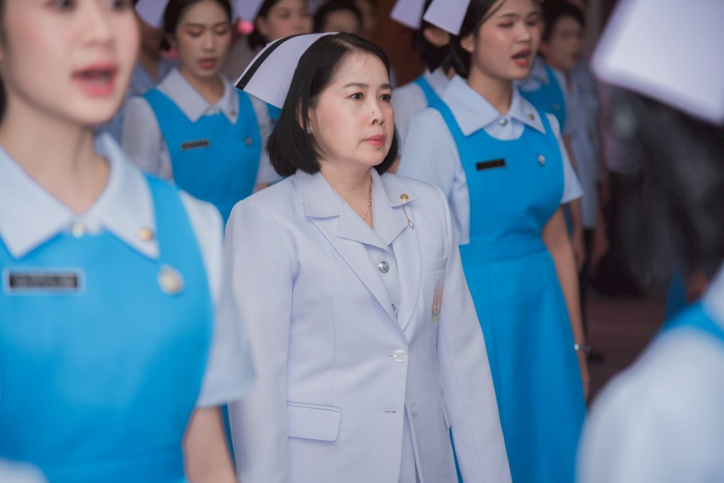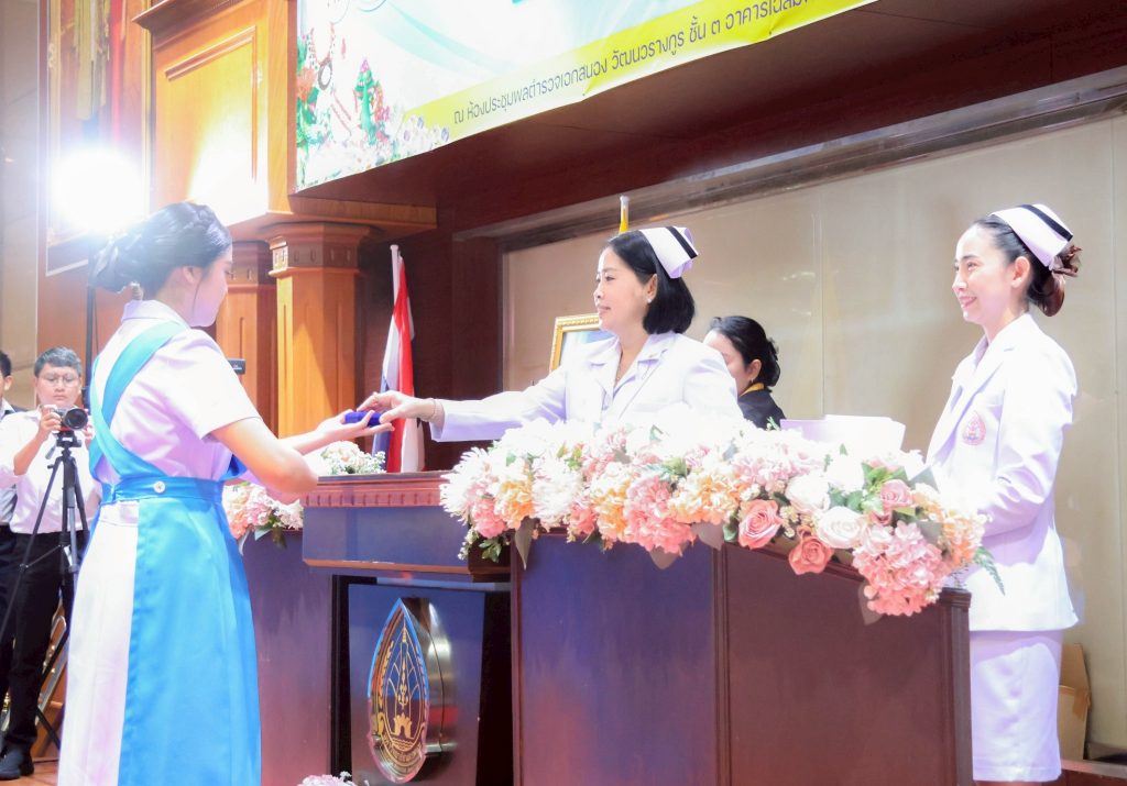 พิธีเลื่อนชั้นมอบหมวกและเข็มชั้นปี เพื่อแสดงการเลื่อนชั้นปีของนักศึกษาหลักสูตรพยาบาลศาสตรบัณฑิต ชั้นปีที่ 2 ถึง 4 จำนวน 352 คน