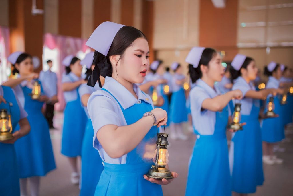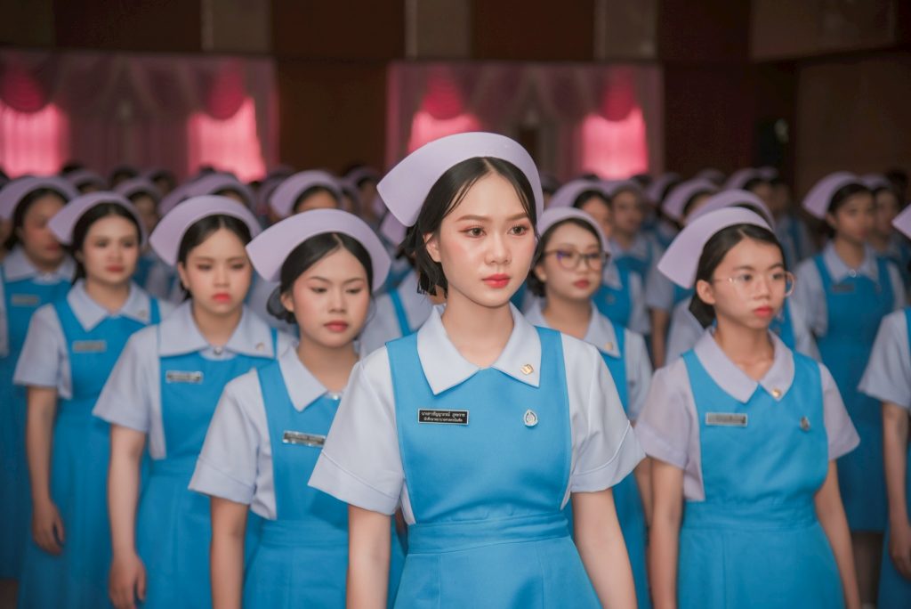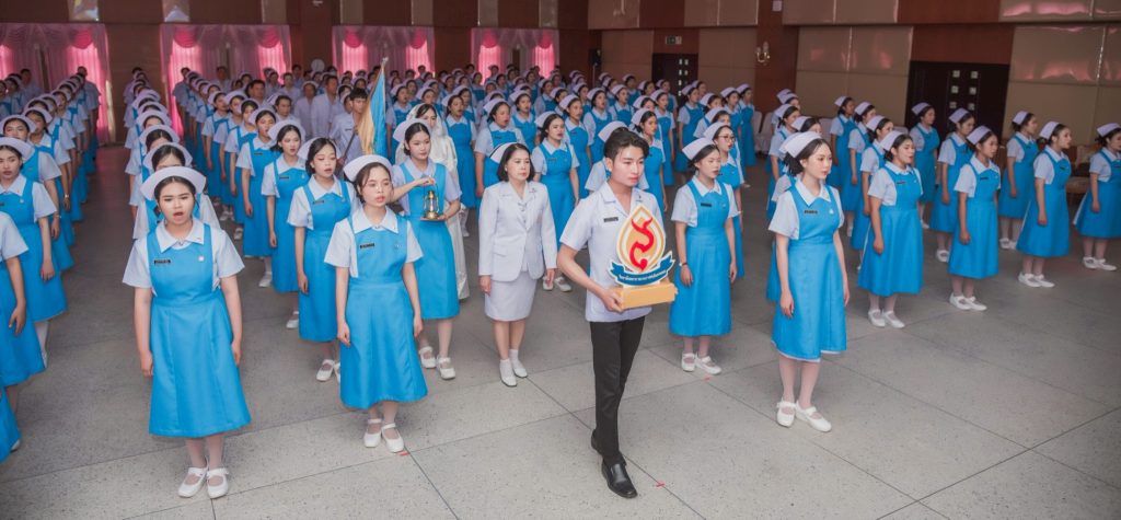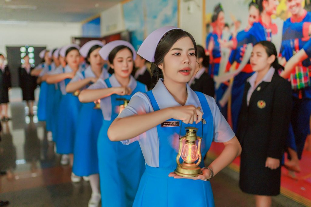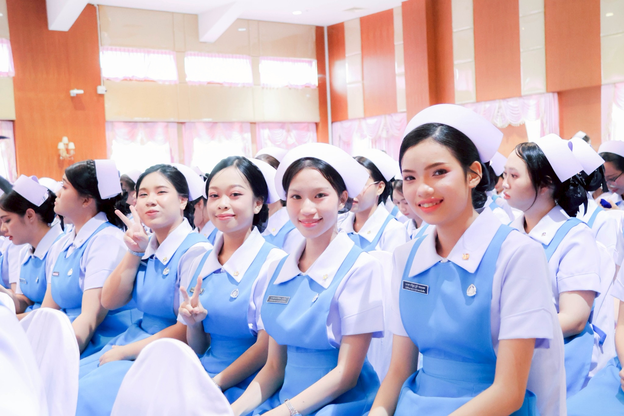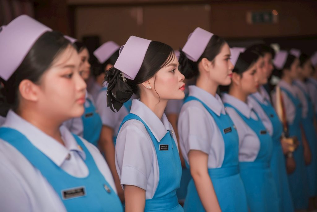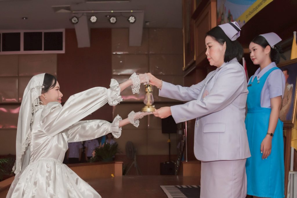 พิธีเลื่อนชั้นมอบหมวกและเข็มชั้นปี เพื่อแสดงการเลื่อนชั้นปีของนักศึกษาหลักสูตรพยาบาลศาสตรบัณฑิต ชั้นปีที่ 2 ถึง 4 จำนวน 352 คน
