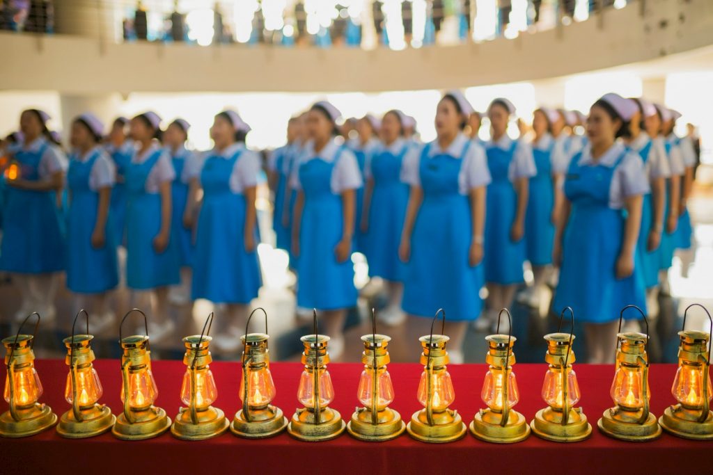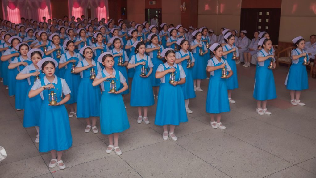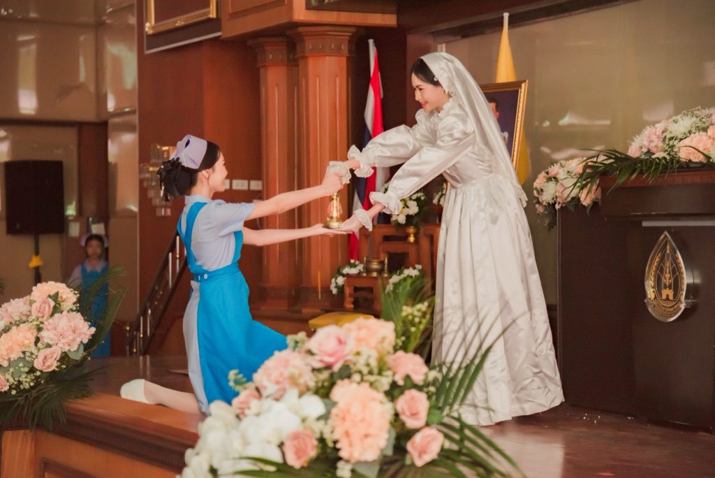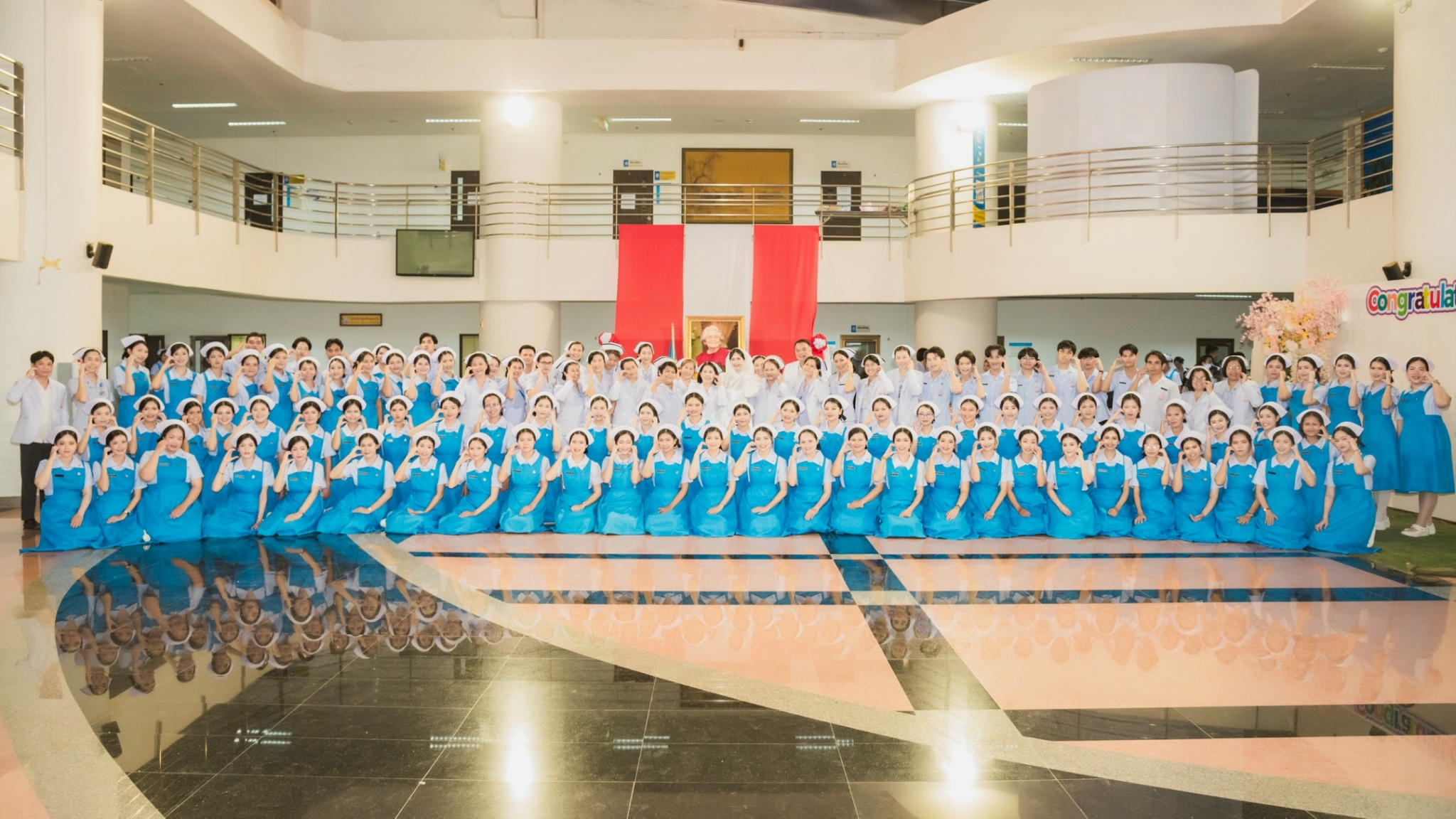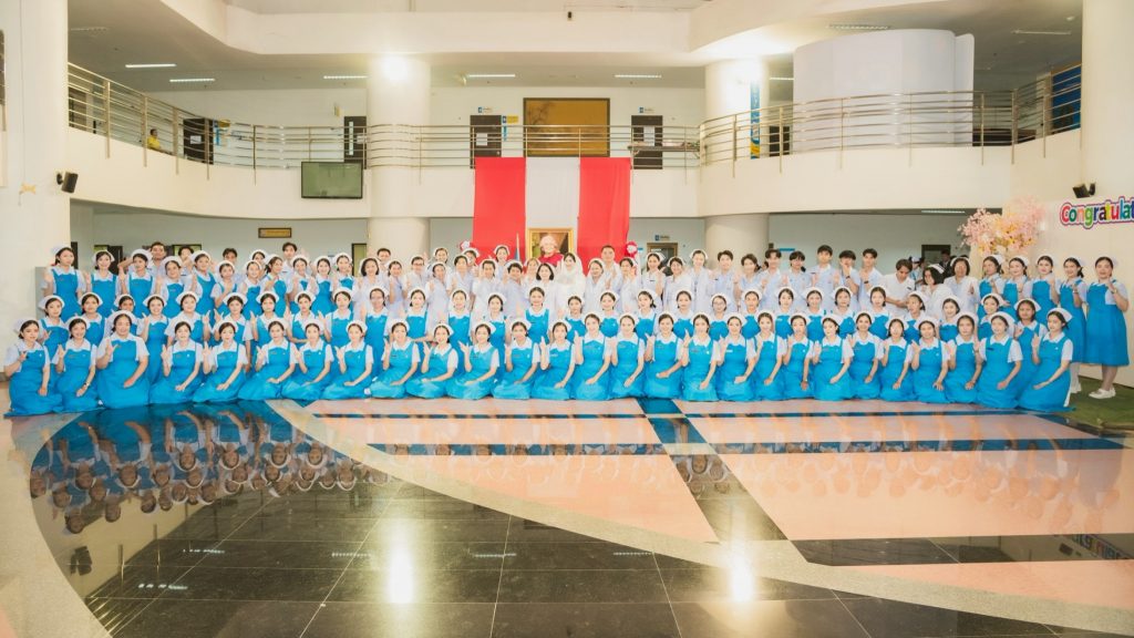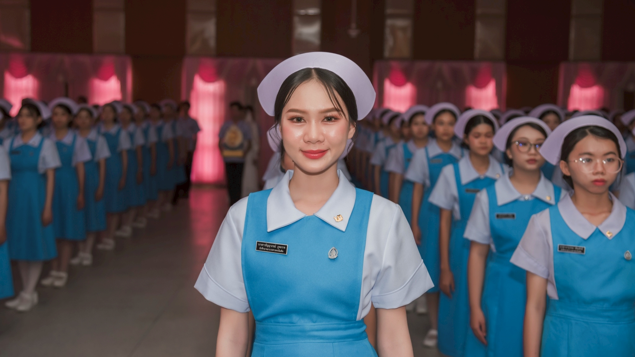 พิธีเลื่อนชั้นมอบหมวกและเข็มชั้นปี เพื่อแสดงการเลื่อนชั้นปีของนักศึกษาหลักสูตรพยาบาลศาสตรบัณฑิต ชั้นปีที่ 2 ถึง 4 จำนวน 352 คน