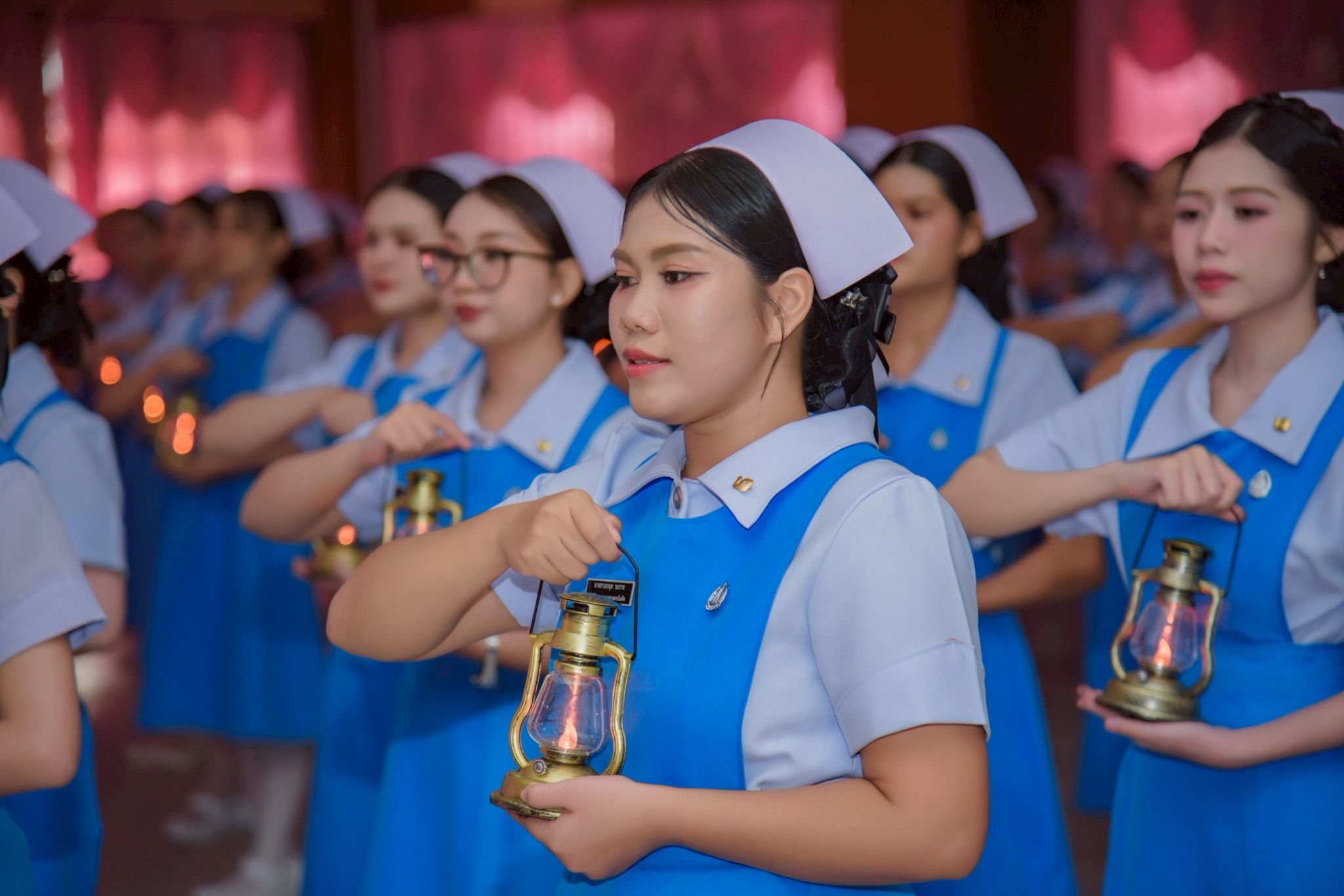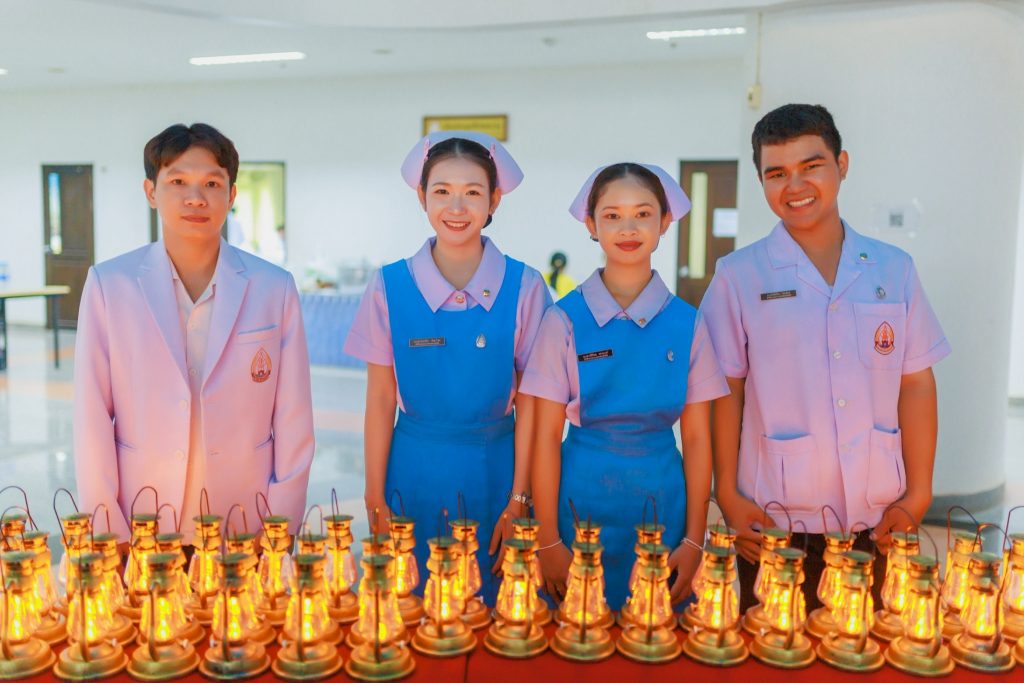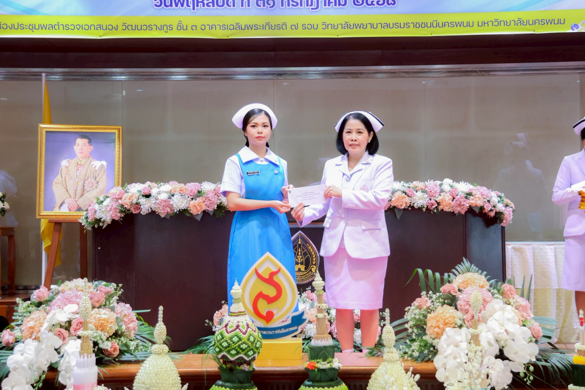 และช่วงเย็น ได้มีการจัดพิธีมอบดวงประทีป แก่นักศึกษาหลักสูตรพยาบาลศาสตรบัณฑิต ชั้นปีที่ 2 รุ่นที่ 32 และพิธีอันเชิญดวงประทีปสักการะพระราชานุสาวรีย์ สมเด็จพระศรีนครินทราบรมราชชนนี (จำลอง) ประจำปีการศึกษา 2568 โดยมีดร.สุปราณี สิทธิกานต์ คณบดีวิทยาลัยพยาบาลบรมราชชนนีนครพนม มหาวิทยาลัยนครพนม เป็นประธานในพิธี และเป็นผู้มอบตะเกียงให้แก่ตัวแทนนักศึกษา ซึ่งมีคณะผู้บริหาร คณาจารย์ บุคลากร เจ้าหน้าที่ และนักศึกษาเข้าร่วม โดยการจัดพิธีพิธีฯ ในครั้งนี้เป็นสัญลักษณ์ของความเมตตา กรุณา และเอื้อเฟื้อเผื่อแผ่ ซึ่งได้จัดขึ้นเพื่อระลึกถึงมิสฟลอเรนซ์ ไนติงเกล ผู้ซึ่งได้รับการขนานนามว่าเป็น “สุภาพสตรีแห่งดวงประทีป” (Lady of the Lamp) อีกทั้งเป็นผู้บุกเบิกด้านพยาบาลศาสตร์ยุคใหม่ เพื่อสร้างขวัญและกำลังใจแก่นักศึกษาที่กำลังก้าวเข้าสู่การเป็นพยาบาลวิชาชีพอีกขั้นที่สำคัญในมุ่งมั่นเพื่อที่จะเป็นพยาบาลรับใช้สังคมต่อไปในวันข้างหน้าอีกด้วย
