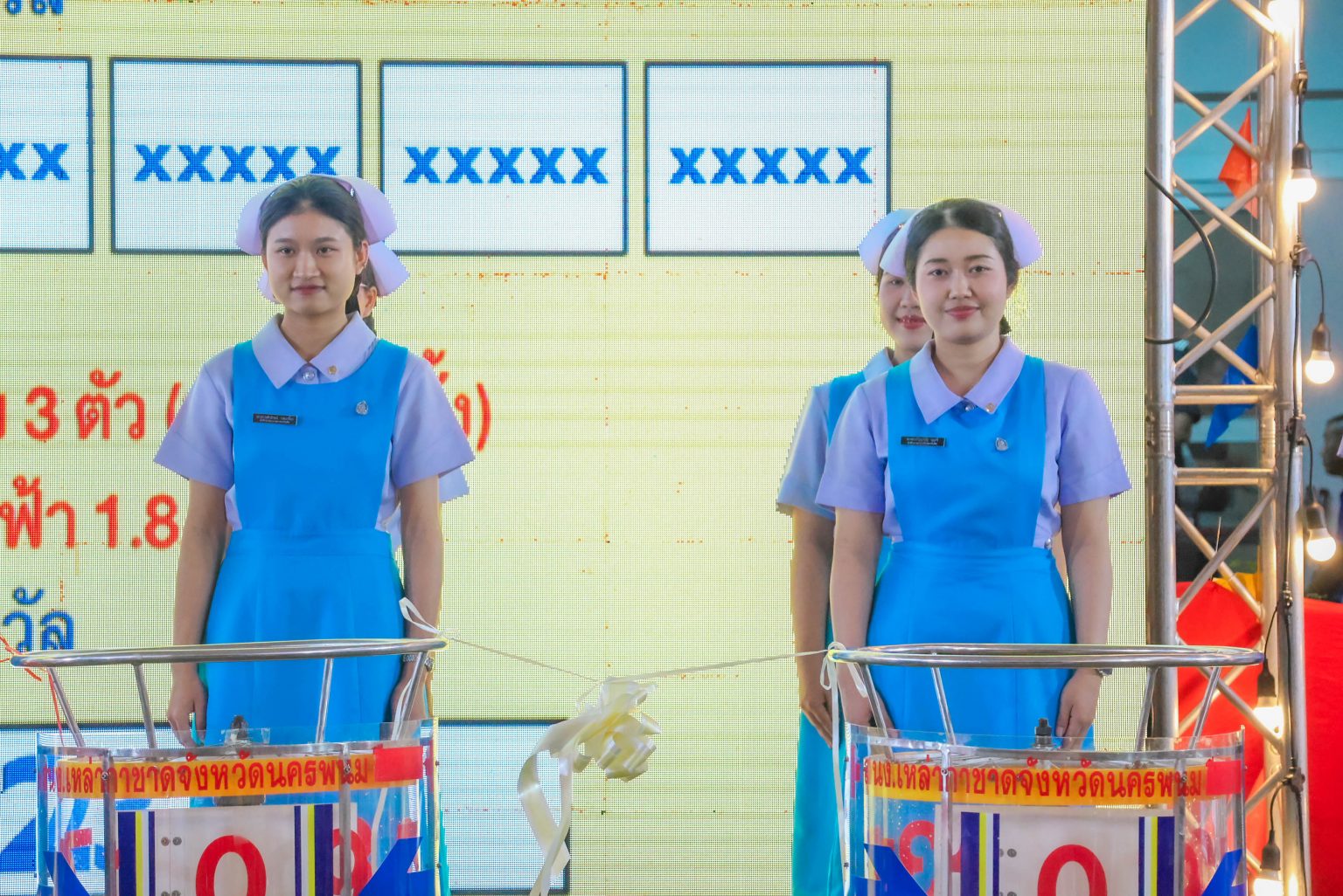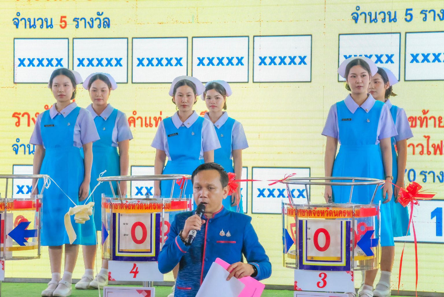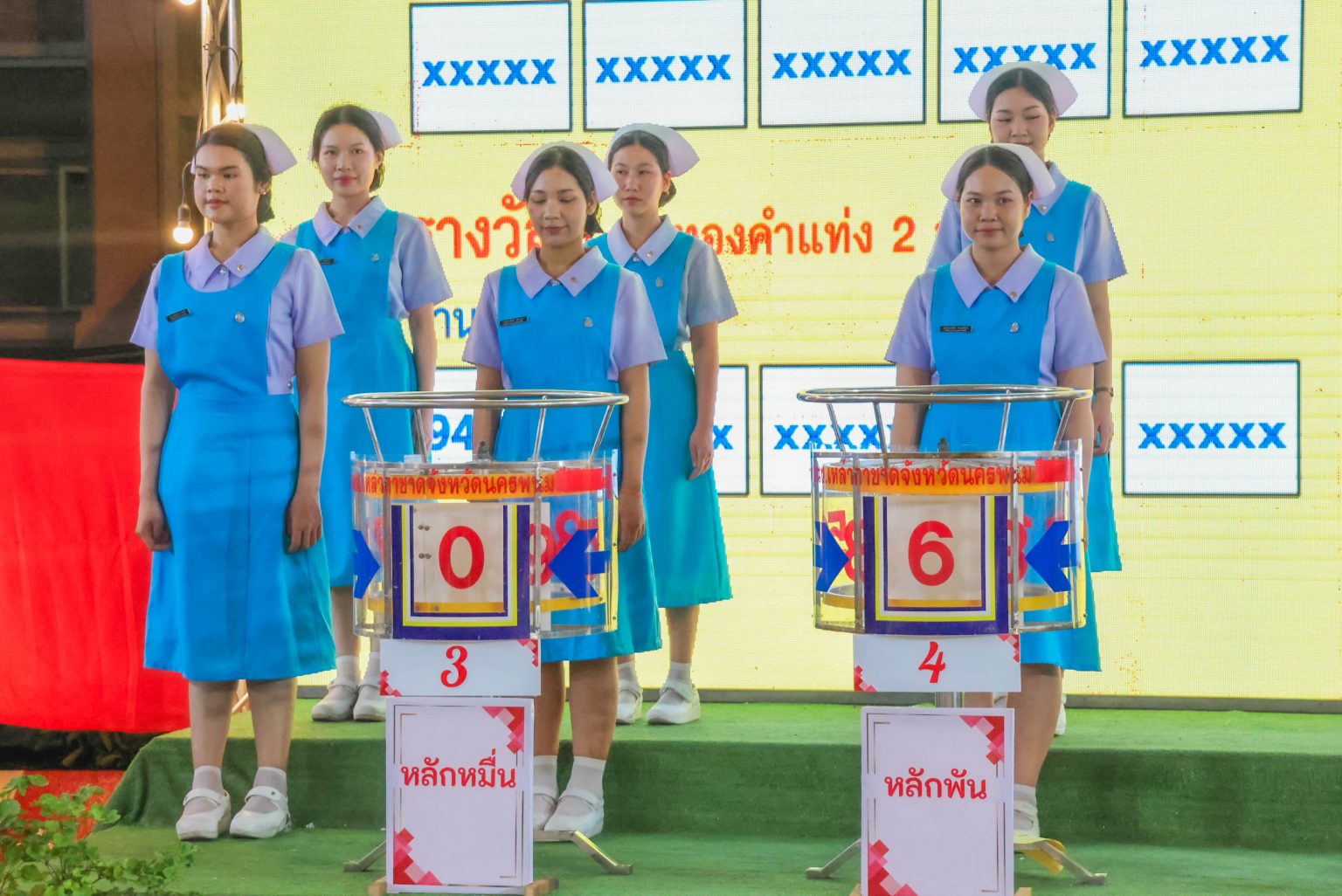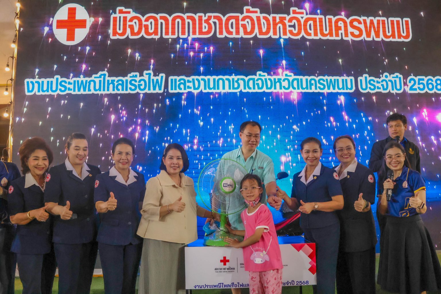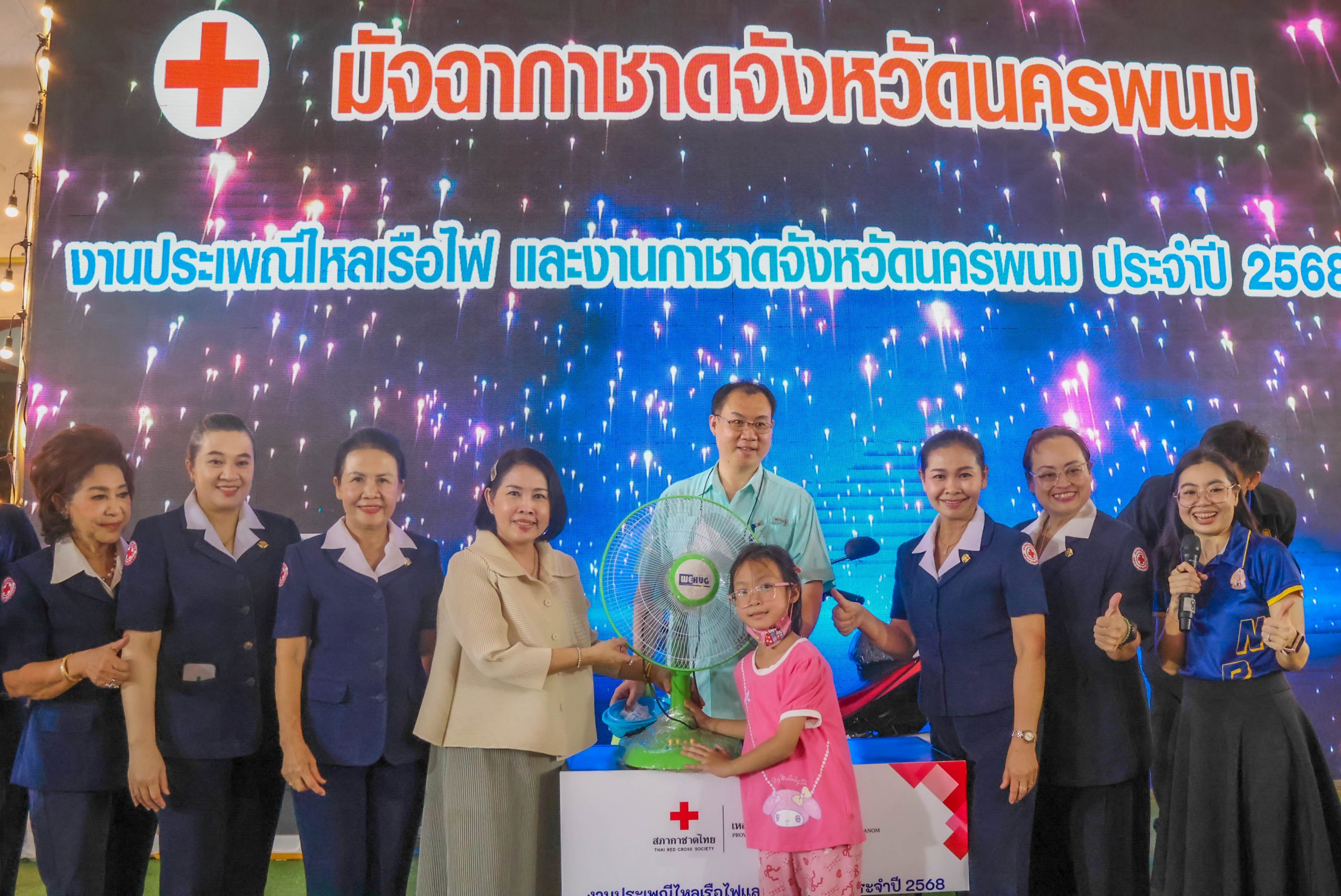 วันที่ 8 ตุลาคม 2568 ดร.สุปราณี สิทธิกานต์ คณบดีวิทยาลัยพยาบาลบรมราชชนนีนครพนม มหาวิทยาลัยนครพนม พร้อมด้วยอาจารย์ณฐมน โจมแพง ผู้ช่วยคณบดีฝ่ายกิจการพิเศษและส่งเสริมภาพลักษณ์องค์กร คณาจารย์ บุคลากร และนักศึกษา วิทยาลัยพยาบาลบรมราชชนนีนครพนม เข้าร่วมกิจกรรมหมุนวงล้อออกรางวัลสลากกาชาดการกุศลจังหวัดนครพนม ประจำปี 2568โดยมีว่าที่ร้อยตรีรวยรุ่ง ใครบุตร รองผู้ว่าราชการจังหวัดนครพนม เป็นประธานในพิธีออกรางวัล ร่วมด้วยนางพาณี พิมพนิตย์ รักษาการนายกเหล่ากาชาดจังหวัดนครพนม นางสุภาลักษณ์ ใครบุตร รองนายกเหล่ากาชาดจังหวัดนครพนม นายนันทวิทย์ นาคแสง ปลัดจังหวัดนครพนม หัวหน้าส่วนราชการ หน่วยงานภาครัฐ ภาคเอกชน และประชาชนร่วมเป็นสักขีพยาน ท่ามกลางบรรยากาศคึกคัก ณ เวทีร้านมัจฉากาชาด บริเวณหน้าศาลากลางจังหวัดนครพนม ในงานประเพณีไหลเรือไฟและงานกาชาดจังหวัดนครพนม ซึ่งจัดขึ้นระหว่างวันที่ 27 กันยายน – 8 ตุลาคม 2568
