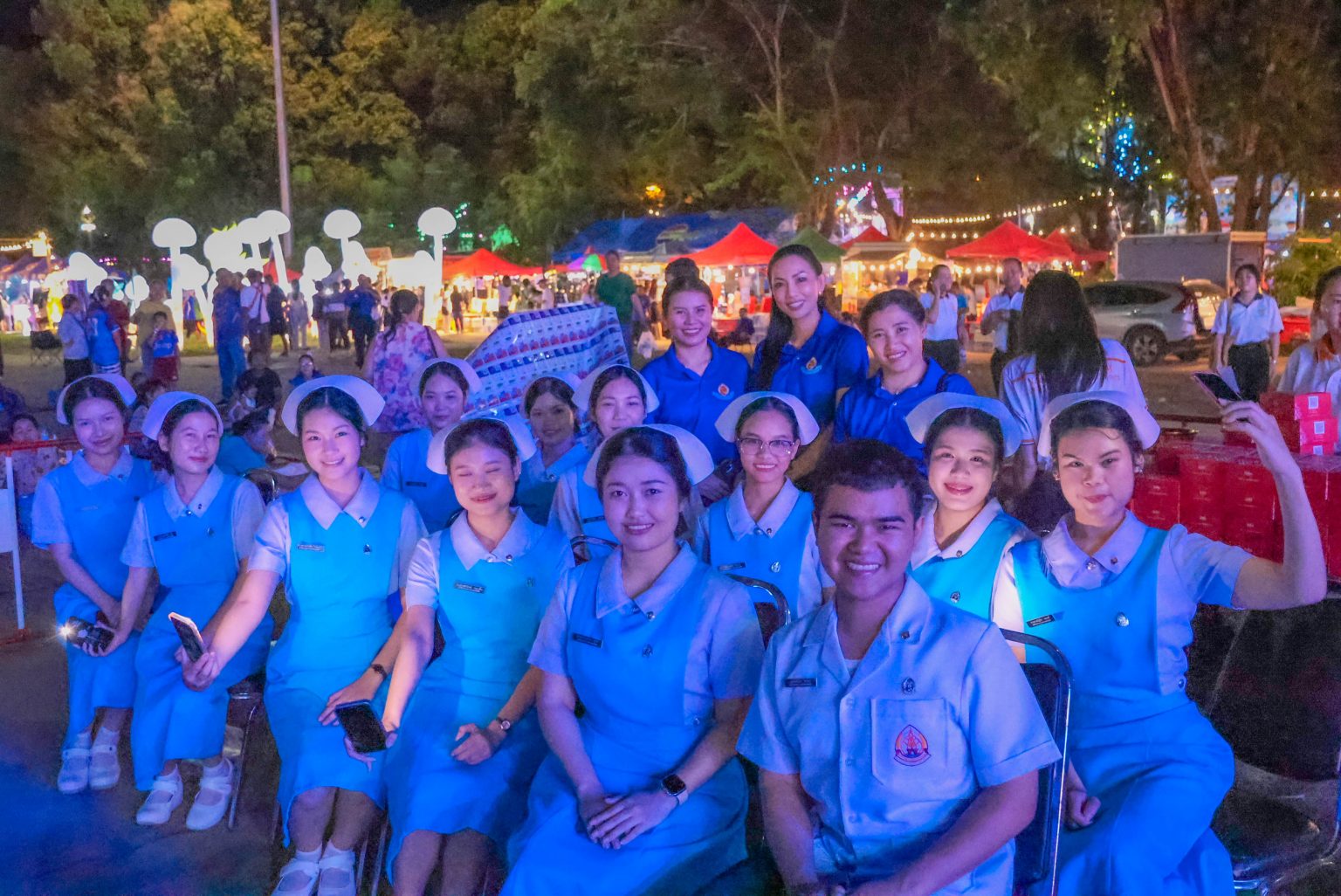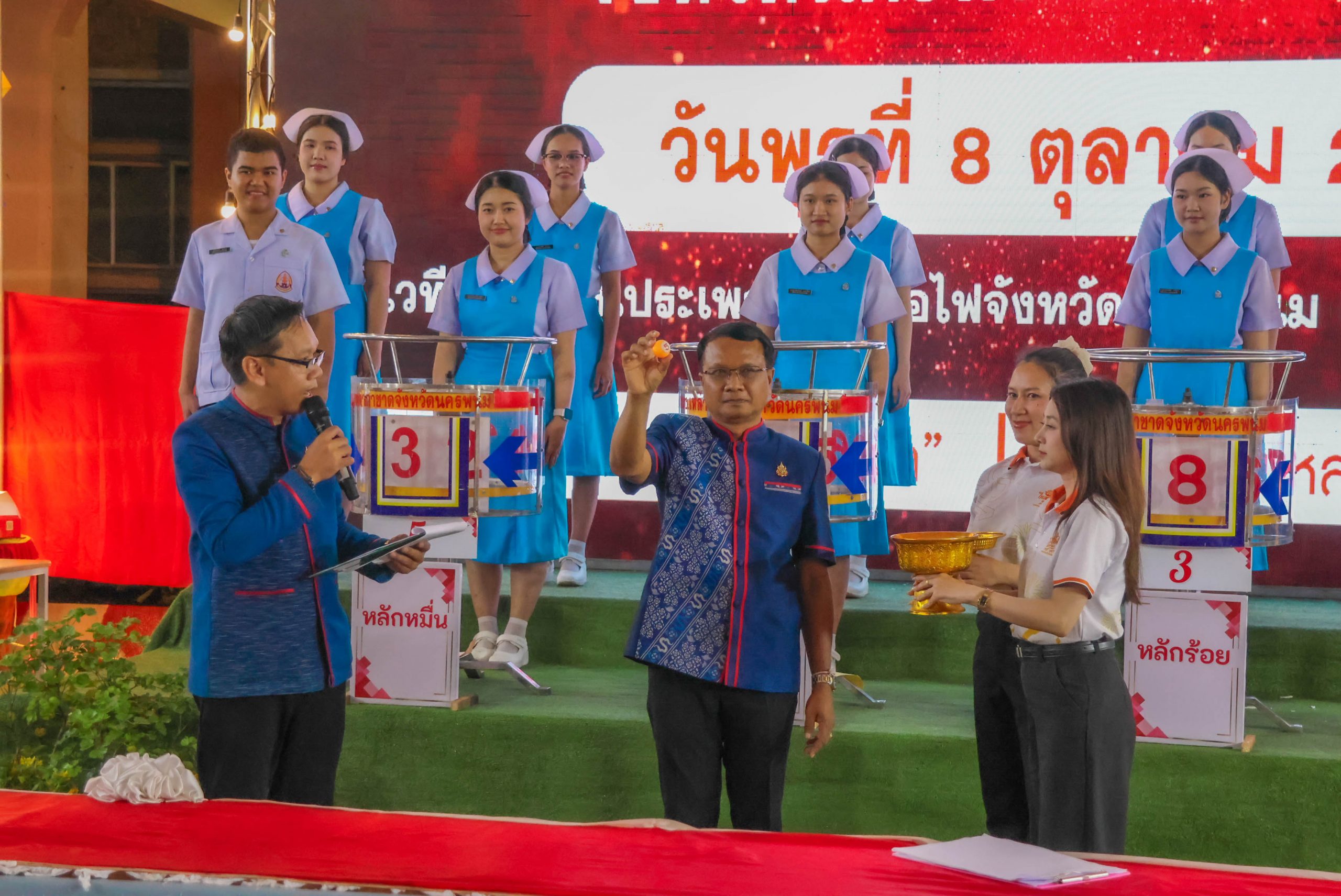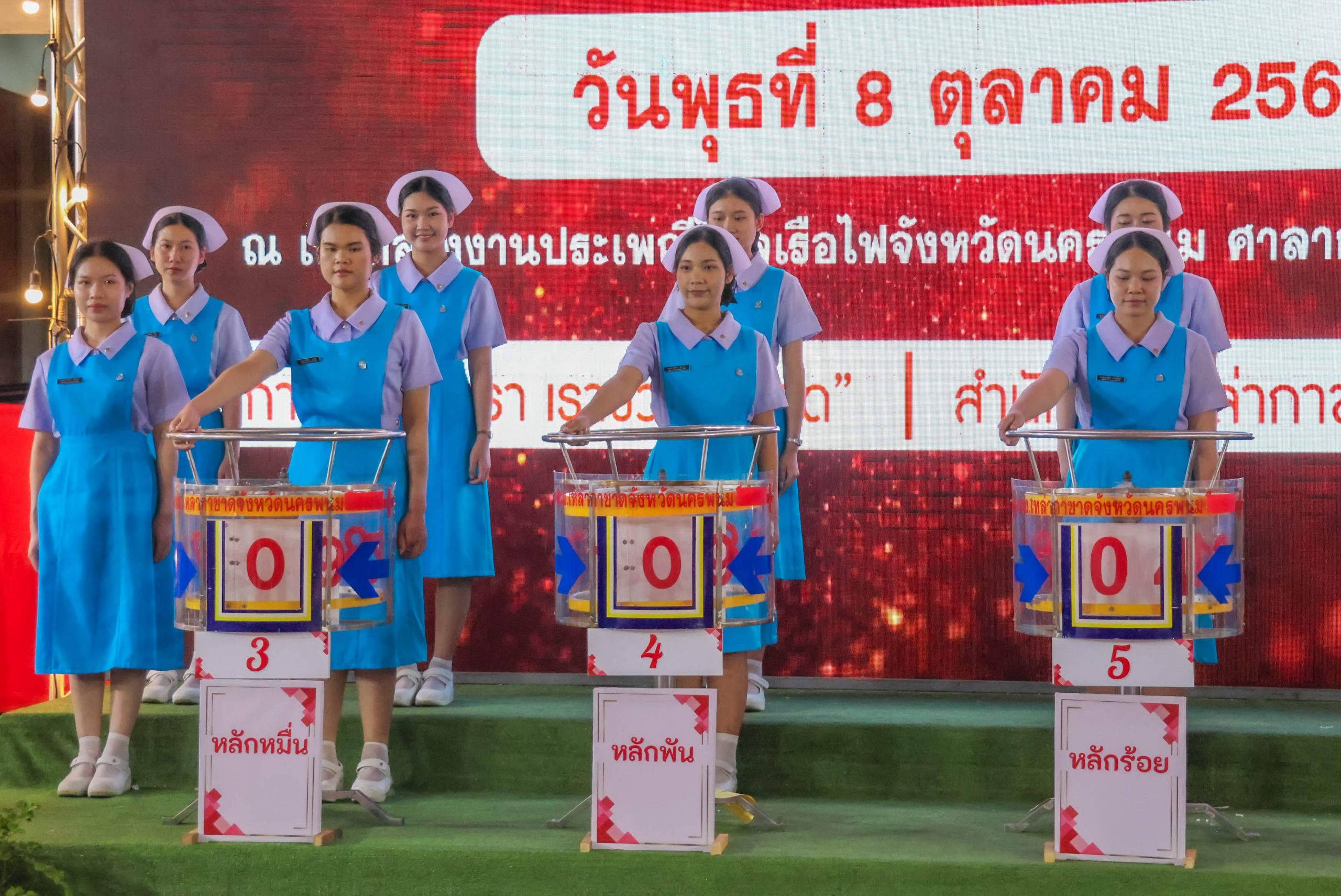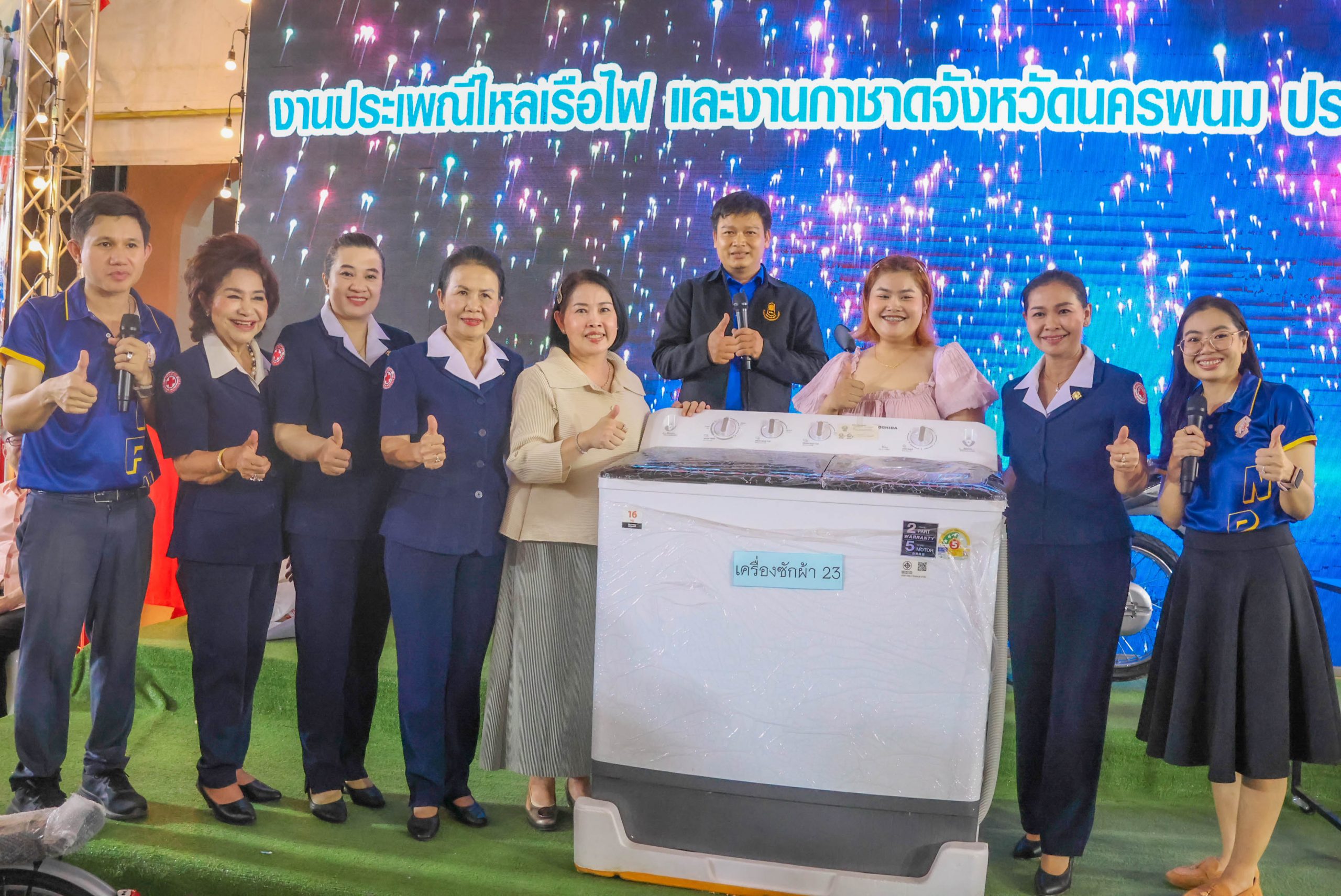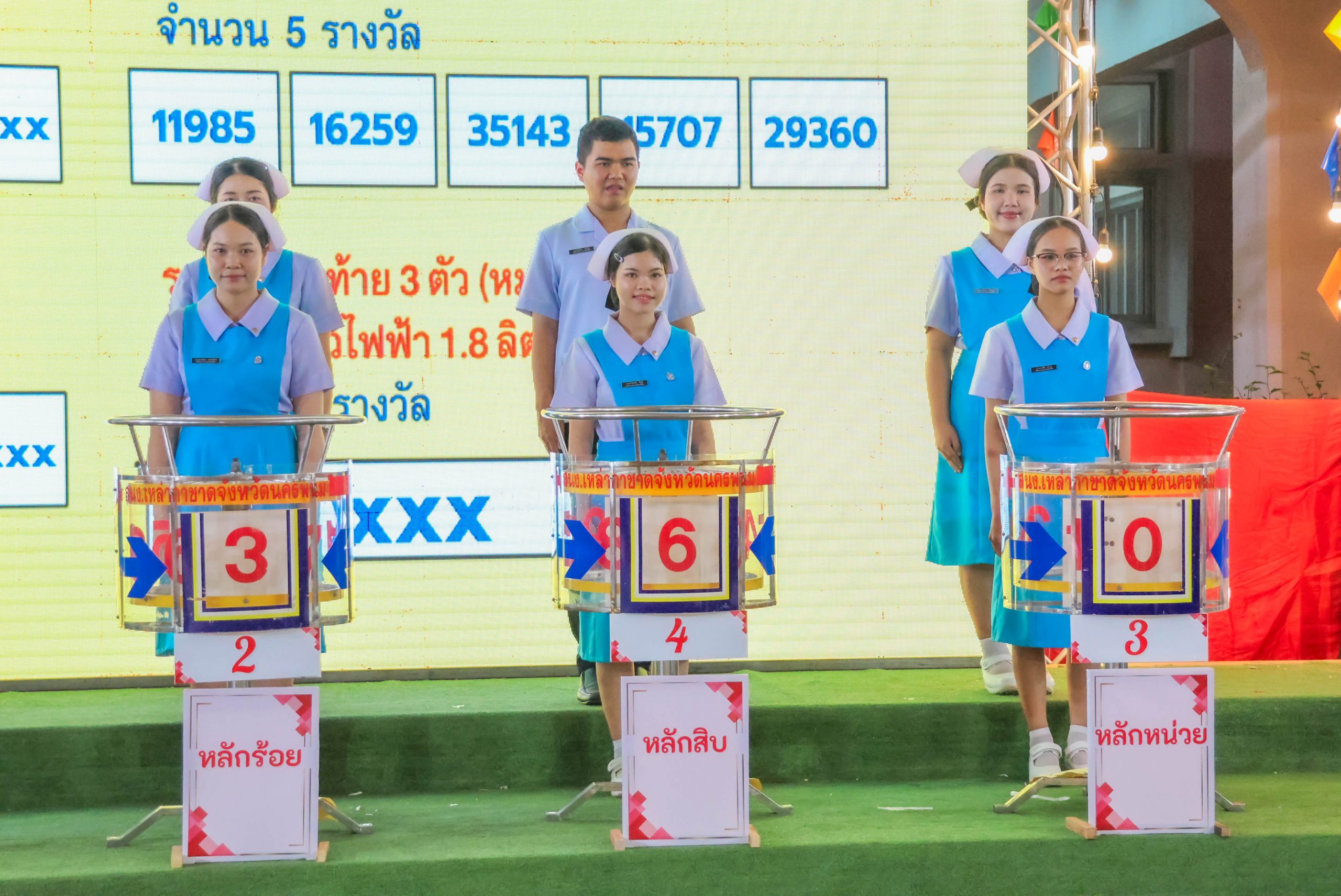 วันที่ 8 ตุลาคม 2568 ดร.สุปราณี สิทธิกานต์ คณบดีวิทยาลัยพยาบาลบรมราชชนนีนครพนม มหาวิทยาลัยนครพนม พร้อมด้วยอาจารย์ณฐมน โจมแพง ผู้ช่วยคณบดีฝ่ายกิจการพิเศษและส่งเสริมภาพลักษณ์องค์กร คณาจารย์ บุคลากร และนักศึกษา วิทยาลัยพยาบาลบรมราชชนนีนครพนม เข้าร่วมกิจกรรมหมุนวงล้อออกรางวัลสลากกาชาดการกุศลจังหวัดนครพนม ประจำปี 2568โดยมีว่าที่ร้อยตรีรวยรุ่ง ใครบุตร รองผู้ว่าราชการจังหวัดนครพนม เป็นประธานในพิธีออกรางวัล ร่วมด้วยนางพาณี พิมพนิตย์ รักษาการนายกเหล่ากาชาดจังหวัดนครพนม นางสุภาลักษณ์ ใครบุตร รองนายกเหล่ากาชาดจังหวัดนครพนม นายนันทวิทย์ นาคแสง ปลัดจังหวัดนครพนม หัวหน้าส่วนราชการ หน่วยงานภาครัฐ ภาคเอกชน และประชาชนร่วมเป็นสักขีพยาน ท่ามกลางบรรยากาศคึกคัก ณ เวทีร้านมัจฉากาชาด บริเวณหน้าศาลากลางจังหวัดนครพนม ในงานประเพณีไหลเรือไฟและงานกาชาดจังหวัดนครพนม ซึ่งจัดขึ้นระหว่างวันที่ 27 กันยายน – 8 ตุลาคม 2568