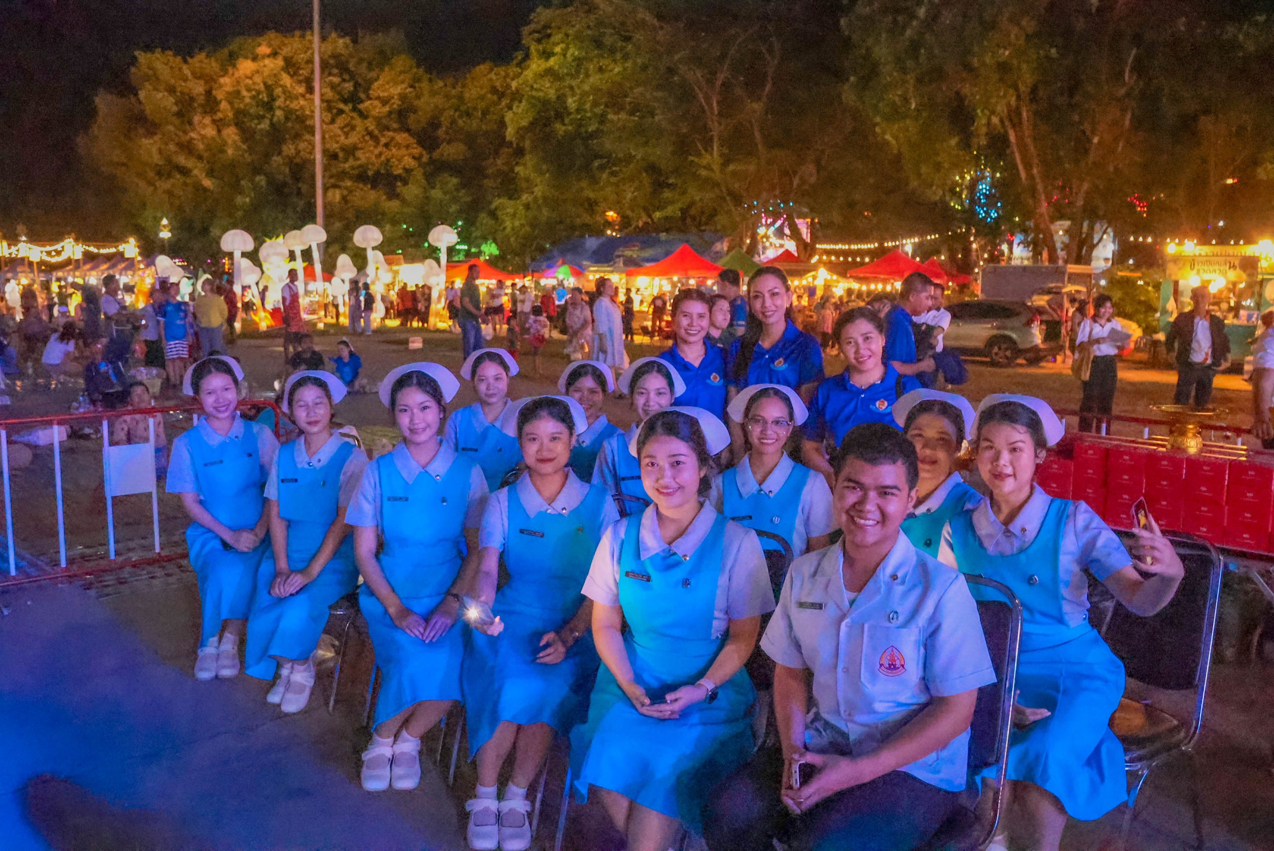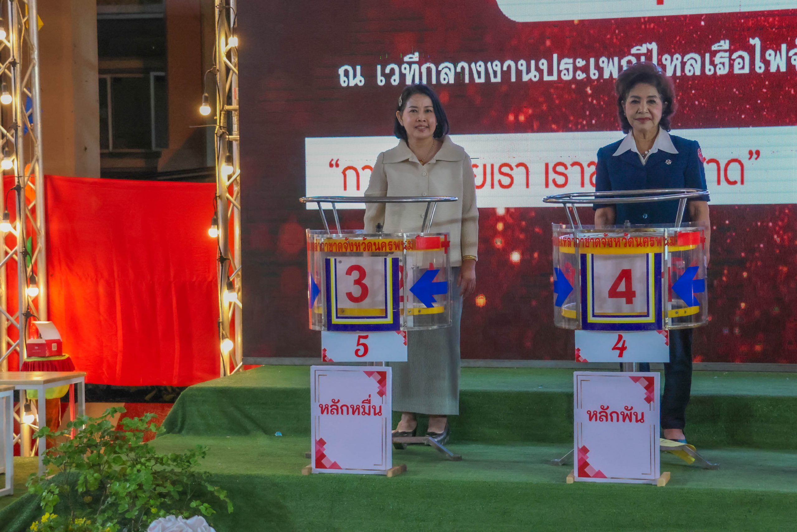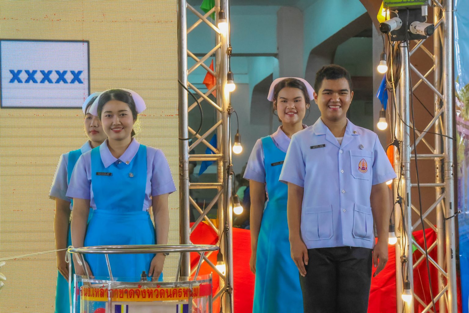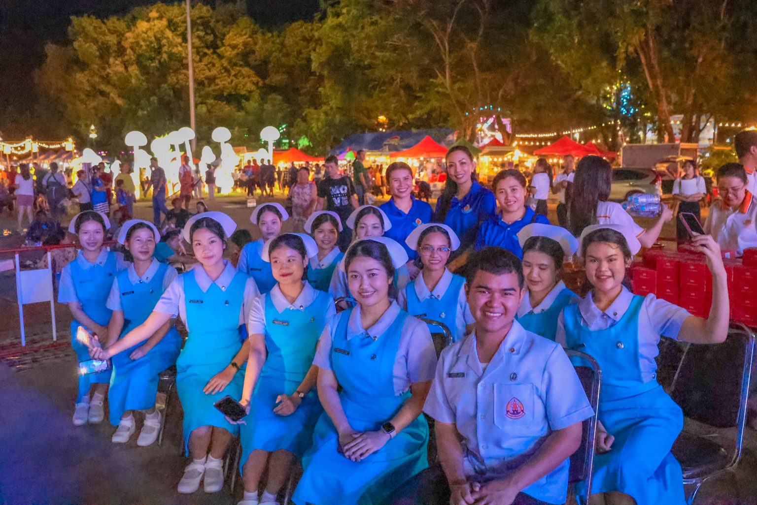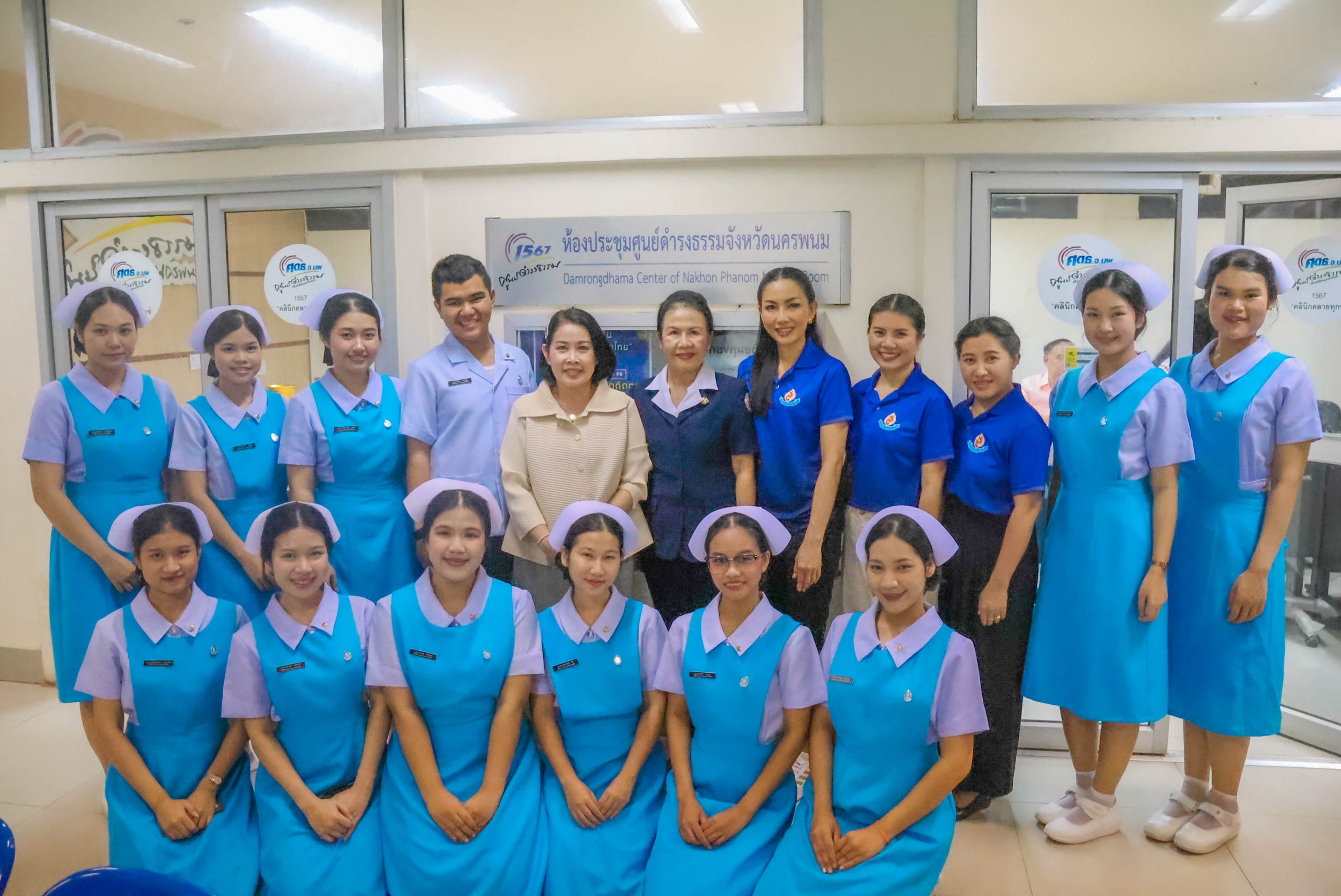 วันที่ 8 ตุลาคม 2568 ดร.สุปราณี สิทธิกานต์ คณบดีวิทยาลัยพยาบาลบรมราชชนนีนครพนม มหาวิทยาลัยนครพนม พร้อมด้วยอาจารย์ณฐมน โจมแพง ผู้ช่วยคณบดีฝ่ายกิจการพิเศษและส่งเสริมภาพลักษณ์องค์กร คณาจารย์ บุคลากร และนักศึกษา วิทยาลัยพยาบาลบรมราชชนนีนครพนม เข้าร่วมกิจกรรมหมุนวงล้อออกรางวัลสลากกาชาดการกุศลจังหวัดนครพนม ประจำปี 2568โดยมีว่าที่ร้อยตรีรวยรุ่ง ใครบุตร รองผู้ว่าราชการจังหวัดนครพนม เป็นประธานในพิธีออกรางวัล ร่วมด้วยนางพาณี พิมพนิตย์ รักษาการนายกเหล่ากาชาดจังหวัดนครพนม นางสุภาลักษณ์ ใครบุตร รองนายกเหล่ากาชาดจังหวัดนครพนม นายนันทวิทย์ นาคแสง ปลัดจังหวัดนครพนม หัวหน้าส่วนราชการ หน่วยงานภาครัฐ ภาคเอกชน และประชาชนร่วมเป็นสักขีพยาน ท่ามกลางบรรยากาศคึกคัก ณ เวทีร้านมัจฉากาชาด บริเวณหน้าศาลากลางจังหวัดนครพนม ในงานประเพณีไหลเรือไฟและงานกาชาดจังหวัดนครพนม ซึ่งจัดขึ้นระหว่างวันที่ 27 กันยายน – 8 ตุลาคม 2568