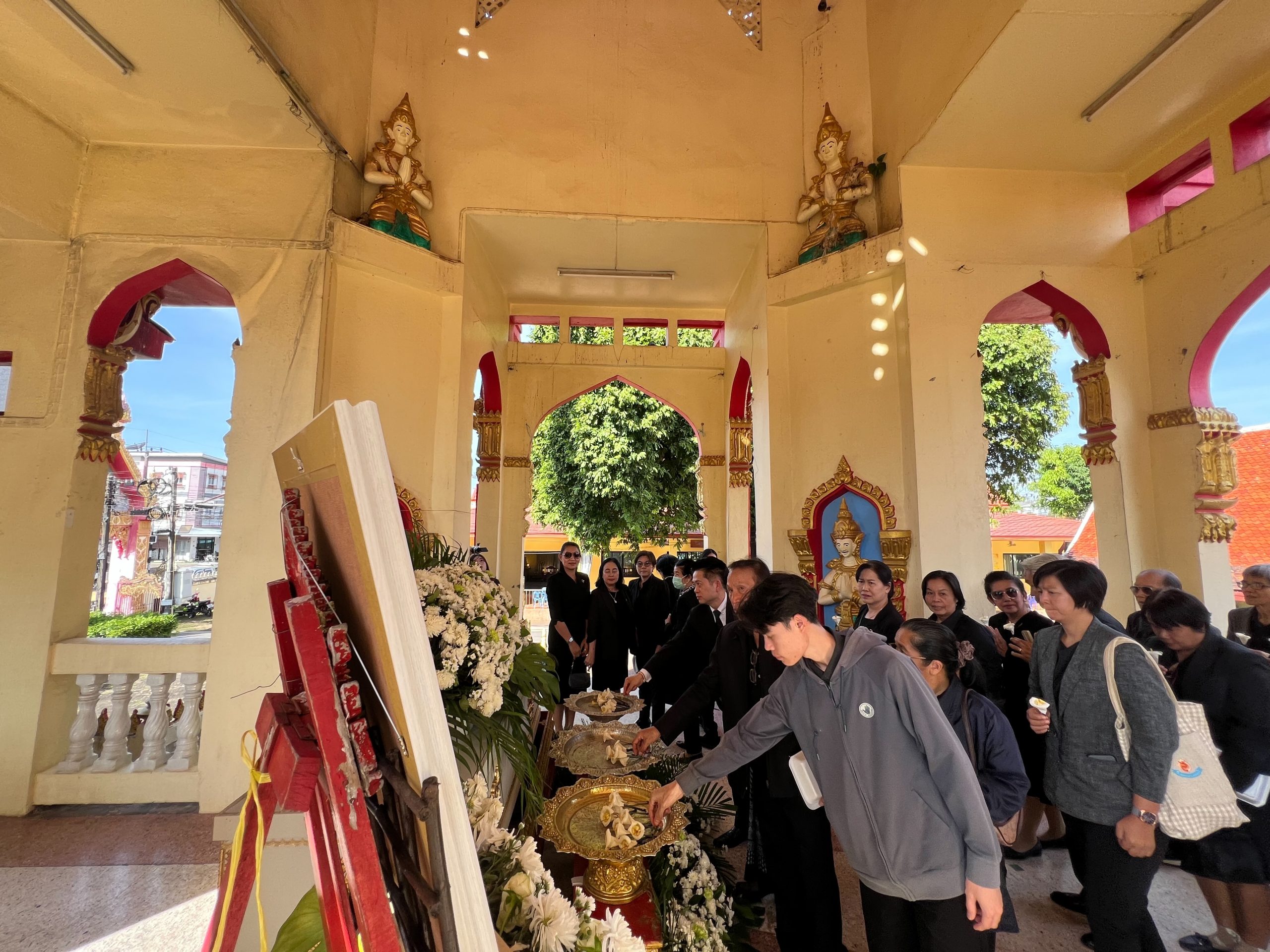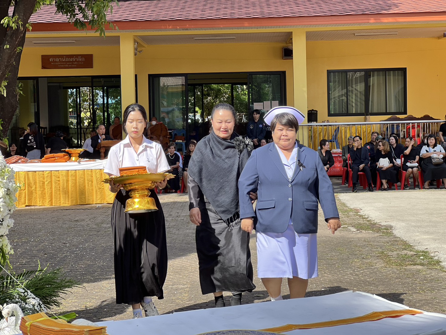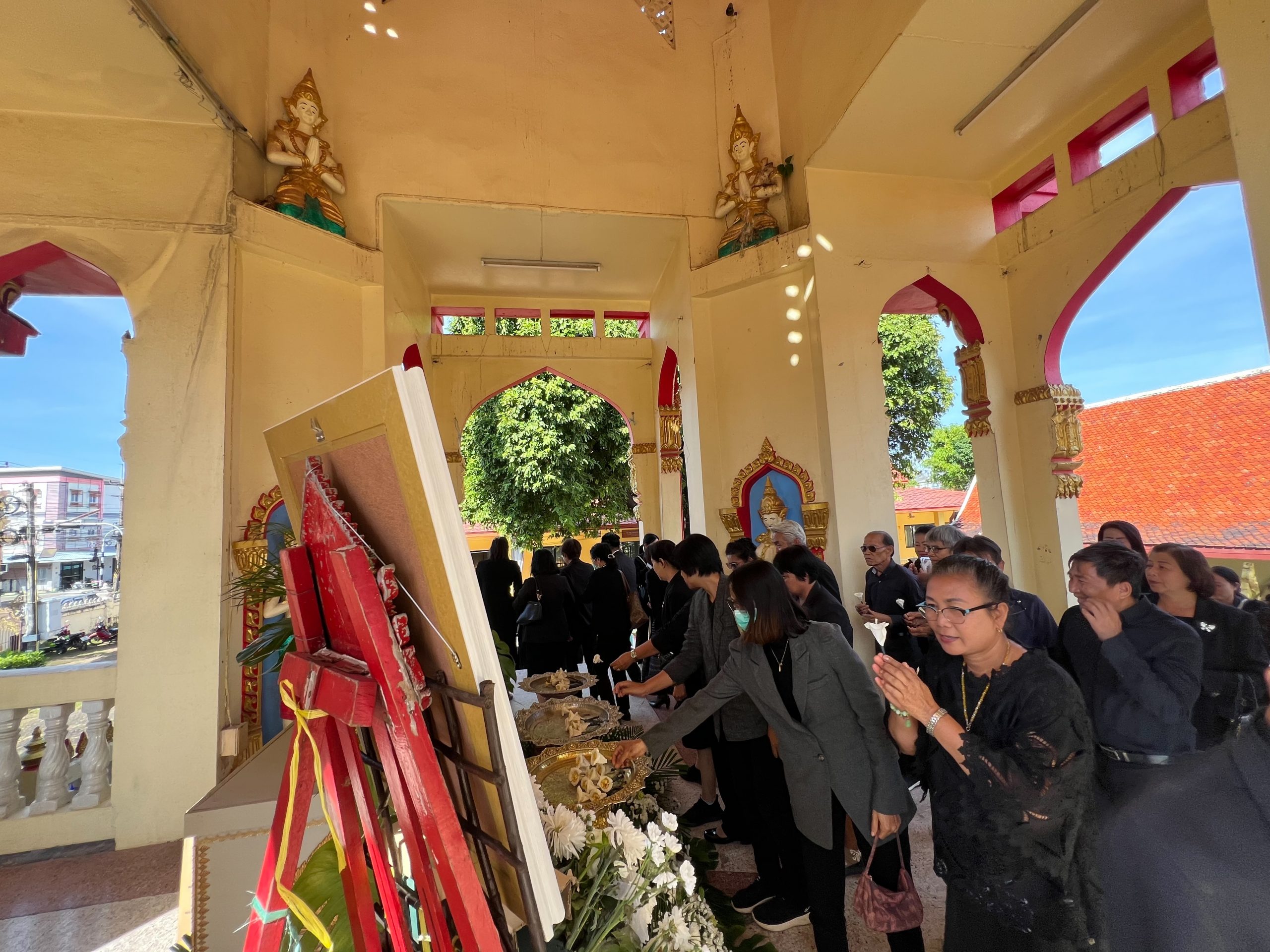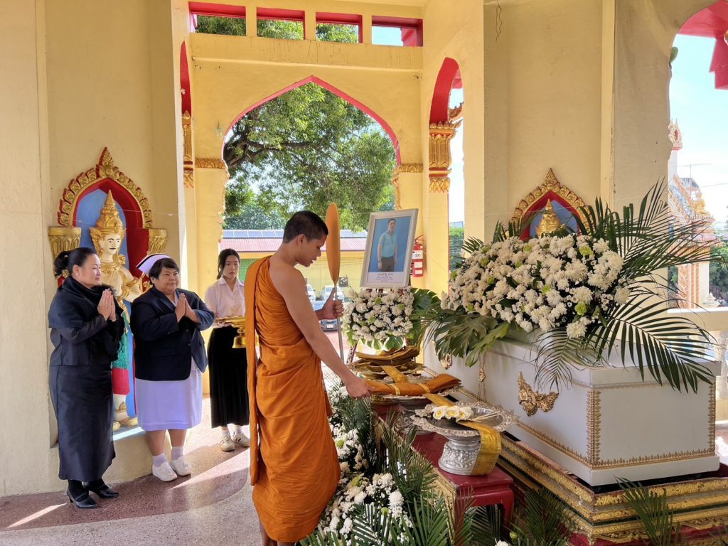 พิธีจัดขึ้น ณ ศาลาน้อมรำลึกพระราชสุทธาจารย์ (พรหมมา โชติโก) วัดศรีเทพประดิษฐาราม ตำบลในเมือง อำเภอเมืองนครพนม จังหวัดนครพนม โดยคณะผู้บริหาร อาจารย์ และบุคลากรทุกคนร่วมแสดงความอาลัยอย่างสุดซึ้ง พร้อมส่งกำลังใจและความห่วงใยไปยังครอบครัวสว่างในช่วงเวลาแห่งความสูญเสียครั้งนี้
