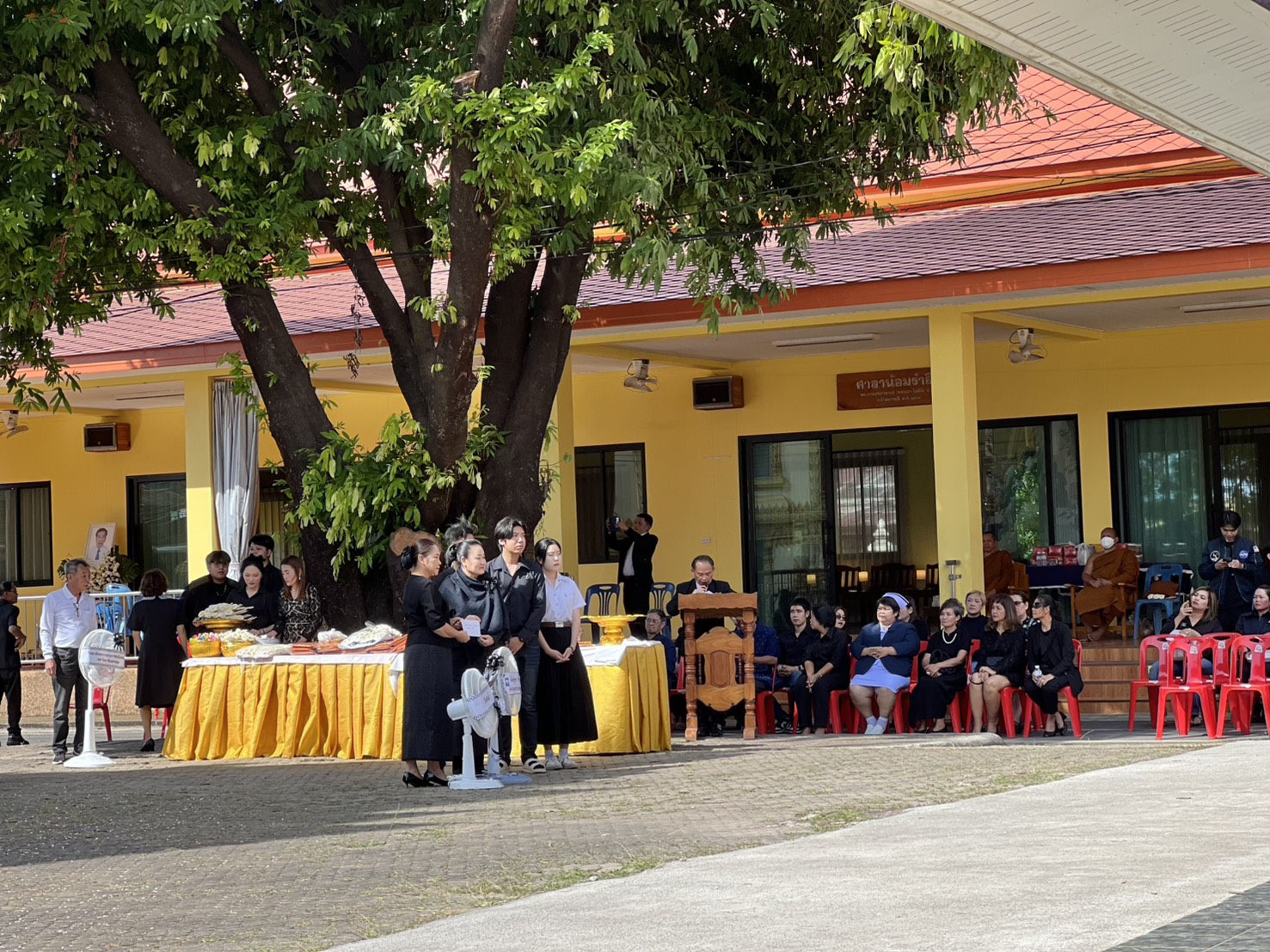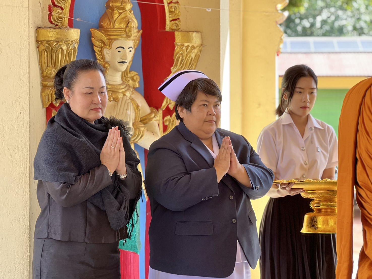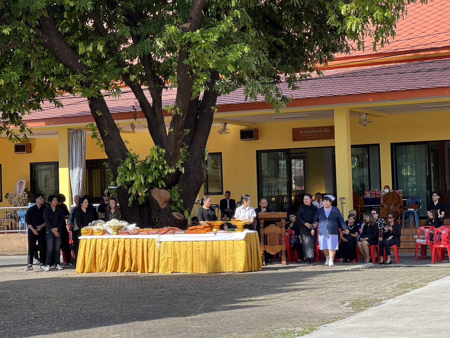 พิธีจัดขึ้น ณ ศาลาน้อมรำลึกพระราชสุทธาจารย์ (พรหมมา โชติโก) วัดศรีเทพประดิษฐาราม ตำบลในเมือง อำเภอเมืองนครพนม จังหวัดนครพนม โดยคณะผู้บริหาร อาจารย์ และบุคลากรทุกคนร่วมแสดงความอาลัยอย่างสุดซึ้ง พร้อมส่งกำลังใจและความห่วงใยไปยังครอบครัวสว่างในช่วงเวลาแห่งความสูญเสียครั้งนี้