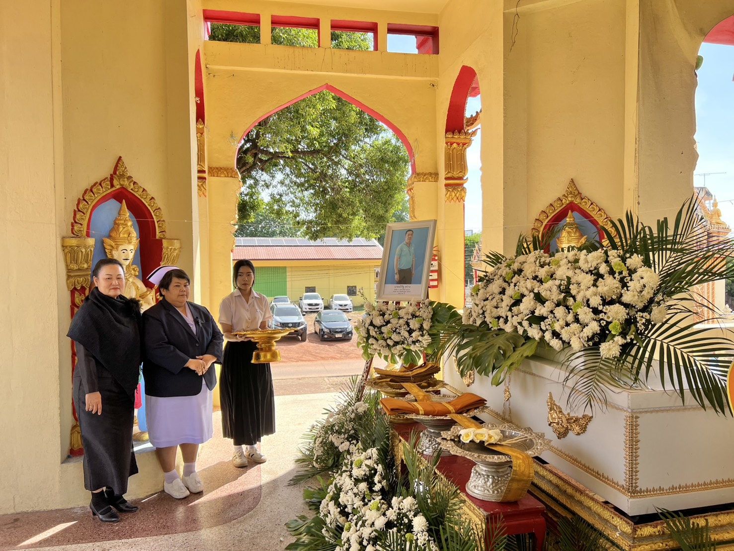 วันที่ 27 พฤศจิกายน 2568 ดร.สุปราณี สิทธิกานต์ คณบดีวิทยาลัยพยาบาลบรมราชชนนีนครพนม มหาวิทยาลัยนครพนม มอบหมายให้ อาจารย์ศิริรัตน์ อินทรเกษม รองคณบดีฝ่ายบริหารและพัฒนาทรัพยากร นำคณาจารย์และบุคลากร เข้าร่วมพิธีฌาปนกิจศพ คุณอภิรัฐ สว่าง สามีของ นางแว่นแก้ว สว่าง นักวิชาการเงินและบัญชีปฏิบัติการ ซึ่งได้ถึงแก่กรรมเมื่อวันที่ 24 พฤศจิกายน 2568