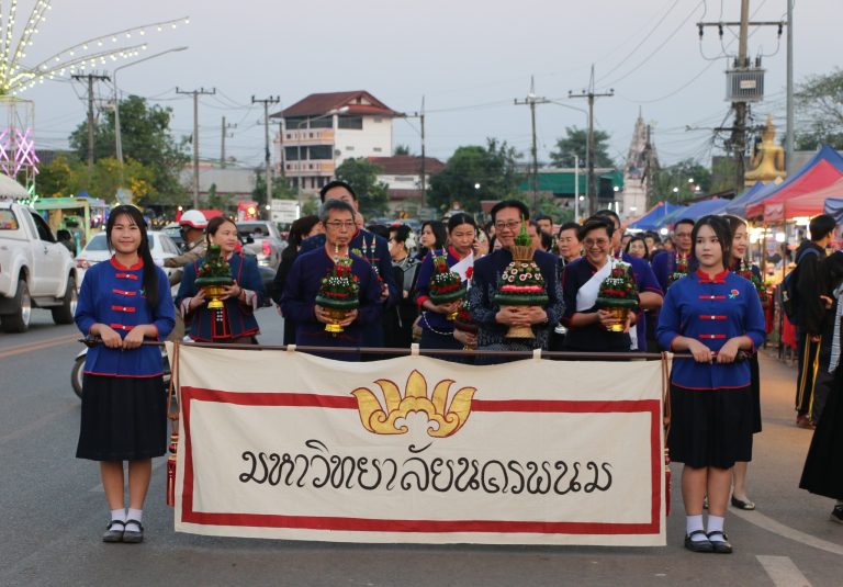วันที่ 8 ธันวาคม 2568 ดร.สุปราณี สิทธิกานต์ คณบดีวิทยาลัยพยาบาลบรมราชชนนีนครพนม มหาวิทยาลัยนครพนม พร้อมด้วย อาจารย์จรินทร โคตพรม รองคณบดีฝ่ายนโยบาย แผน และงบประมาณ เข้าร่วมสืบสานประเพณีไหว้ปู่ถลาเรณูนคร ในกิจกรรม “Winter WaeReNu” หนุนเมืองแห่งการเรียนรู้ผู้ไทเมิงเว โดยกิจกรรมนี้จัดขึ้นจากทีมนักวิจัยมหาวิทยาลัยนครพนม นำโดย ผู้ช่วยศาสตราจารย์ ดร.กัญลยา มิขะมา หัวหน้าโครงการวิจัย “การออกแบบเมืองแห่งการเรียนรู้สร้างสรรค์ตามความหมาย เมิงเว: วัฒนธรรม อัตลักษณ์ผู้ไทเรณูนคร นครพนม” ร่วมจัดกิจกรรม “Winter WaeReNu: หนาวแห่งศรัทธา ไหว้เจ้าปู่ถลา พาเรียนรู้วิถีผู้ไทเมิงเว” ภายในงานประเพณี “ไหว้ปู่ถลาเรณูนคร ประจำปี 2568” เพื่อถ่ายทอดองค์ความรู้ด้านวัฒนธรรมผู้ไทสู่ชุมชนอย่างสร้างสรรค์