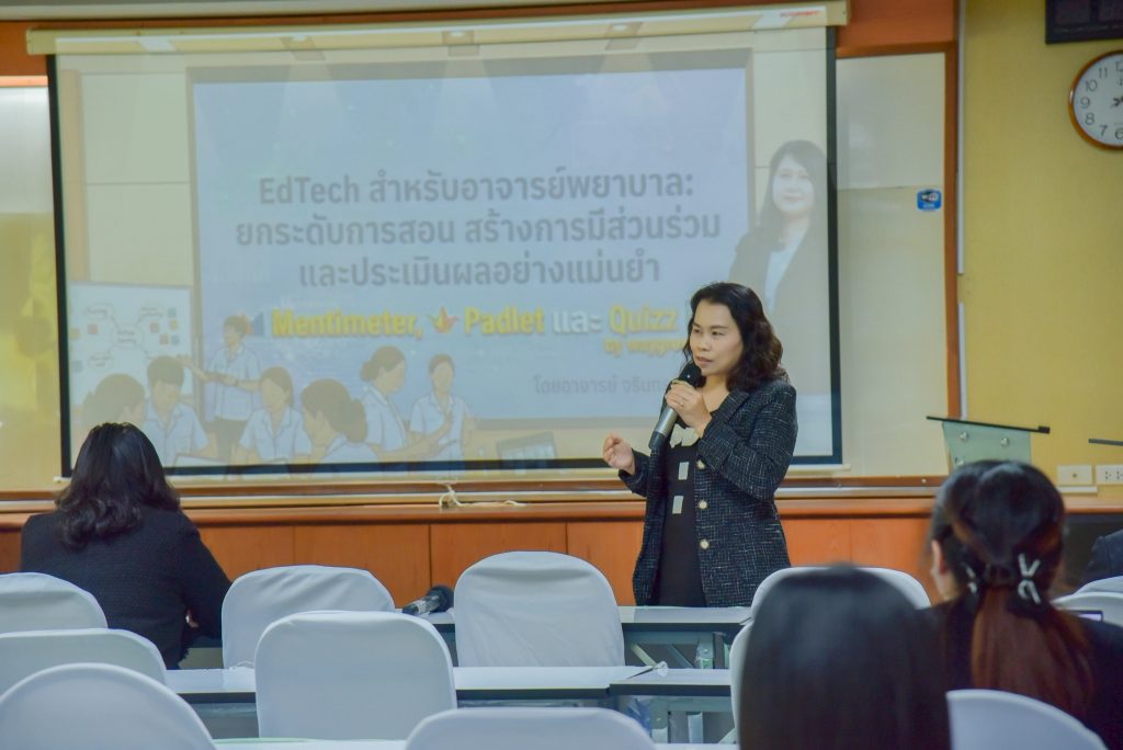 การจัดกิจกรรมในครั้งนี้เป็นการการอบรมเชิงปฏิบัติการเรื่อง “การพัฒนาสมรรถนะการสอนในคลินิกของอาจารย์ผู้สอน” โดยวิทยากรผู้ทรงคุณวุฒิ ได้แก่ อาจารย์จรินทร โคตพรม รองคณบดีฝ่ายนโยบาย แผน และงบประมาณ และอาจารย์ดวงใจ บุญคง หัวหน้ากลุ่มวิชากลุ่มวิชาการพยาบาลผู้ใหญ่และผู้สูงอายุ รวมถึงการเสริมทักษะด้านการใช้เทคโนโลยีในการสอน เพื่อให้คณาจารย์สามารถนำไปประยุกต์ใช้ในการจัดการเรียนการสอนได้อย่างมีประสิทธิภาพ