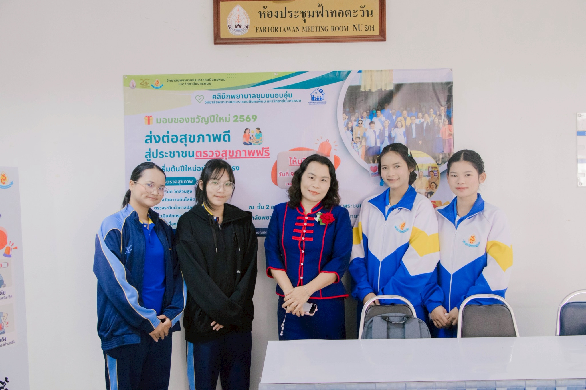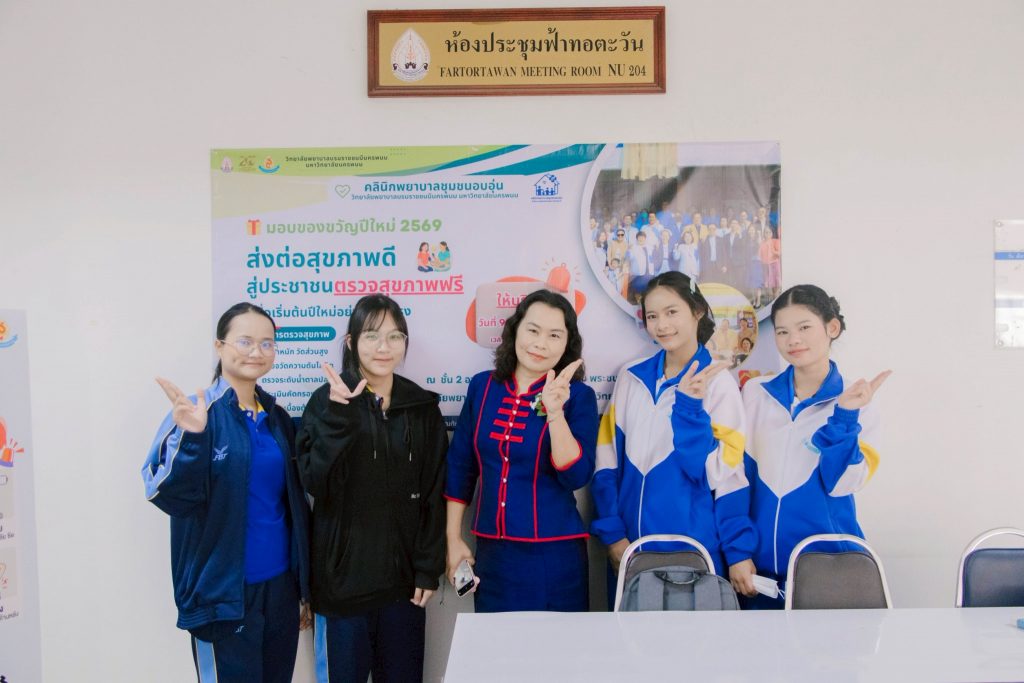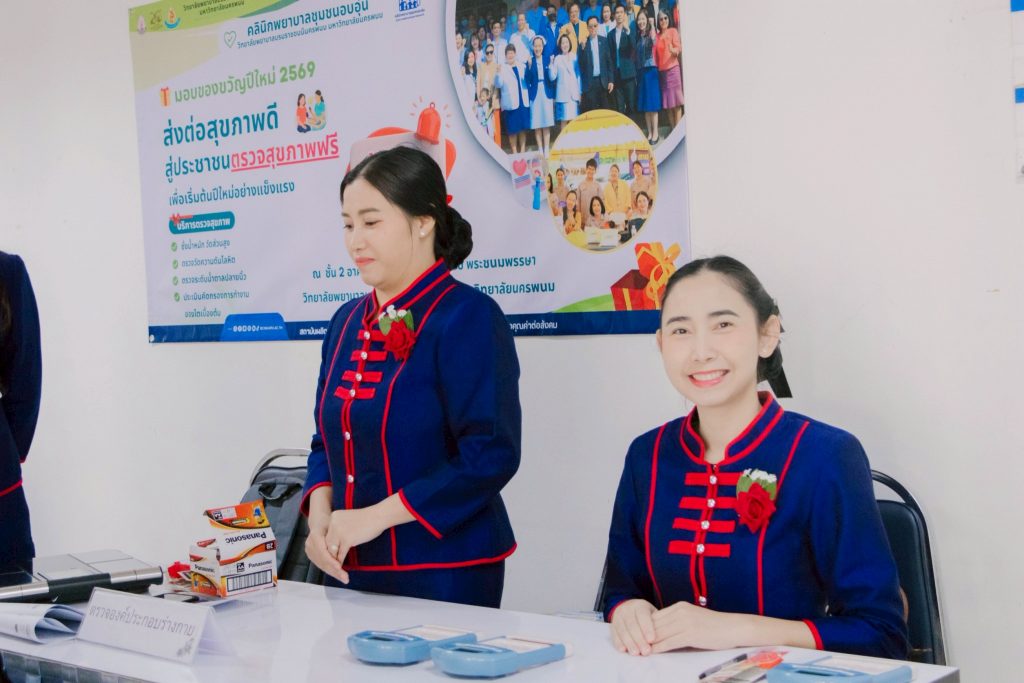 วันที่ 9 มกราคม 2569 วิทยาลัยพยาบาลบรมราชชนนีนครพนม มหาวิทยาลัยนครพนม นำโดย ดร.สุปราณี สิทธิกานต์ คณบดีวิทยาลัยพยาบาลบรมราชชนนีนครพนม เปิดให้บริการตรวจสุขภาพแก่ผู้สูงอายุและประชาชนทั่วไป ภายใต้กิจกรรม “มอบของขวัญปีใหม่ 2569 ส่งต่อสุขภาพดีสู่ประชาชน ตรวจสุขภาพฟรี” ณ ลานอเนกประสงค์ ชั้น 2 อาคารเฉลิมพระเกียรติ 7 รอบ พระชนมพรรษา วิทยาลัยพยาบาลบรมราชชนนีนครพนม มหาวิทยาลัยนครพนม