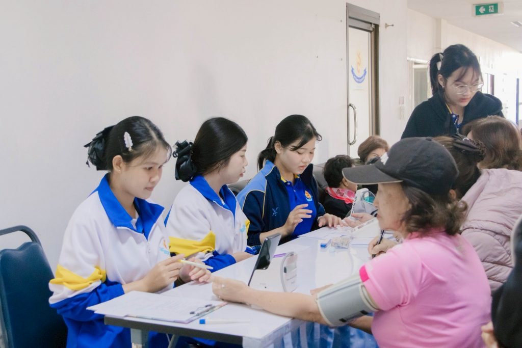 การให้บริการสุขภาพประกอบด้วย การชั่งน้ำหนัก วัดส่วนสูง ตรวจวัดความดันโลหิต ตรวจระดับน้ำตาลปลายนิ้ว และการประเมินคัดกรองสุขภาพเบื้องต้น โดยมีนักศึกษาพยาบาลร่วมให้บริการภายใต้การกำกับดูแลอย่างใกล้ชิดจากคณาจารย์ เน้นความแม่นยำ ความรอบคอบ และมาตรฐานวิชาชีพในการดูแลผู้รับบริการ