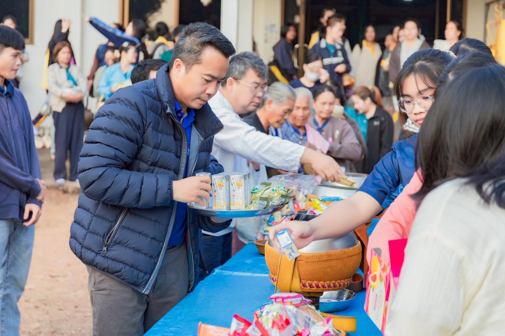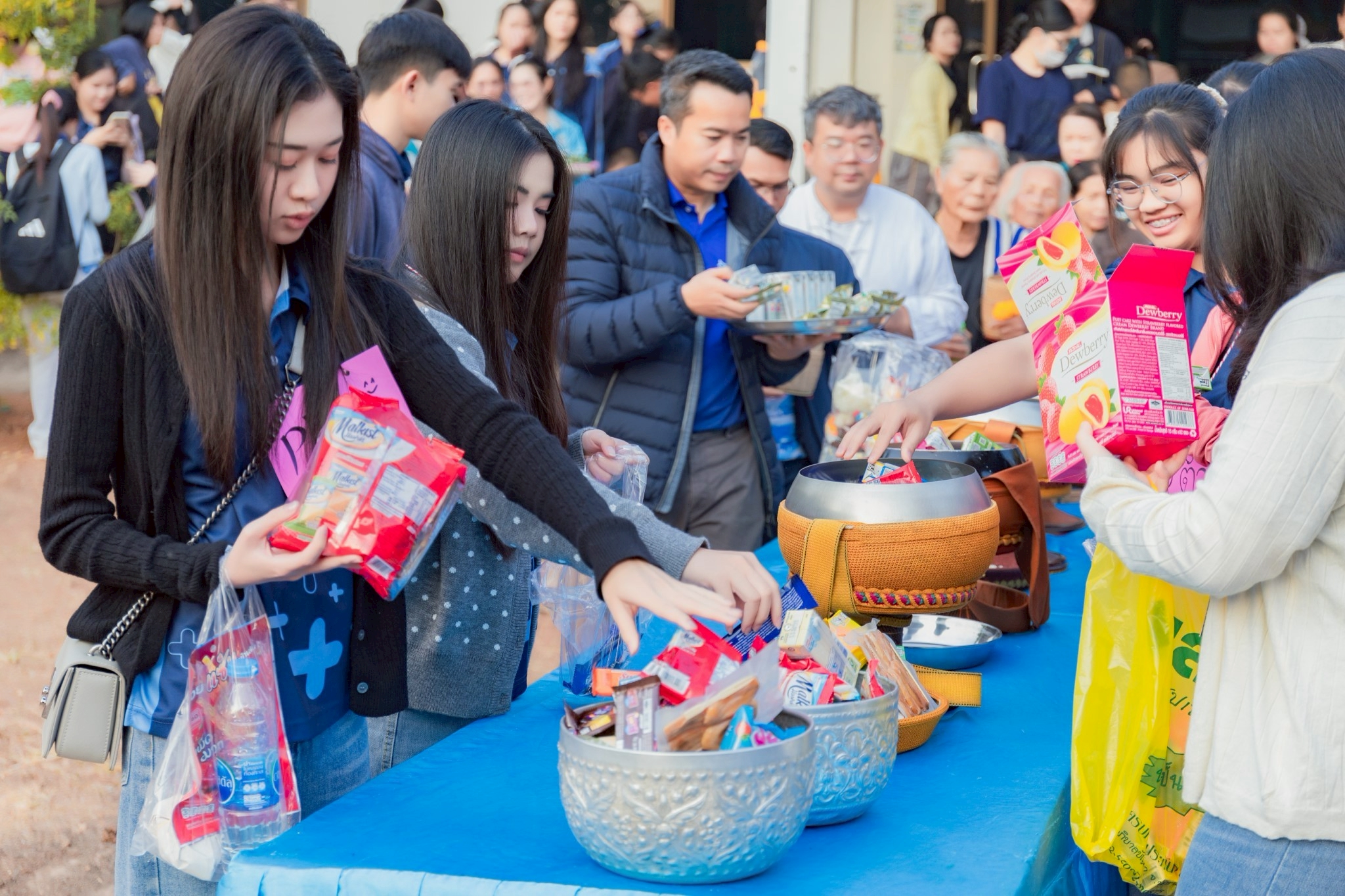 วันที่ 17 มกราคม 2569 ฝ่ายพัฒนานักศึกษาและวิเทศสัมพันธ์ ร่วมกับชุมนุมจิตอาสาพัฒนาชุมชน และสโมสรนักศึกษา วิทยาลัยพยาบาลบรมราชชนนีนครพนม จัดโครงการ “ค่ายพยาบาลจิตอาสาพัฒนาชุมชน ครั้งที่ 21” จัดกิจกรรมทำนุบำรุงศาสนาและเชื่อมสัมพันธ์ชุมชน ผ่านการทำบุญตักบาตรและถวายภัตตาหารแด่พระภิกษุสงฆ์ โดยมีคณะผู้บริหาร คณาจารย์ นักศึกษา คณะครูและนักเรียนโรงเรียนวังกระแสวิทยาคมเข้าร่วมกิจกรรม ณ วัดหัวโพน ตำบลบ้านผึ้ง อำเภอเมืองนครพนม จังหวัดนครพนม