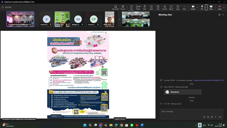 วันที่ 19 มกราคม 2569 ดร.สุปราณี สิทธิกานต์ คณบดีวิทยาลัยพยาบาลบรมราชชนนีนครพนม มหาวิทยาลัยนครพนม มอบหมายให้ อาจารย์พยอม สินธุศิริ รองคณบดีฝ่ายบริการวิชาการและเสริมสร้างความเข้มแข็งแก่สังคม ผู้รับผิดชอบโครงการทุนนวัตกรรมสายอาชีพชั้นสูง หลักสูตรประกาศนียบัตรผู้ช่วยพยาบาล พร้อมด้วย ผู้ช่วยศาสตราจารย์ดารุนนีย์ สวัสดิโชตติ์ ผู้ช่วยคณบดีฝ่ายบริการวิชาการ อาจารย์ชวาลา บัวหอม และนายรัชชานนท์ วะเศษสร้อย ผู้ประสานงานโครงการ จัดประชุมชี้แจงรายละเอียดการดำเนินกิจกรรมประชาสัมพันธ์ การค้นหา และคัดกรองนักเรียนทุนโครงการนวัตกรรมสายอาชีพชั้นสูง ร่วมกับคณะเกษตรและเทคโนโลยี มหาวิทยาลัยนครพนม