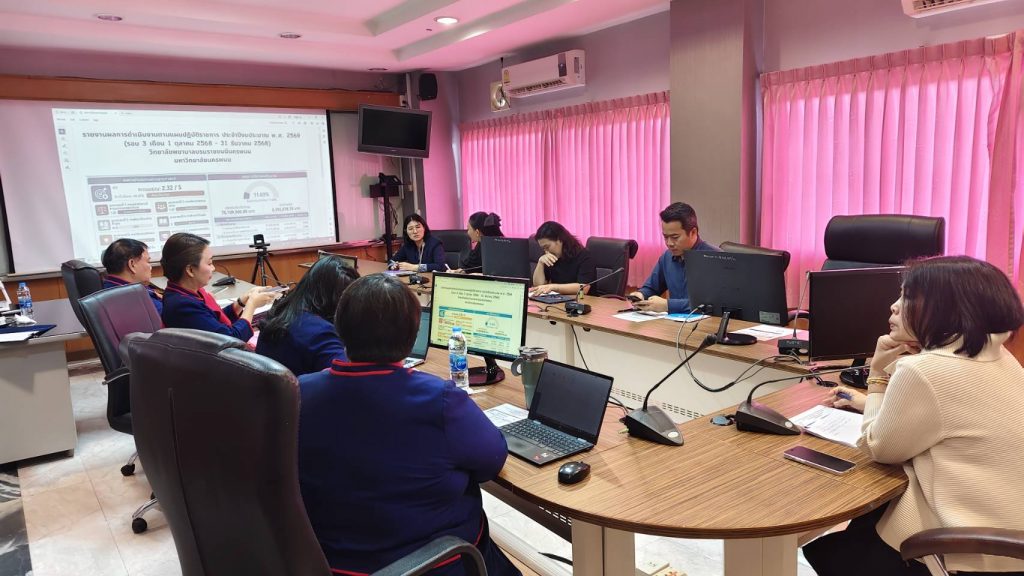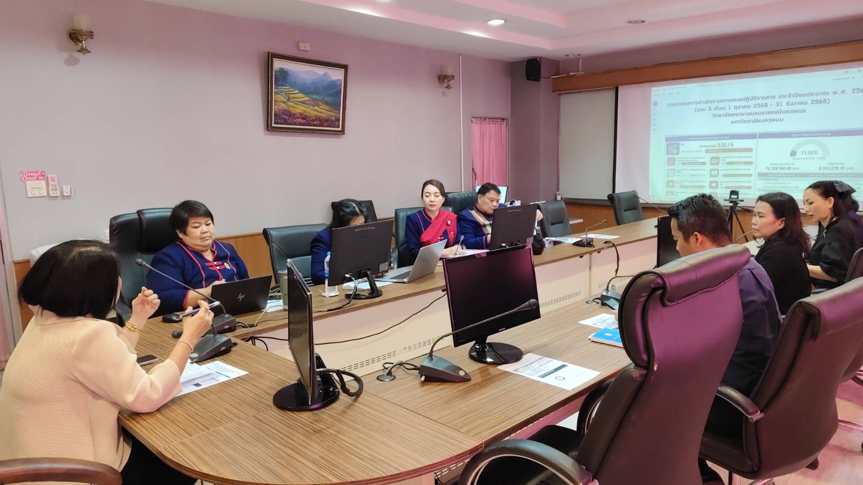 วันที่ 20 มกราคม 2569 ฝ่ายนโยบาย แผน และงบประมาณ วิทยาลัยพยาบาลบรมราชชนนีนครพนม มหาวิทยาลัยนครพนม จัดประชุมเพื่อจัดทำแผนปฏิบัติราชการ ประจำปีงบประมาณ พ.ศ. 2569 (ฉบับปรับปรุงกลางปี) เพื่อทบทวนและปรับแผนการดำเนินงานให้สอดคล้องกับแผนงานและโครงการต่าง ๆ อย่างมีประสิทธิภาพ โดยมี ดร.สุปราณี สิทธิกานต์ คณบดีวิทยาลัยพยาบาลบรมราชชนนีนครพนม มหาวิทยาลัยนครพนม เป็นประธานในการประชุม และมี อาจารย์จรินทร โคตพรม รองคณบดีฝ่ายนโยบาย แผน และงบประมาณ รายงานภาพรวมความก้าวหน้าของการดำเนินงานตามแผนงานในรอบที่ผ่านมา ในการประชุมมีคณะผู้บริหาร ได้แก่ รองคณบดีและผู้ช่วยคณบดี เข้าร่วม ณ ห้องประชุมศรีโคตรบุรีรัตน์ ชั้น 9 อาคารเฉลิมพระเกียรติ 7 รอบ พระชนมพรรษา วิทยาลัยพยาบาลบรมราชชนนีนครพนม มหาวิทยาลัยนครพนม