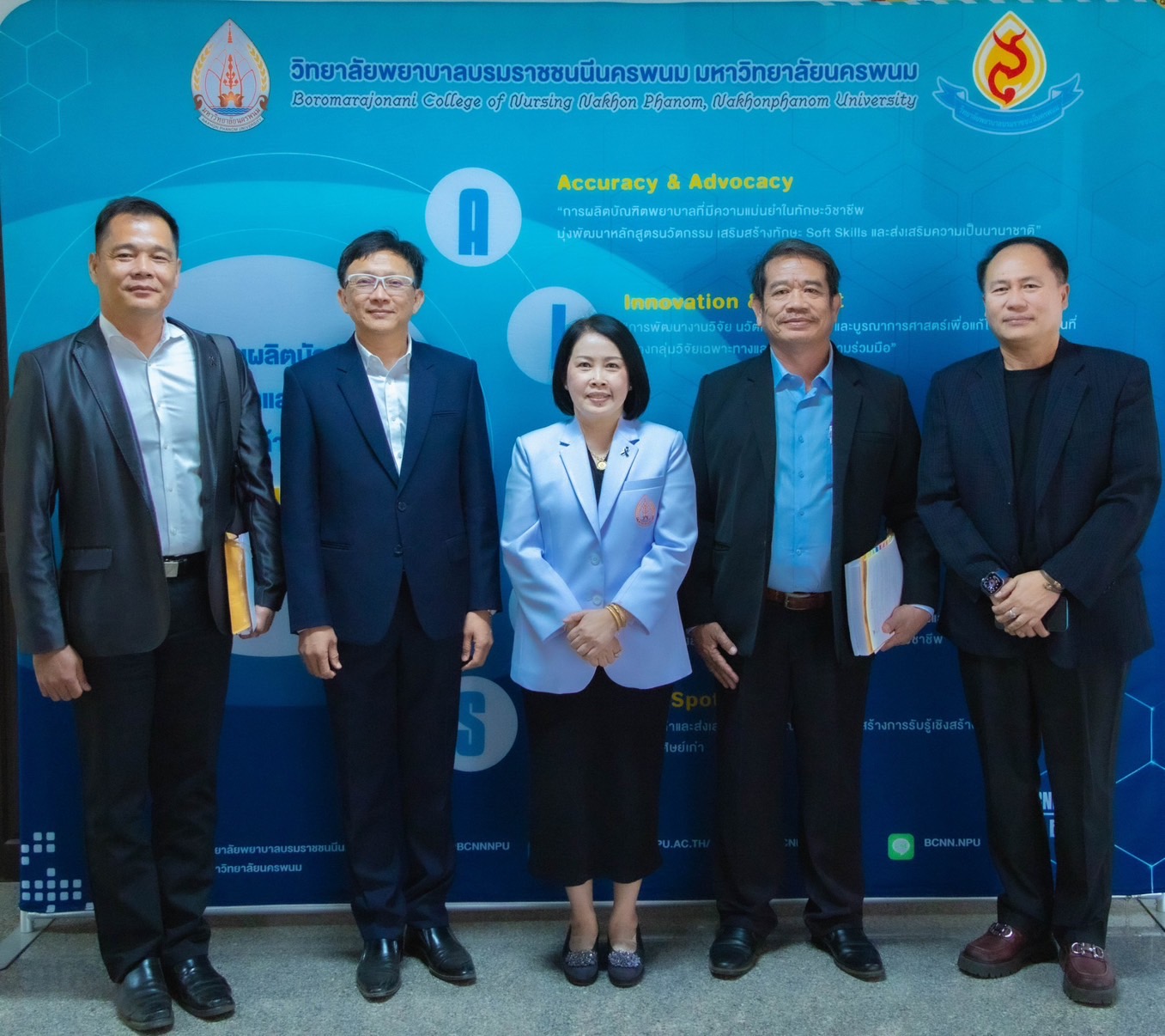 โดย ดร.สุปราณี สิทธิกานต์ คณบดีวิทยาลัยพยาบาลบรมราชชนนีนครพนม มหาวิทยาลัยนครพนม ได้เข้าตอบคำถาม และรับฟังผลการประเมินผลการปฏิบัติงานจากคณะกรรมการ ซึ่งครอบคลุมผลการดำเนินงานตามพันธกิจด้านการจัดการศึกษา การวิจัย การบริการวิชาการ และการบริหารจัดการองค์กรในภาพรวมของวิทยาลัยพยาบาลบรมราชชนนีนครพนม มหาวิทยาลัยนครพนม พร้อมทั้งรับฟังข้อเสนอแนะเชิงนโยบายและข้อเสนอแนะเชิงปฏิบัติจากคณะกรรมการในประเด็นต่าง ๆ อาทิ การพัฒนาคุณภาพการจัดการเรียนการสอน การเสริมสร้างสมรรถนะบุคลากร การพัฒนาระบบบริหารจัดการให้มีความโปร่งใสและมีประสิทธิภาพ ตลอดจนการขับเคลื่อนวิทยาลัยให้สอดคล้องกับทิศทางการพัฒนามหาวิทยาลัยและนโยบายการอุดมศึกษา