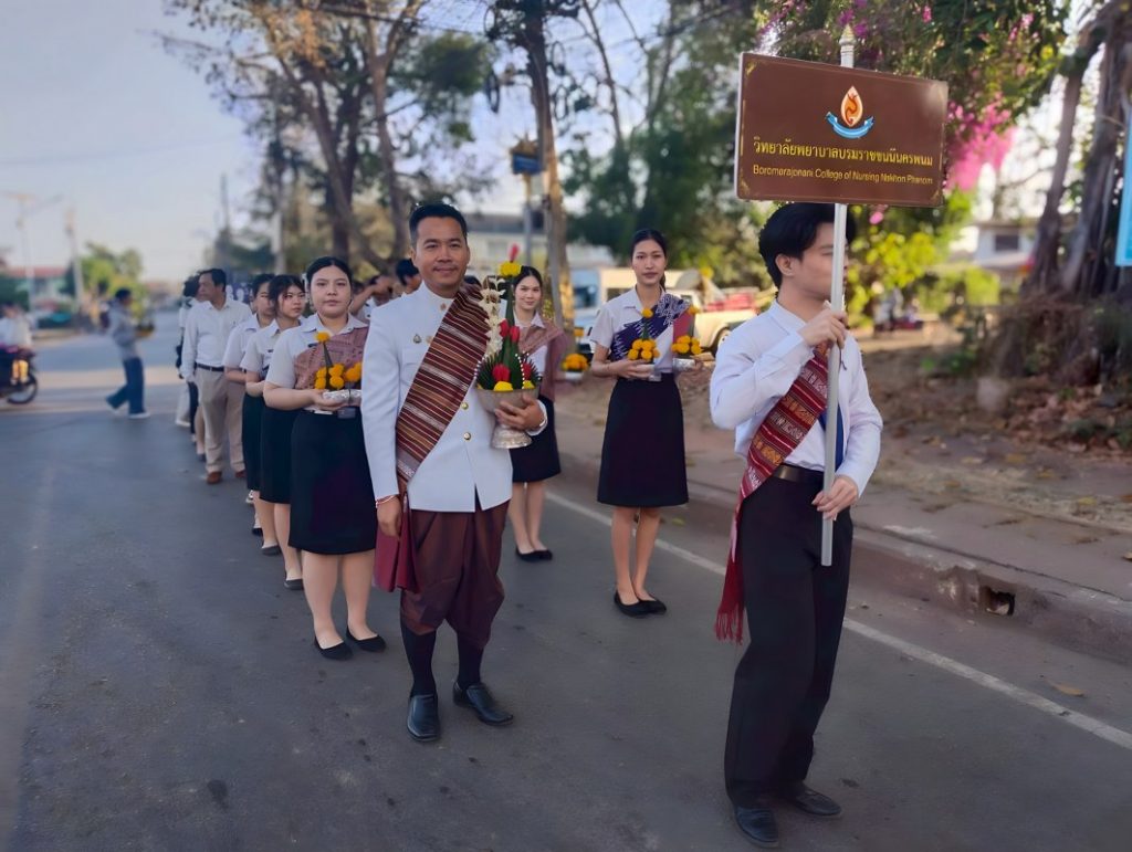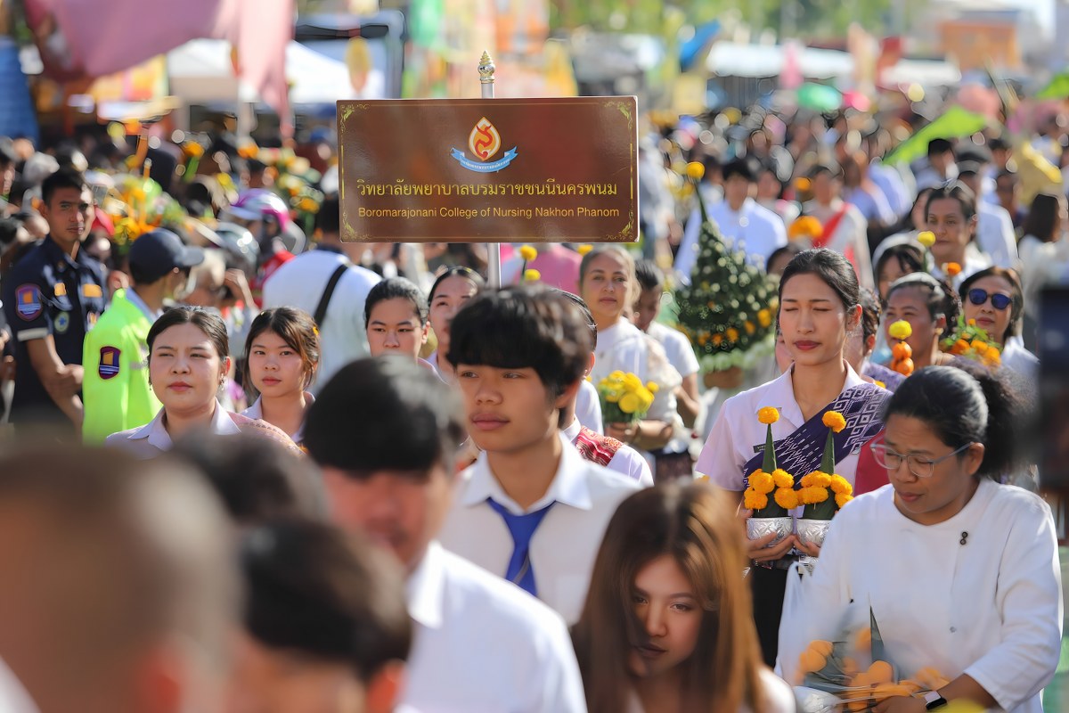 ในการนี้ คณะผู้บริหาร คณาจารย์ และนักศึกษา วิทยาลัยพยาบาลบรมราชชนนีนครพนม ได้เข้าร่วมขบวนแห่อัญเชิญพระอุปคุต พร้อมร่วมเวียนรอบองค์พระธาตุพนม และประกอบพิธีถวายขันหมากเบ็ง ณ องค์พระธาตุพนม เพื่อความเป็นสิริมงคลแก่สถาบัน บุคลากร และนักศึกษา ทั้งยังเป็นการส่งเสริมให้นักศึกษาได้เรียนรู้และมีส่วนร่วมในการทำนุบำรุงศิลปวัฒนธรรม ประเพณีอันดีงามของท้องถิ่น ตลอดจนปลูกฝังคุณธรรม จริยธรรมควบคู่กับการพัฒนาทักษะวิชาชีพตามอัตลักษณ์ของสถาบัน