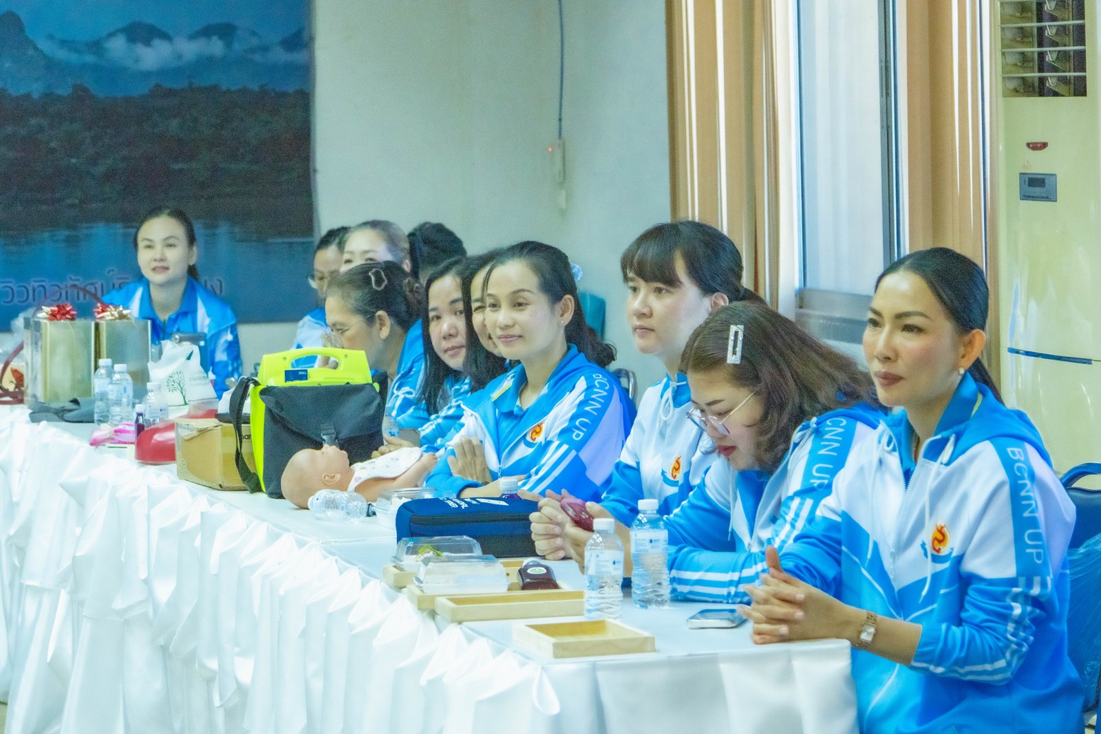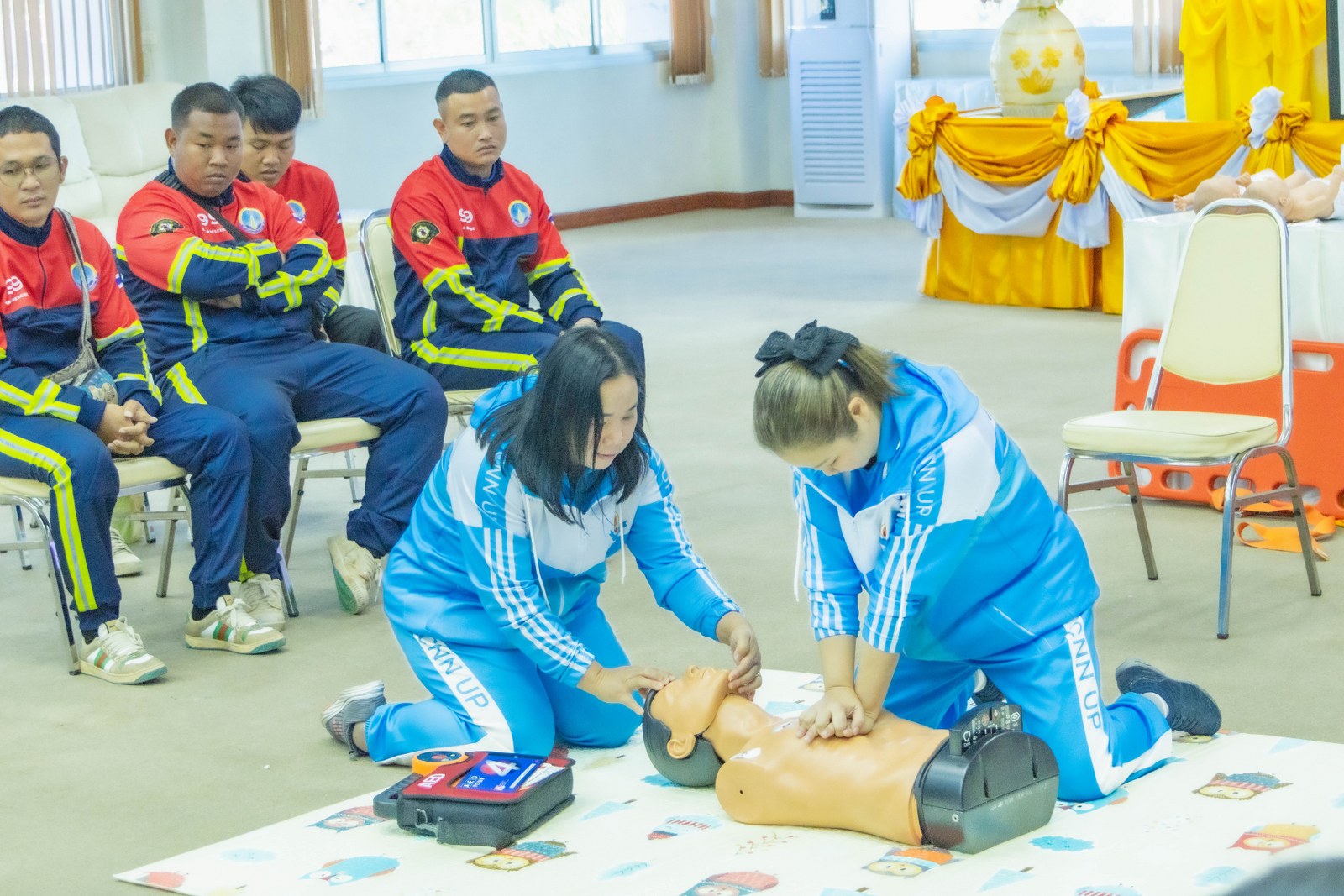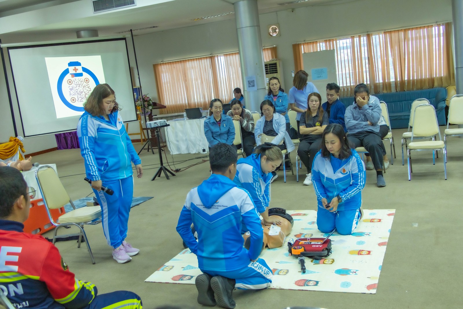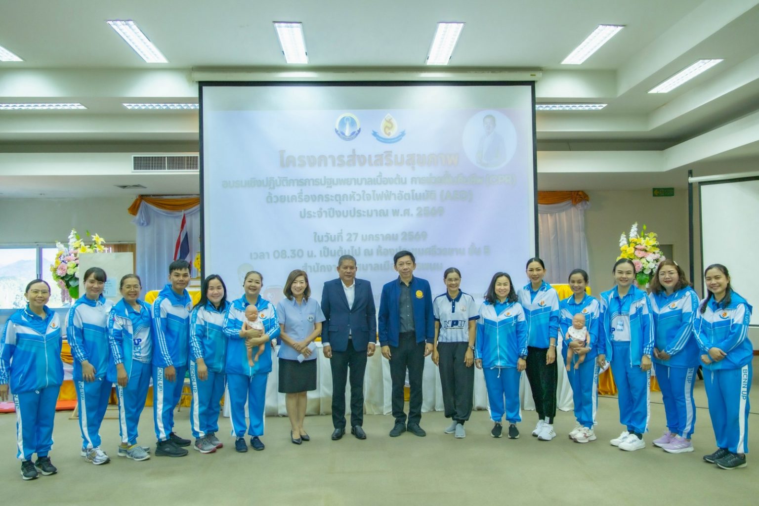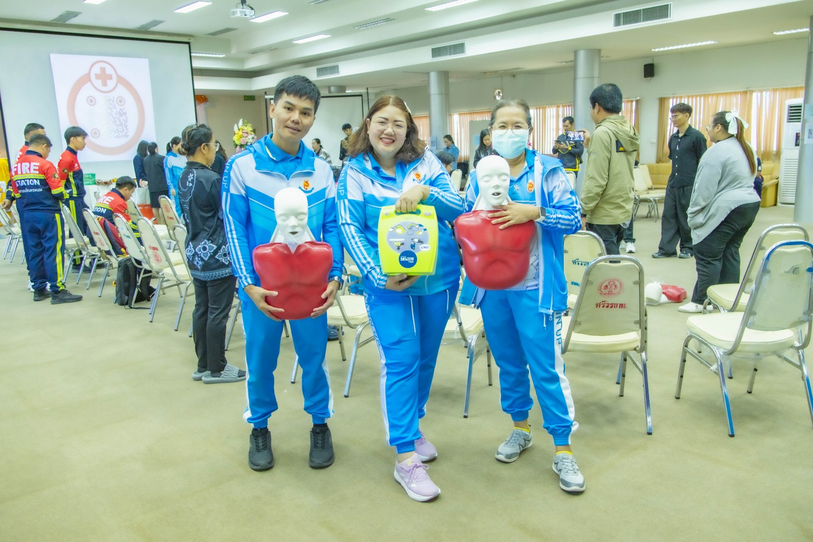 วันที่ 27 มกราคม 2569 ดร.สุปราณี สิทธิกานต์ คณบดีวิทยาลัยพยาบาลบรมราชชนนีนครพนม มหาวิทยาลัยนครพนม มอบหมายให้ อาจารย์ดวงใจ บุญคง หัวหน้ากลุ่มวิชาการพยาบาลผู้ใหญ่และผู้สูงอายุ พร้อมด้วยคณาจารย์ในกลุ่มวิชา ร่วมกับเทศบาลเมืองนครพนม จัดโครงการส่งเสริมสุขภาพ อบรมเชิงปฏิบัติการปฐมพยาบาลเบื้องต้นและการช่วยฟื้นคืนชีพ (Cardiopulmonary Resuscitation : CPR) ด้วยเครื่องกระตุกหัวใจไฟฟ้าอัตโนมัติ (Automated External Defibrillator : AED) ประจำปีงบประมาณ พ.ศ. 2569 เพื่อเสริมสร้างความรู้และทักษะด้านการปฐมพยาบาลเบื้องต้น การช่วยฟื้นคืนชีพ และการใช้เครื่อง AED อย่างถูกต้องและปลอดภัย ให้แก่ผู้บริหาร เจ้าหน้าที่ และคณะครูในสังกัดเทศบาลเมืองนครพนม เพื่อให้สามารถนำความรู้ไปใช้ในการช่วยเหลือผู้ประสบภาวะฉุกเฉินได้อย่างทันท่วงที อันจะช่วยลดความสูญเสียและเพิ่มโอกาสรอดชีวิตแก่ผู้ป่วยในชุมชน โดยได้รับเกียรติจากนายนิวัต เจียวิริยบุญญา นายกเทศมนตรีเมืองนครพนม มอบหมายให้นายนครินทร์ เหลือบุญชู รองนายกเทศมนตรี เป็นประธานในพิธีเปิด และมีนางภาวิณี โสมณวัฒน์ ผู้อำนวยการกองสาธารณสุขเทศบาลเมืองนครพนม กล่าวรายงานวัตถุประสงค์ในการจัดโครงการ โดยมีผู้บริหาร บุคลากร และผู้เข้ารับการอบรมจากหน่วยงานในสังกัดเทศบาลเมืองนครพนมเข้าร่วม ณ ห้องศรีวรขาน ชั้น 5 สำนักงานเทศบาลเมืองนครพนม