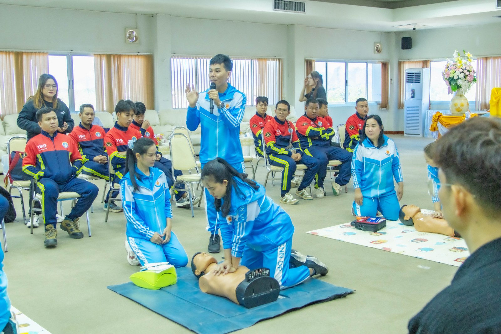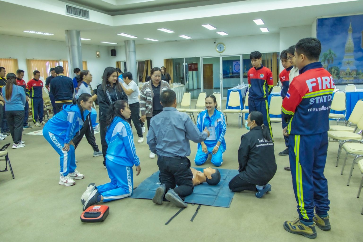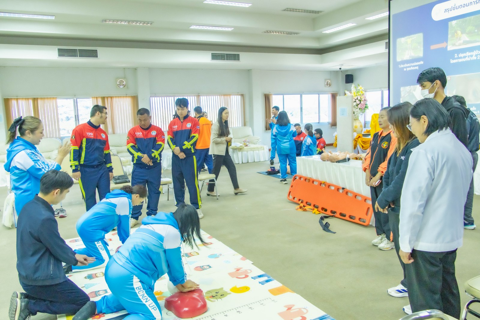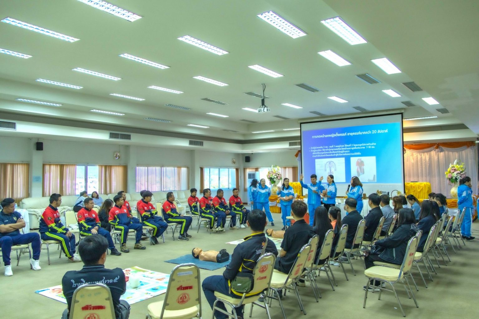 วันที่ 27 มกราคม 2569 ดร.สุปราณี สิทธิกานต์ คณบดีวิทยาลัยพยาบาลบรมราชชนนีนครพนม มหาวิทยาลัยนครพนม มอบหมายให้ อาจารย์ดวงใจ บุญคง หัวหน้ากลุ่มวิชาการพยาบาลผู้ใหญ่และผู้สูงอายุ พร้อมด้วยคณาจารย์ในกลุ่มวิชา ร่วมกับเทศบาลเมืองนครพนม จัดโครงการส่งเสริมสุขภาพ อบรมเชิงปฏิบัติการปฐมพยาบาลเบื้องต้นและการช่วยฟื้นคืนชีพ (Cardiopulmonary Resuscitation : CPR) ด้วยเครื่องกระตุกหัวใจไฟฟ้าอัตโนมัติ (Automated External Defibrillator : AED) ประจำปีงบประมาณ พ.ศ. 2569 เพื่อเสริมสร้างความรู้และทักษะด้านการปฐมพยาบาลเบื้องต้น การช่วยฟื้นคืนชีพ และการใช้เครื่อง AED อย่างถูกต้องและปลอดภัย ให้แก่ผู้บริหาร เจ้าหน้าที่ และคณะครูในสังกัดเทศบาลเมืองนครพนม เพื่อให้สามารถนำความรู้ไปใช้ในการช่วยเหลือผู้ประสบภาวะฉุกเฉินได้อย่างทันท่วงที อันจะช่วยลดความสูญเสียและเพิ่มโอกาสรอดชีวิตแก่ผู้ป่วยในชุมชน โดยได้รับเกียรติจากนายนิวัต เจียวิริยบุญญา นายกเทศมนตรีเมืองนครพนม มอบหมายให้นายนครินทร์ เหลือบุญชู รองนายกเทศมนตรี เป็นประธานในพิธีเปิด และมีนางภาวิณี โสมณวัฒน์ ผู้อำนวยการกองสาธารณสุขเทศบาลเมืองนครพนม กล่าวรายงานวัตถุประสงค์ในการจัดโครงการ โดยมีผู้บริหาร บุคลากร และผู้เข้ารับการอบรมจากหน่วยงานในสังกัดเทศบาลเมืองนครพนมเข้าร่วม ณ ห้องศรีวรขาน ชั้น 5 สำนักงานเทศบาลเมืองนครพนม