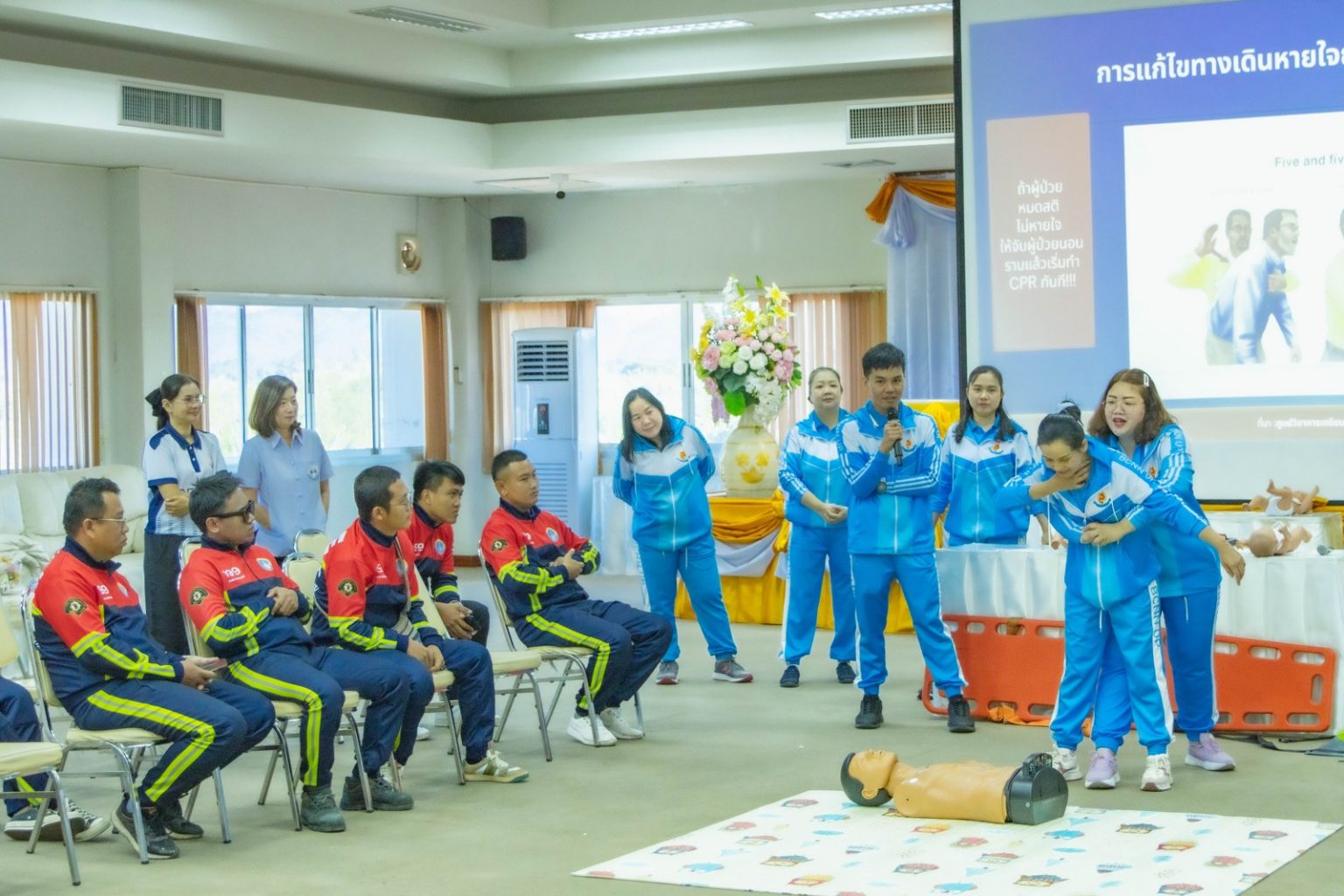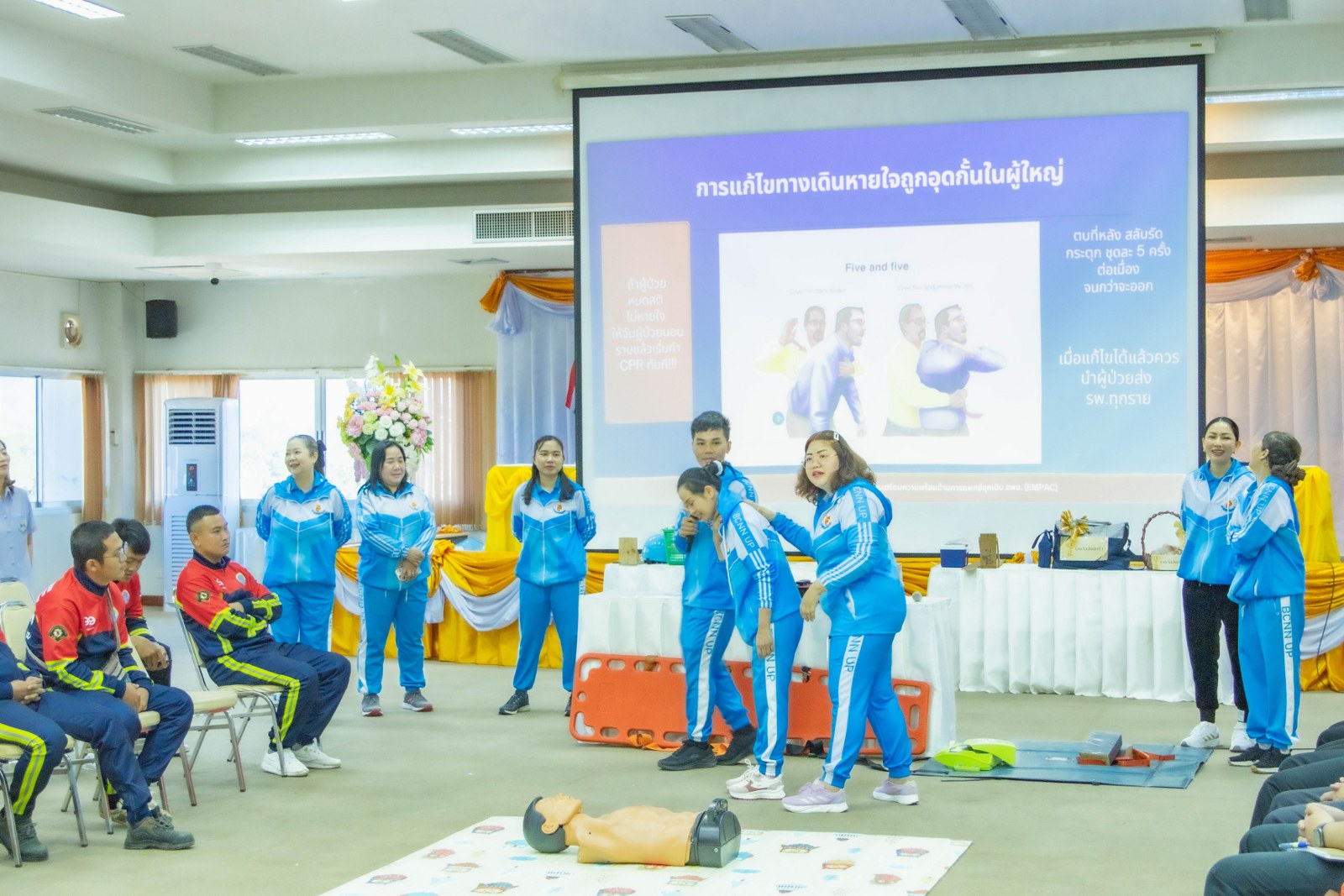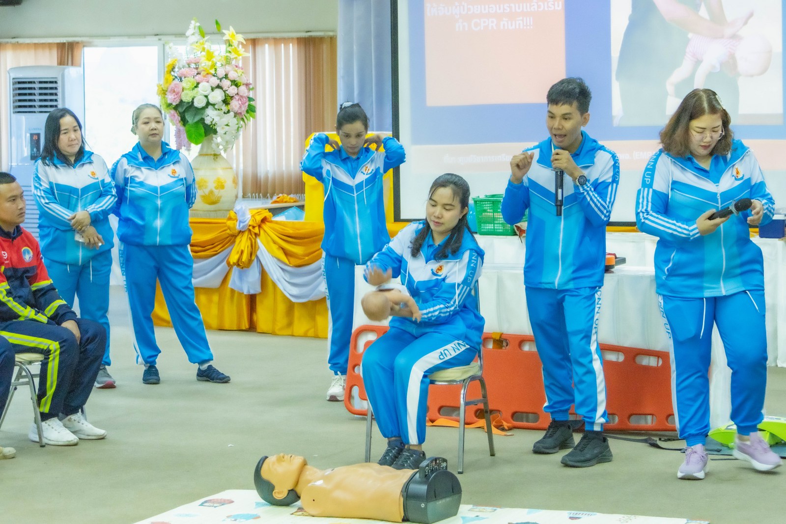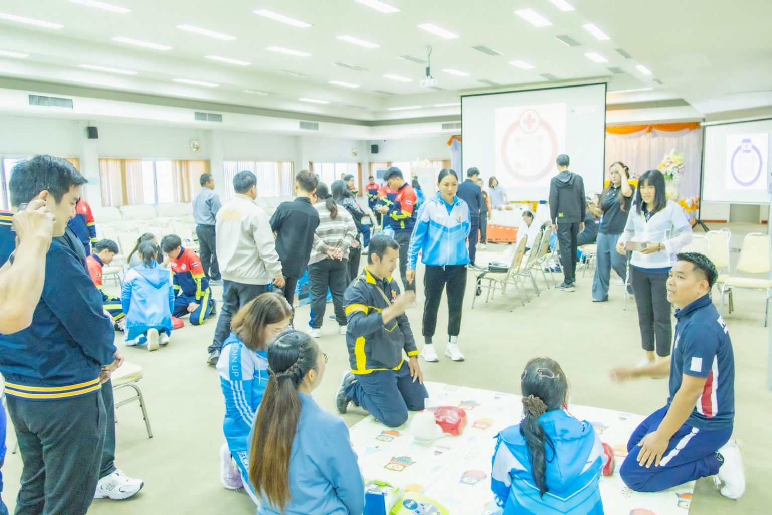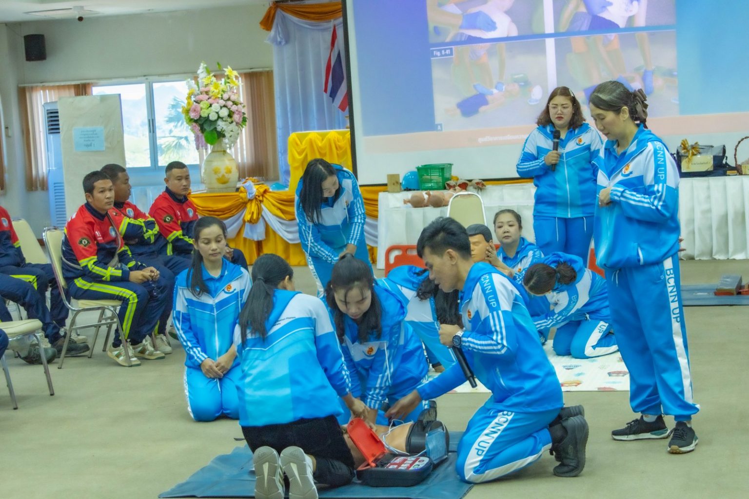 วันที่ 27 มกราคม 2569 ดร.สุปราณี สิทธิกานต์ คณบดีวิทยาลัยพยาบาลบรมราชชนนีนครพนม มหาวิทยาลัยนครพนม มอบหมายให้ อาจารย์ดวงใจ บุญคง หัวหน้ากลุ่มวิชาการพยาบาลผู้ใหญ่และผู้สูงอายุ พร้อมด้วยคณาจารย์ในกลุ่มวิชา ร่วมกับเทศบาลเมืองนครพนม จัดโครงการส่งเสริมสุขภาพ อบรมเชิงปฏิบัติการปฐมพยาบาลเบื้องต้นและการช่วยฟื้นคืนชีพ (Cardiopulmonary Resuscitation : CPR) ด้วยเครื่องกระตุกหัวใจไฟฟ้าอัตโนมัติ (Automated External Defibrillator : AED) ประจำปีงบประมาณ พ.ศ. 2569 เพื่อเสริมสร้างความรู้และทักษะด้านการปฐมพยาบาลเบื้องต้น การช่วยฟื้นคืนชีพ และการใช้เครื่อง AED อย่างถูกต้องและปลอดภัย ให้แก่ผู้บริหาร เจ้าหน้าที่ และคณะครูในสังกัดเทศบาลเมืองนครพนม เพื่อให้สามารถนำความรู้ไปใช้ในการช่วยเหลือผู้ประสบภาวะฉุกเฉินได้อย่างทันท่วงที อันจะช่วยลดความสูญเสียและเพิ่มโอกาสรอดชีวิตแก่ผู้ป่วยในชุมชน โดยได้รับเกียรติจากนายนิวัต เจียวิริยบุญญา นายกเทศมนตรีเมืองนครพนม มอบหมายให้นายนครินทร์ เหลือบุญชู รองนายกเทศมนตรี เป็นประธานในพิธีเปิด และมีนางภาวิณี โสมณวัฒน์ ผู้อำนวยการกองสาธารณสุขเทศบาลเมืองนครพนม กล่าวรายงานวัตถุประสงค์ในการจัดโครงการ โดยมีผู้บริหาร บุคลากร และผู้เข้ารับการอบรมจากหน่วยงานในสังกัดเทศบาลเมืองนครพนมเข้าร่วม ณ ห้องศรีวรขาน ชั้น 5 สำนักงานเทศบาลเมืองนครพนม