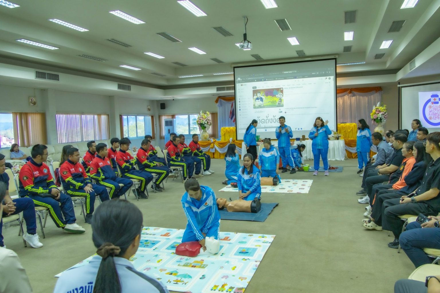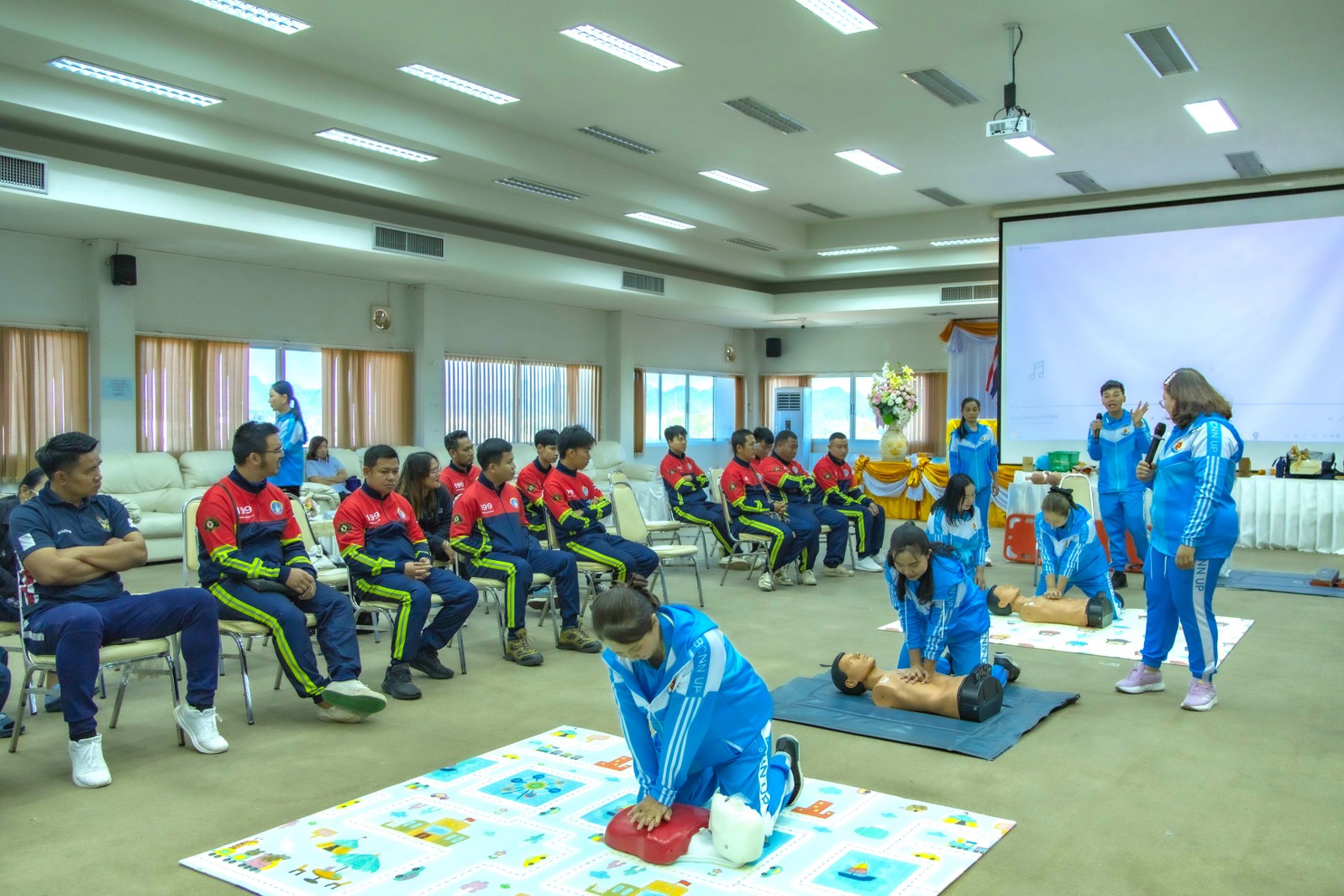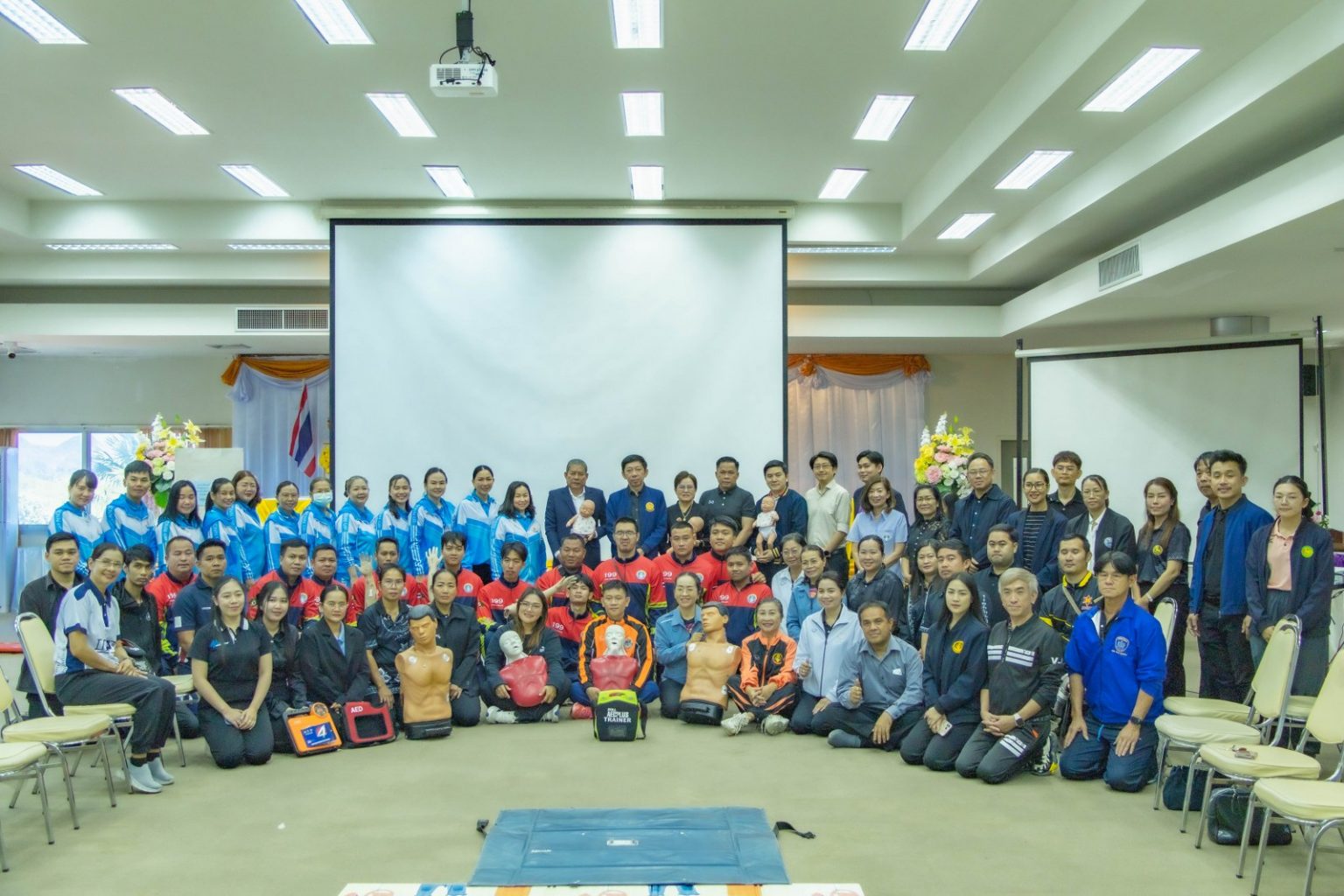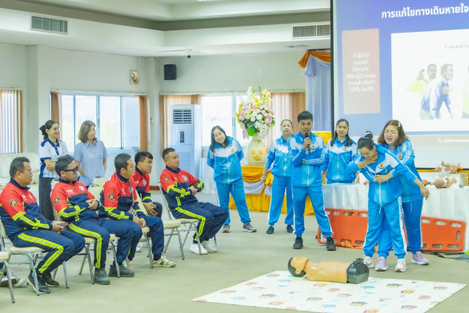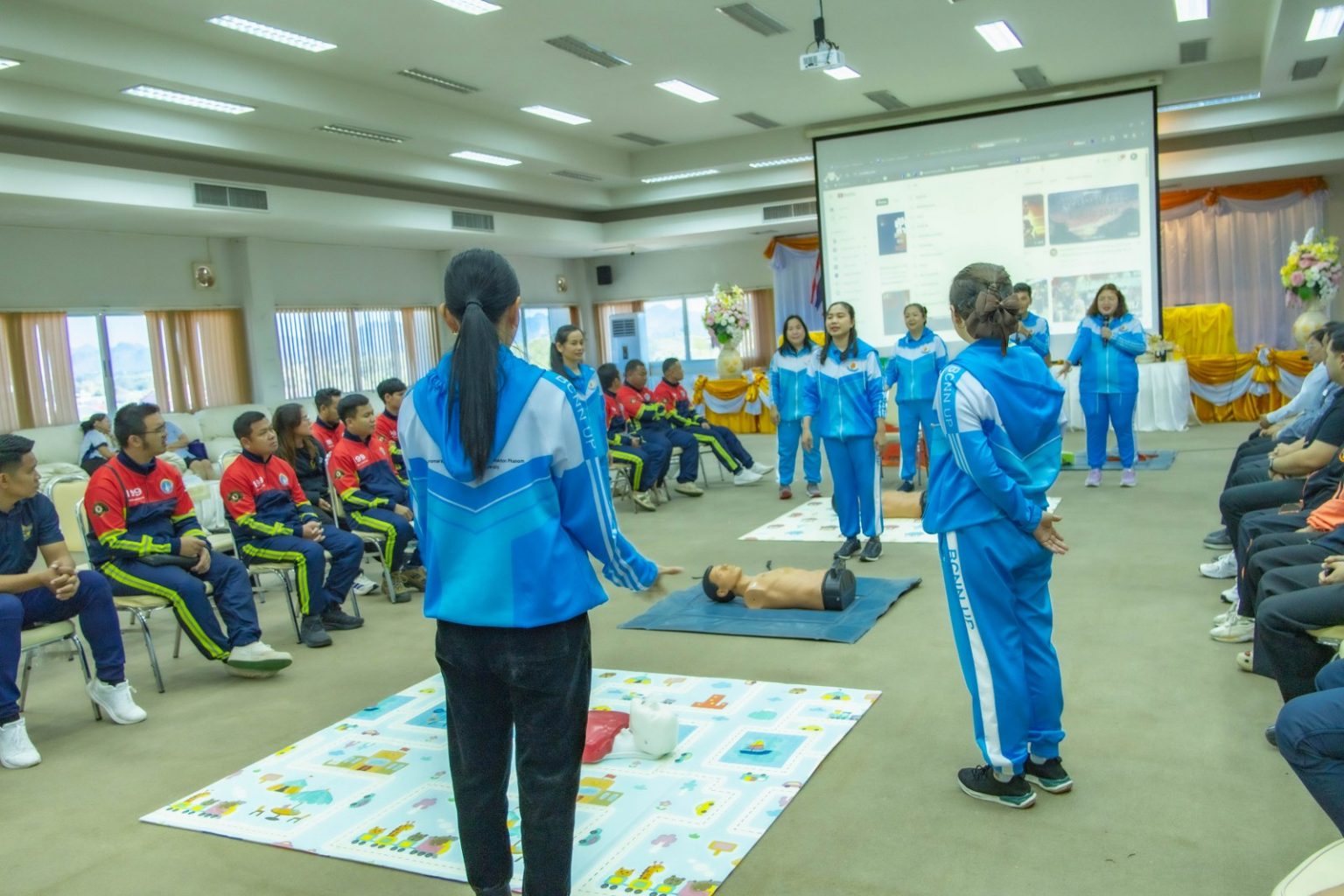 วันที่ 27 มกราคม 2569 ดร.สุปราณี สิทธิกานต์ คณบดีวิทยาลัยพยาบาลบรมราชชนนีนครพนม มหาวิทยาลัยนครพนม มอบหมายให้ อาจารย์ดวงใจ บุญคง หัวหน้ากลุ่มวิชาการพยาบาลผู้ใหญ่และผู้สูงอายุ พร้อมด้วยคณาจารย์ในกลุ่มวิชา ร่วมกับเทศบาลเมืองนครพนม จัดโครงการส่งเสริมสุขภาพ อบรมเชิงปฏิบัติการปฐมพยาบาลเบื้องต้นและการช่วยฟื้นคืนชีพ (Cardiopulmonary Resuscitation : CPR) ด้วยเครื่องกระตุกหัวใจไฟฟ้าอัตโนมัติ (Automated External Defibrillator : AED) ประจำปีงบประมาณ พ.ศ. 2569 เพื่อเสริมสร้างความรู้และทักษะด้านการปฐมพยาบาลเบื้องต้น การช่วยฟื้นคืนชีพ และการใช้เครื่อง AED อย่างถูกต้องและปลอดภัย ให้แก่ผู้บริหาร เจ้าหน้าที่ และคณะครูในสังกัดเทศบาลเมืองนครพนม เพื่อให้สามารถนำความรู้ไปใช้ในการช่วยเหลือผู้ประสบภาวะฉุกเฉินได้อย่างทันท่วงที อันจะช่วยลดความสูญเสียและเพิ่มโอกาสรอดชีวิตแก่ผู้ป่วยในชุมชน โดยได้รับเกียรติจากนายนิวัต เจียวิริยบุญญา นายกเทศมนตรีเมืองนครพนม มอบหมายให้นายนครินทร์ เหลือบุญชู รองนายกเทศมนตรี เป็นประธานในพิธีเปิด และมีนางภาวิณี โสมณวัฒน์ ผู้อำนวยการกองสาธารณสุขเทศบาลเมืองนครพนม กล่าวรายงานวัตถุประสงค์ในการจัดโครงการ โดยมีผู้บริหาร บุคลากร และผู้เข้ารับการอบรมจากหน่วยงานในสังกัดเทศบาลเมืองนครพนมเข้าร่วม ณ ห้องศรีวรขาน ชั้น 5 สำนักงานเทศบาลเมืองนครพนม