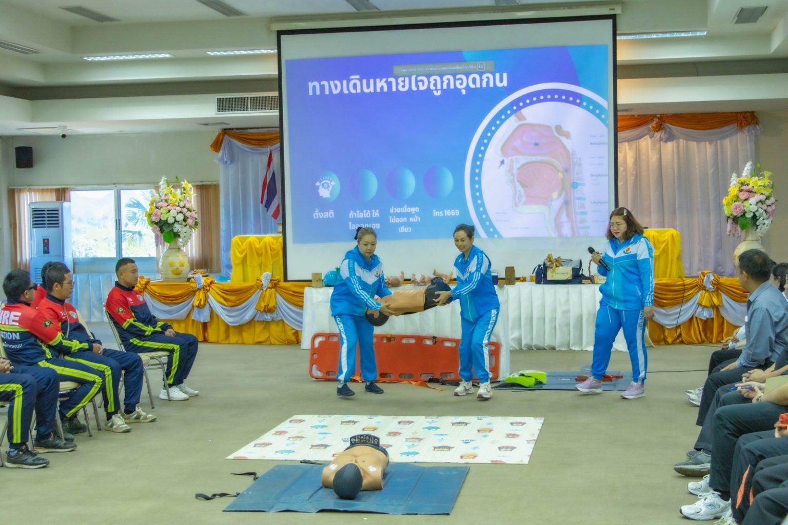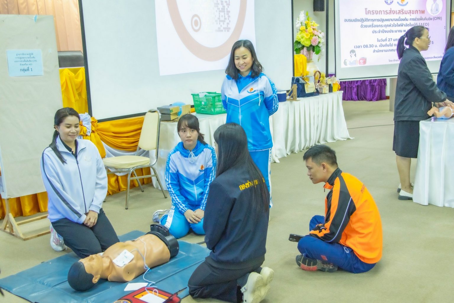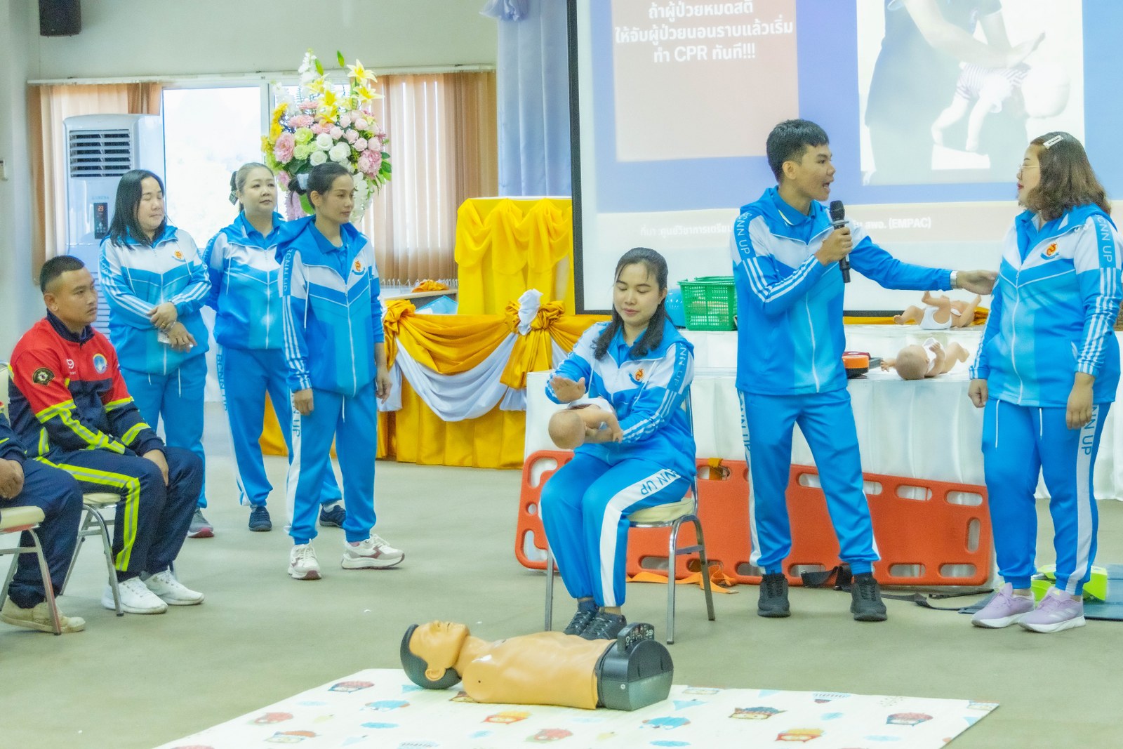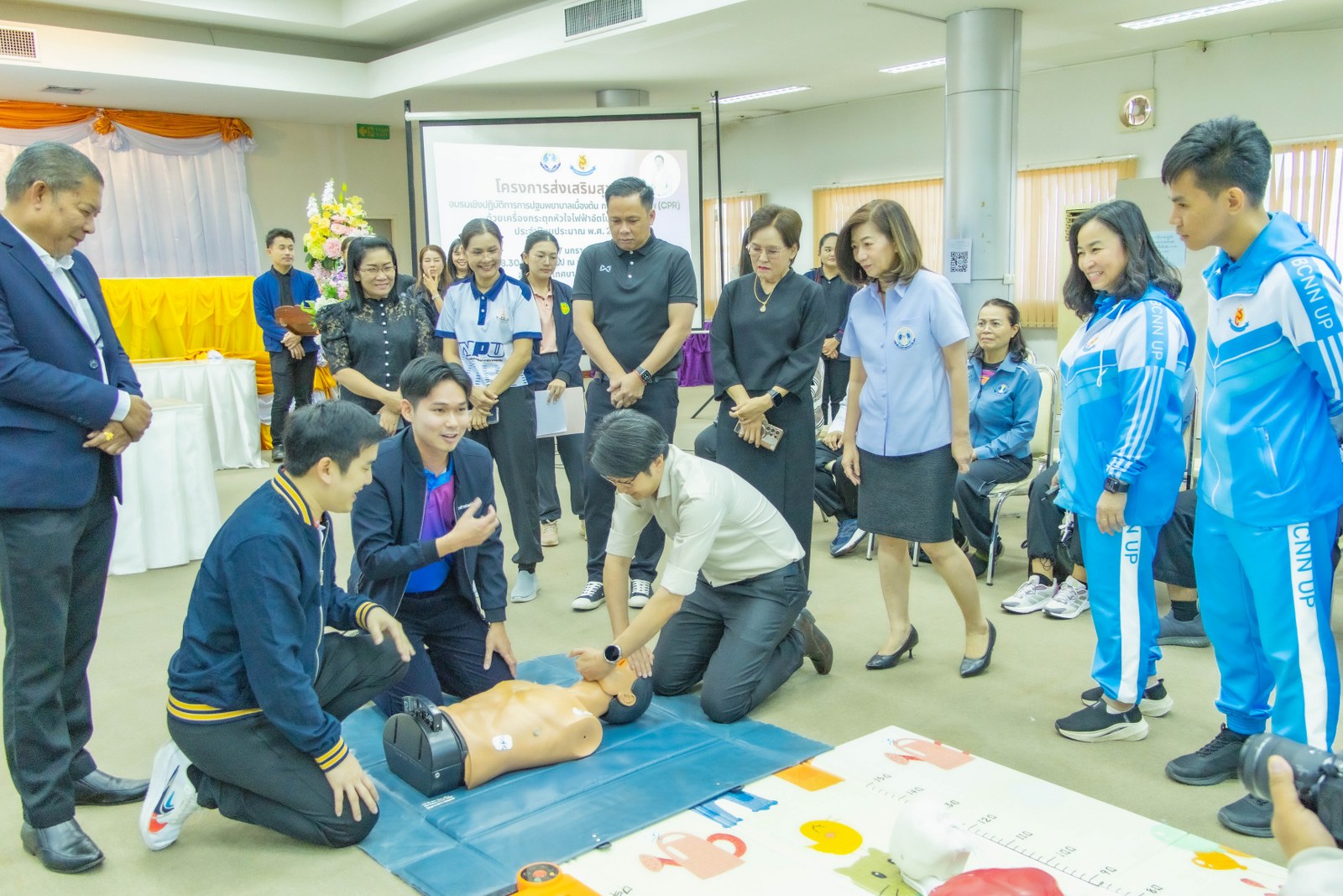 วันที่ 27 มกราคม 2569 ดร.สุปราณี สิทธิกานต์ คณบดีวิทยาลัยพยาบาลบรมราชชนนีนครพนม มหาวิทยาลัยนครพนม มอบหมายให้ อาจารย์ดวงใจ บุญคง หัวหน้ากลุ่มวิชาการพยาบาลผู้ใหญ่และผู้สูงอายุ พร้อมด้วยคณาจารย์ในกลุ่มวิชา ร่วมกับเทศบาลเมืองนครพนม จัดโครงการส่งเสริมสุขภาพ อบรมเชิงปฏิบัติการปฐมพยาบาลเบื้องต้นและการช่วยฟื้นคืนชีพ (Cardiopulmonary Resuscitation : CPR) ด้วยเครื่องกระตุกหัวใจไฟฟ้าอัตโนมัติ (Automated External Defibrillator : AED) ประจำปีงบประมาณ พ.ศ. 2569 เพื่อเสริมสร้างความรู้และทักษะด้านการปฐมพยาบาลเบื้องต้น การช่วยฟื้นคืนชีพ และการใช้เครื่อง AED อย่างถูกต้องและปลอดภัย ให้แก่ผู้บริหาร เจ้าหน้าที่ และคณะครูในสังกัดเทศบาลเมืองนครพนม เพื่อให้สามารถนำความรู้ไปใช้ในการช่วยเหลือผู้ประสบภาวะฉุกเฉินได้อย่างทันท่วงที อันจะช่วยลดความสูญเสียและเพิ่มโอกาสรอดชีวิตแก่ผู้ป่วยในชุมชน โดยได้รับเกียรติจากนายนิวัต เจียวิริยบุญญา นายกเทศมนตรีเมืองนครพนม มอบหมายให้นายนครินทร์ เหลือบุญชู รองนายกเทศมนตรี เป็นประธานในพิธีเปิด และมีนางภาวิณี โสมณวัฒน์ ผู้อำนวยการกองสาธารณสุขเทศบาลเมืองนครพนม กล่าวรายงานวัตถุประสงค์ในการจัดโครงการ โดยมีผู้บริหาร บุคลากร และผู้เข้ารับการอบรมจากหน่วยงานในสังกัดเทศบาลเมืองนครพนมเข้าร่วม ณ ห้องศรีวรขาน ชั้น 5 สำนักงานเทศบาลเมืองนครพนม