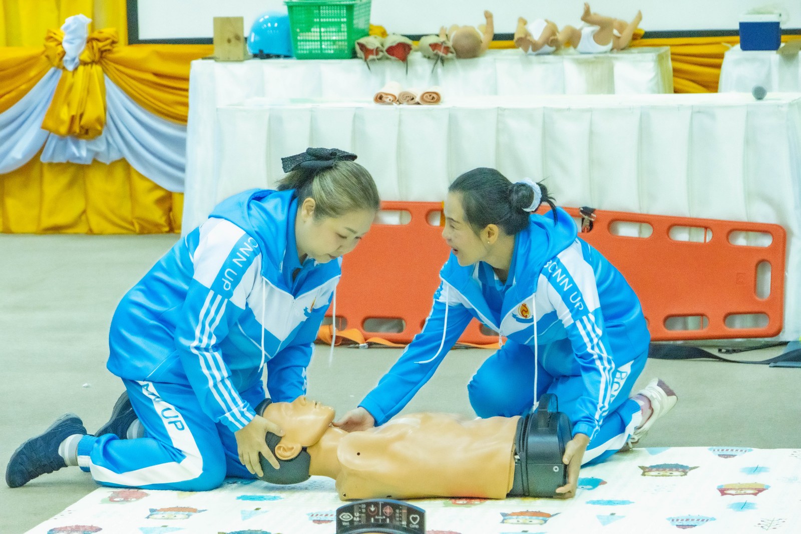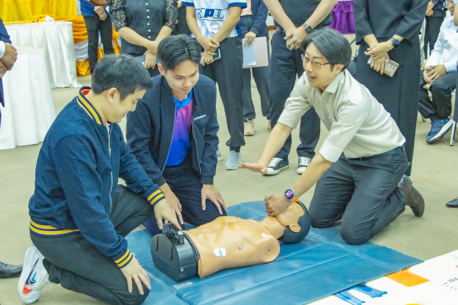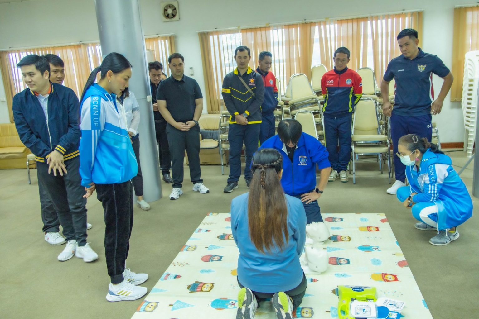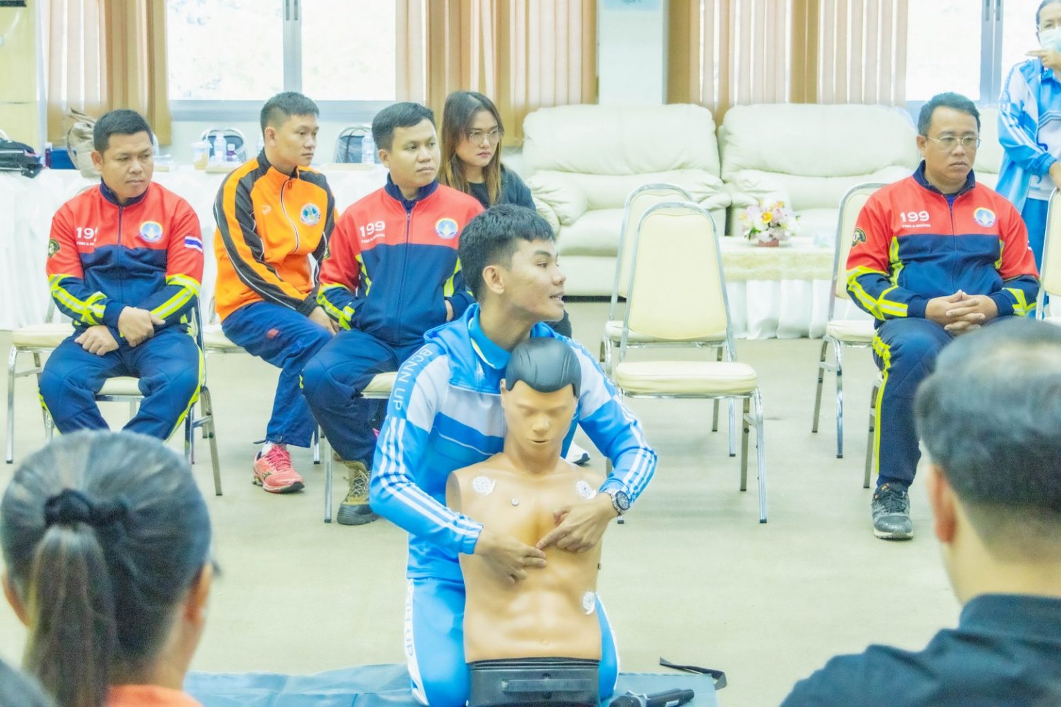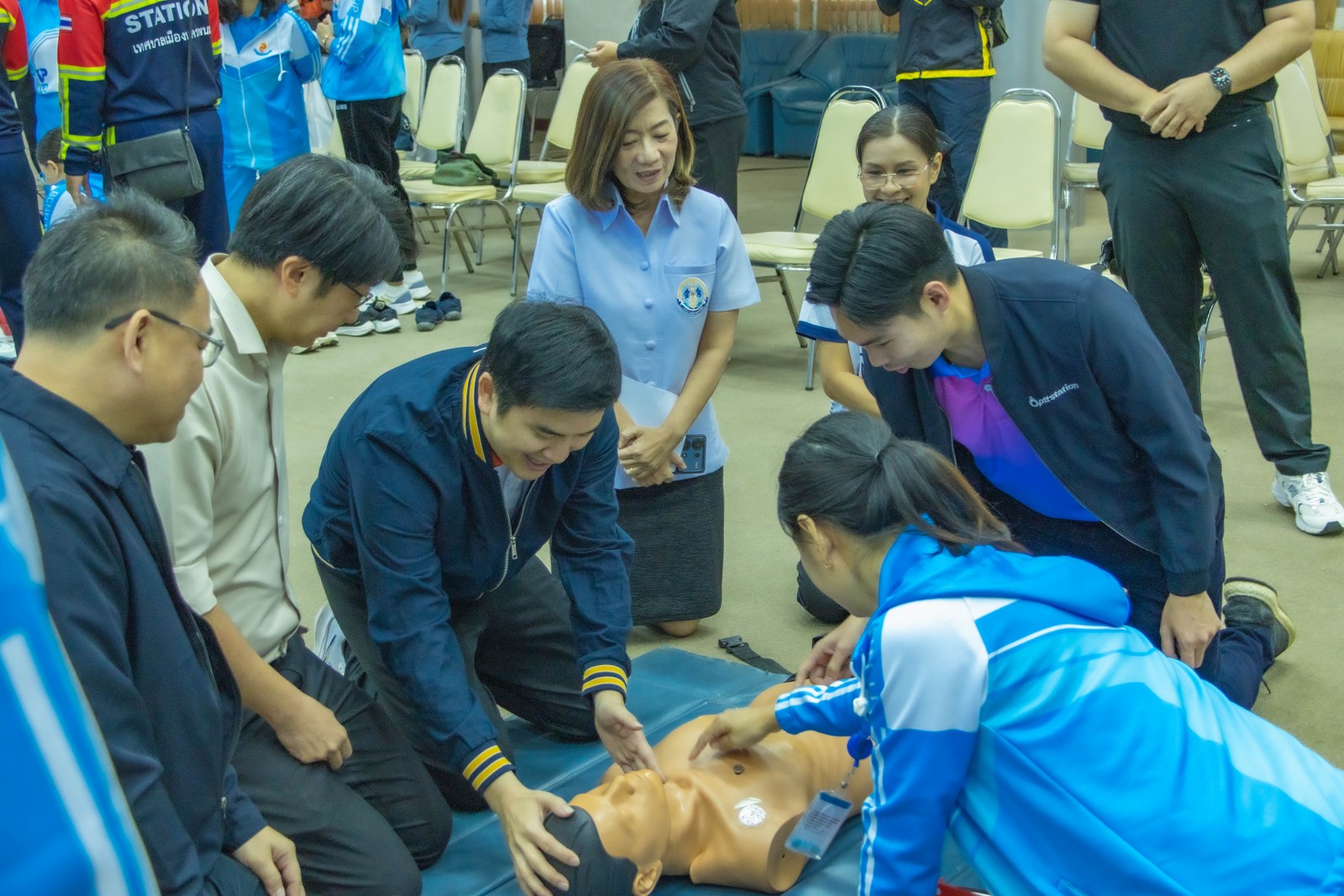 วันที่ 27 มกราคม 2569 ดร.สุปราณี สิทธิกานต์ คณบดีวิทยาลัยพยาบาลบรมราชชนนีนครพนม มหาวิทยาลัยนครพนม มอบหมายให้ อาจารย์ดวงใจ บุญคง หัวหน้ากลุ่มวิชาการพยาบาลผู้ใหญ่และผู้สูงอายุ พร้อมด้วยคณาจารย์ในกลุ่มวิชา ร่วมกับเทศบาลเมืองนครพนม จัดโครงการส่งเสริมสุขภาพ อบรมเชิงปฏิบัติการปฐมพยาบาลเบื้องต้นและการช่วยฟื้นคืนชีพ (Cardiopulmonary Resuscitation : CPR) ด้วยเครื่องกระตุกหัวใจไฟฟ้าอัตโนมัติ (Automated External Defibrillator : AED) ประจำปีงบประมาณ พ.ศ. 2569 เพื่อเสริมสร้างความรู้และทักษะด้านการปฐมพยาบาลเบื้องต้น การช่วยฟื้นคืนชีพ และการใช้เครื่อง AED อย่างถูกต้องและปลอดภัย ให้แก่ผู้บริหาร เจ้าหน้าที่ และคณะครูในสังกัดเทศบาลเมืองนครพนม เพื่อให้สามารถนำความรู้ไปใช้ในการช่วยเหลือผู้ประสบภาวะฉุกเฉินได้อย่างทันท่วงที อันจะช่วยลดความสูญเสียและเพิ่มโอกาสรอดชีวิตแก่ผู้ป่วยในชุมชน โดยได้รับเกียรติจากนายนิวัต เจียวิริยบุญญา นายกเทศมนตรีเมืองนครพนม มอบหมายให้นายนครินทร์ เหลือบุญชู รองนายกเทศมนตรี เป็นประธานในพิธีเปิด และมีนางภาวิณี โสมณวัฒน์ ผู้อำนวยการกองสาธารณสุขเทศบาลเมืองนครพนม กล่าวรายงานวัตถุประสงค์ในการจัดโครงการ โดยมีผู้บริหาร บุคลากร และผู้เข้ารับการอบรมจากหน่วยงานในสังกัดเทศบาลเมืองนครพนมเข้าร่วม ณ ห้องศรีวรขาน ชั้น 5 สำนักงานเทศบาลเมืองนครพนม