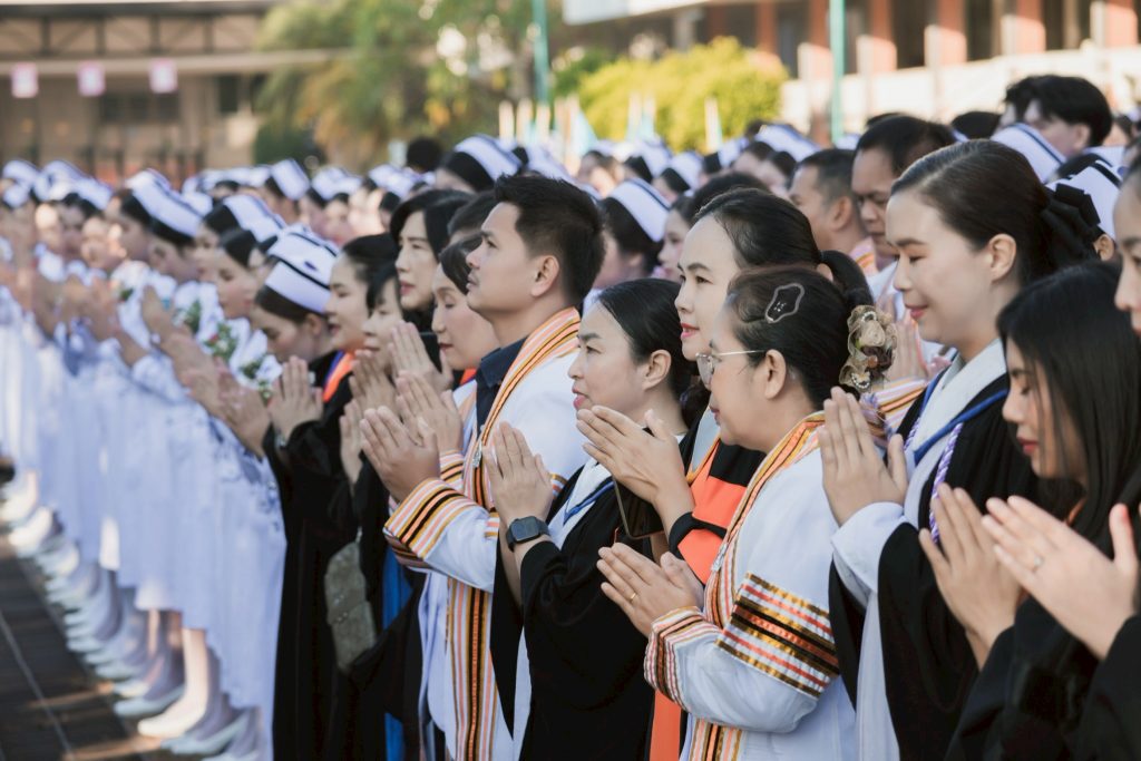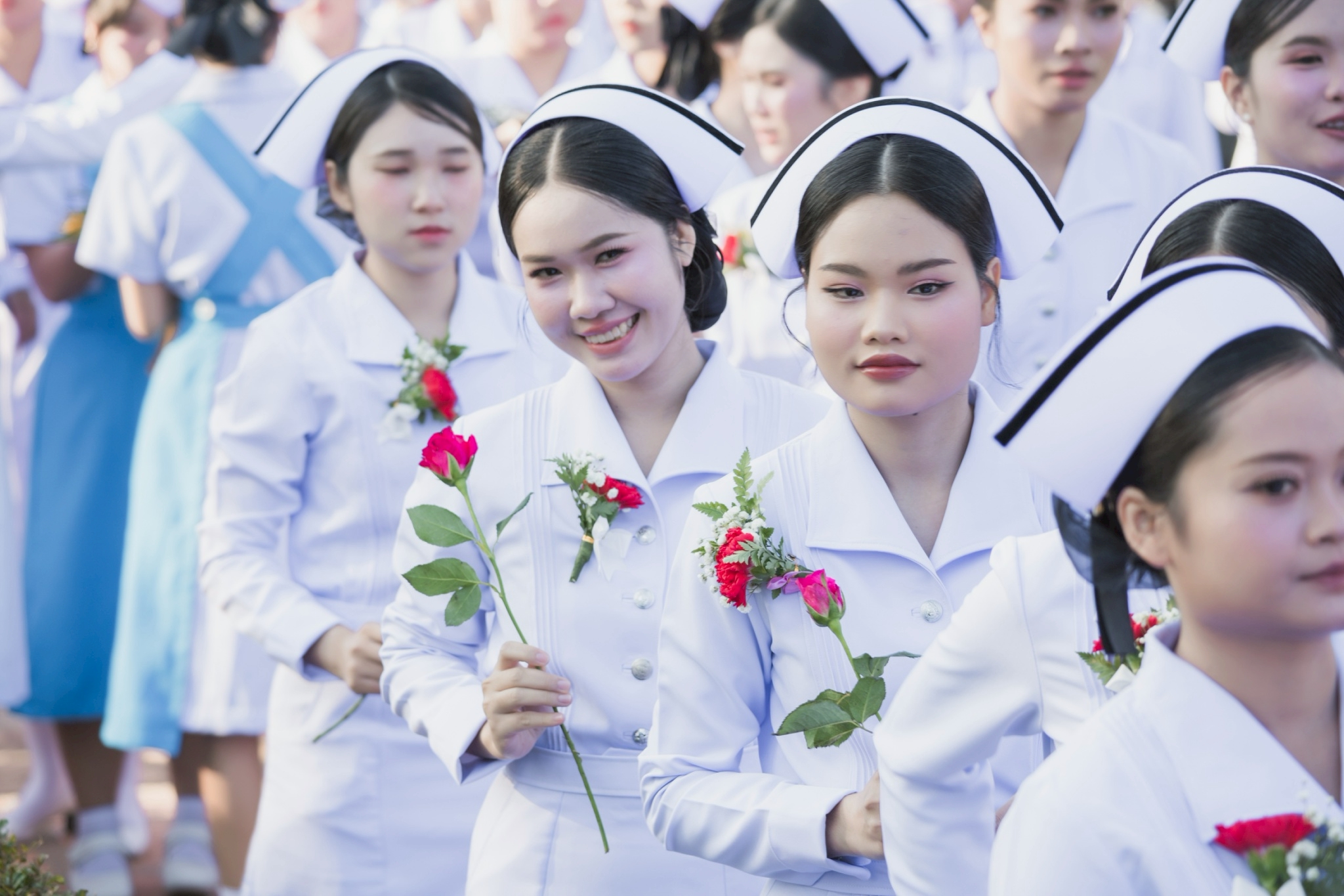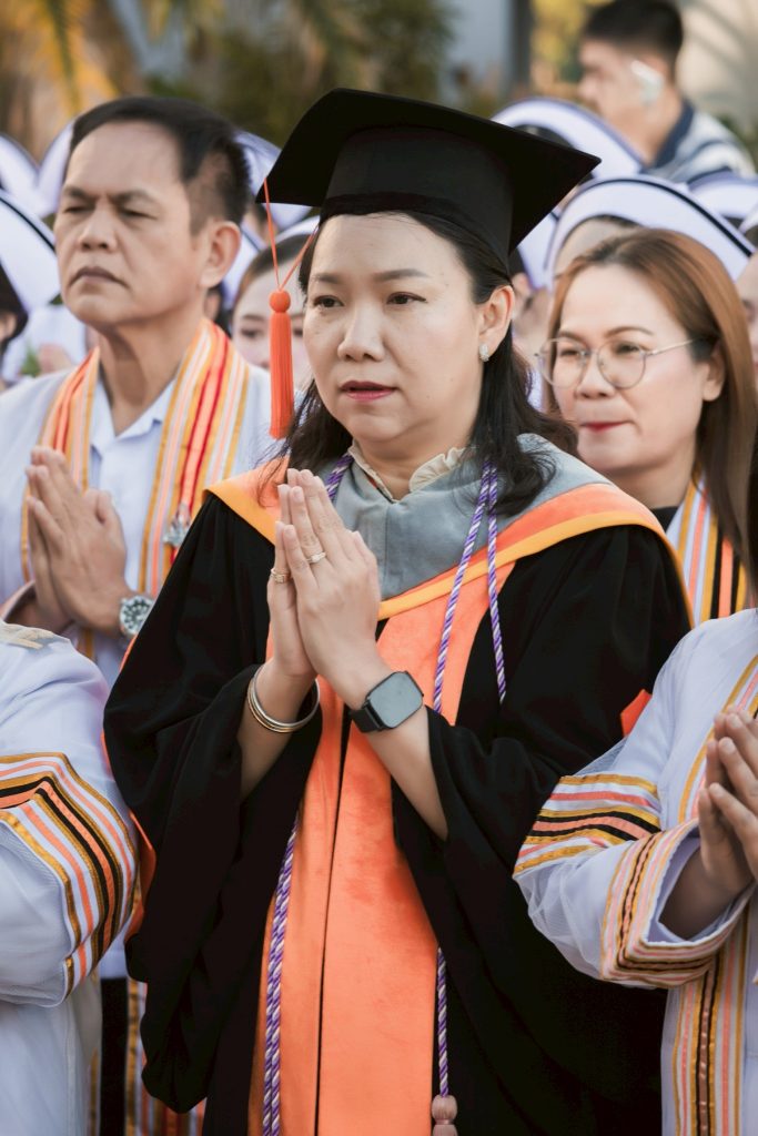 วันที่ 29 มกราคม 2569 วิทยาลัยพยาบาลบรมราชชนนีนครพนม มหาวิทยาลัยนครพนม จัดพิธีสำเร็จการศึกษาและพิธีอำลาสถาบัน แก่นักศึกษาหลักสูตรพยาบาลศาสตรบัณฑิต ชั้นปีที่ 4 รุ่นที่ 30 ประจำปีการศึกษา 2568 ภายใต้โครงการ “พัฒนาความพร้อมและเสริมสร้างพลังสู่การเป็นพยาบาลมืออาชีพ” เพื่อแสดงความยินดีและส่งเสริมให้นักศึกษาก้าวสู่เส้นทางวิชาชีพพยาบาลอย่างภาคภูมิ โดยได้รับเกียรติจาก ดร.สุปราณี สิทธิกานต์ คณบดีวิทยาลัยพยาบาลบรมราชชนนีนครพนม เป็นประธานในพิธี และมี ผู้ช่วยศาสตราจารย์ประไพรัตน์ แก้วศิริ รองคณบดีฝ่ายพัฒนาการศึกษา กล่าวรายงานวัตถุประสงค์การจัดงาน มีคณะผู้บริหาร คณาจารย์ ศิษย์เก่า บุคลากรทางการแพทย์ คณะผู้บริหารและบุคลากรจากวิทยาลัยวิทยาศาสตร์สุขภาพสะหวันนะเขต โดยมี Dr. soukhanthone Singphouangphet, Director of CHSS Mrs Phounimith Vongvath, Vice Director of CHSS Mrs. Lackhana Sayaphet, Deputy Chief of the Development & Quality Assurance Department Mrs. Kongmany thammavong, Deputy Chief of the Administrative Department
